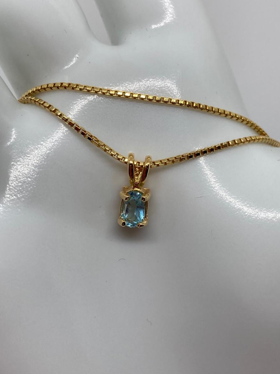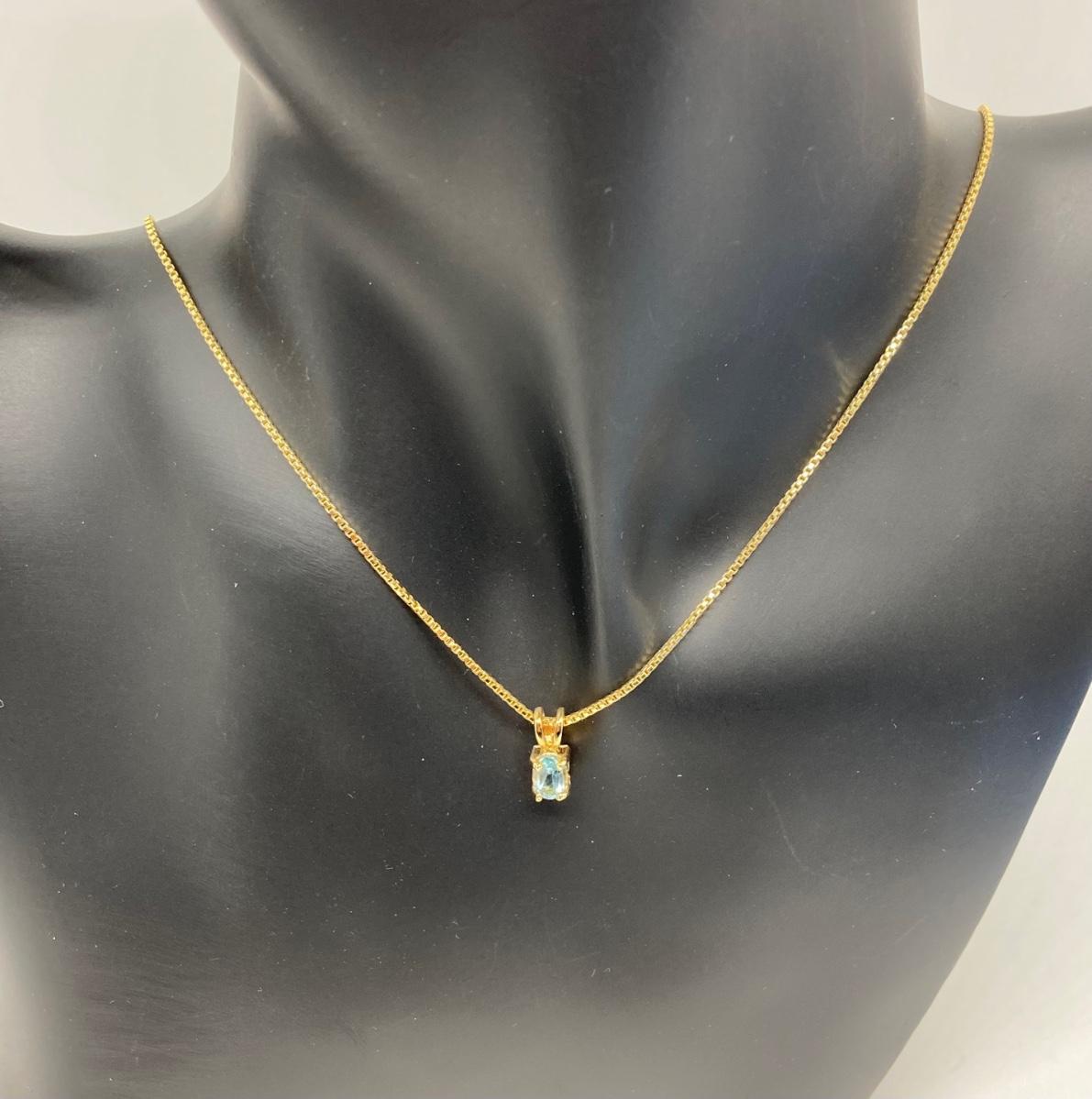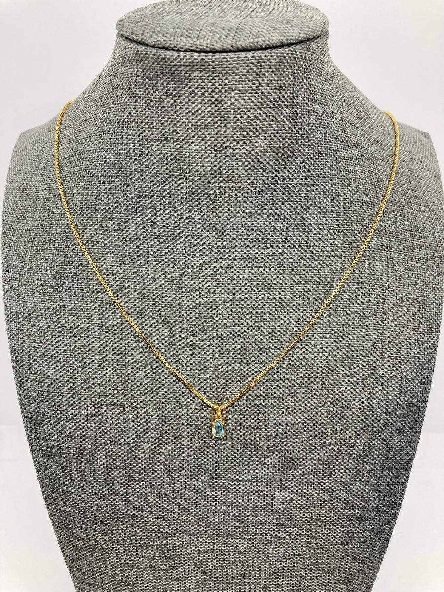 LOT 27: Blue Topaz Pendant with Gold Vermeil 20 inch Chain