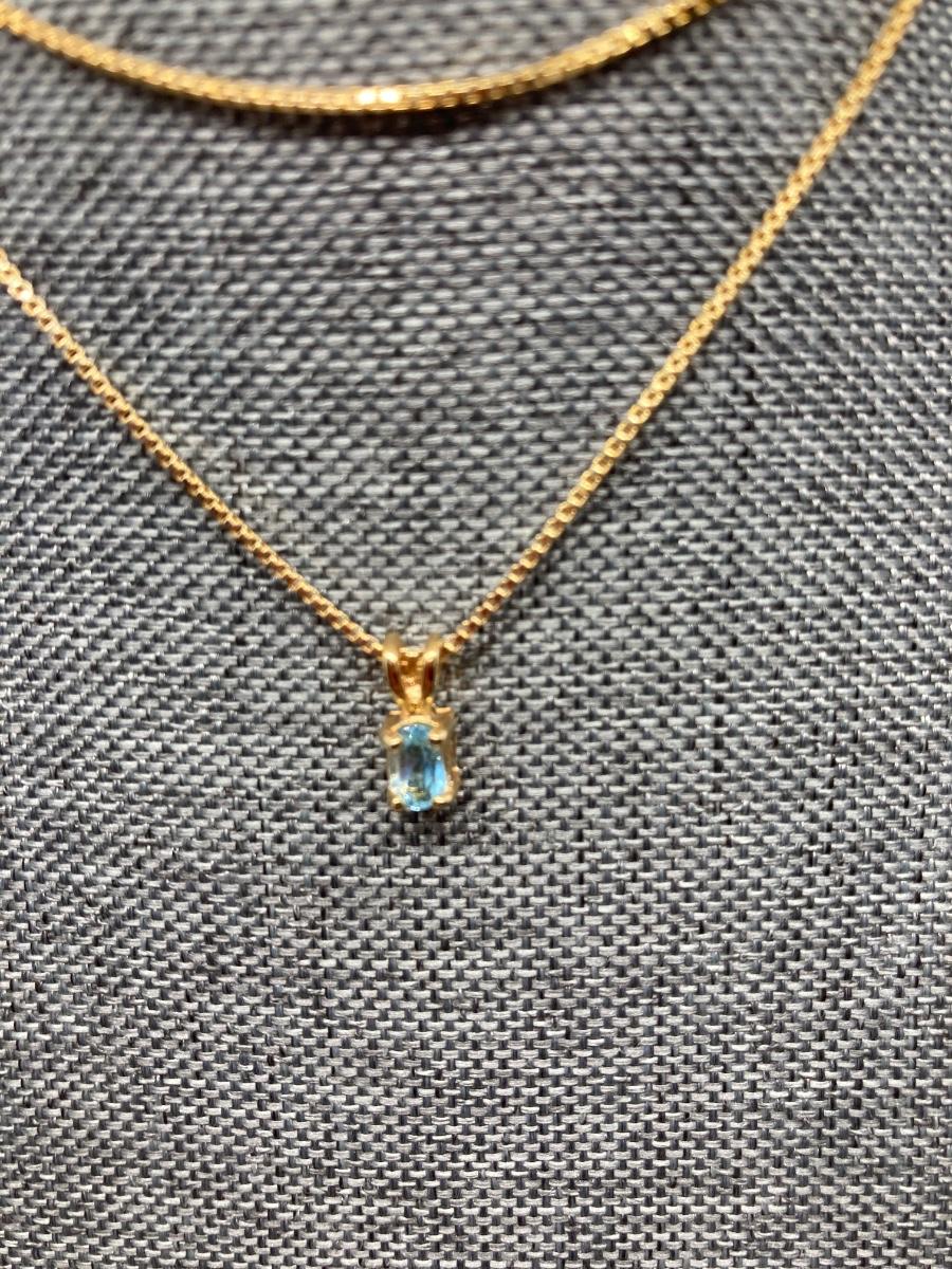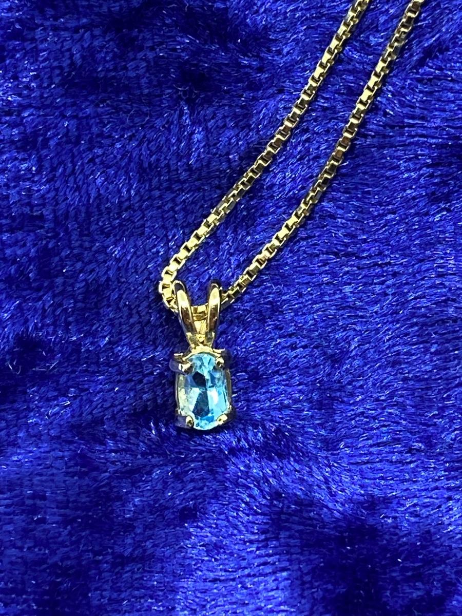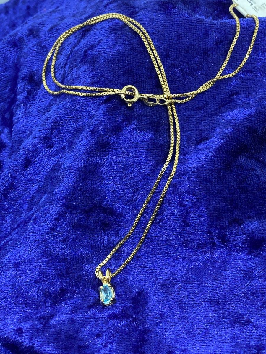 LOT 27: Blue Topaz Pendant with Gold Vermeil 20 inch Chain