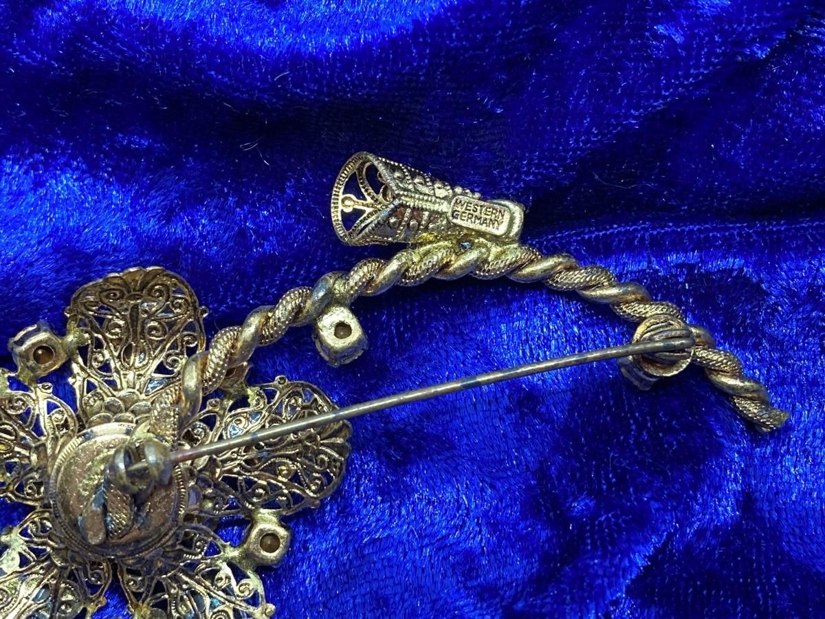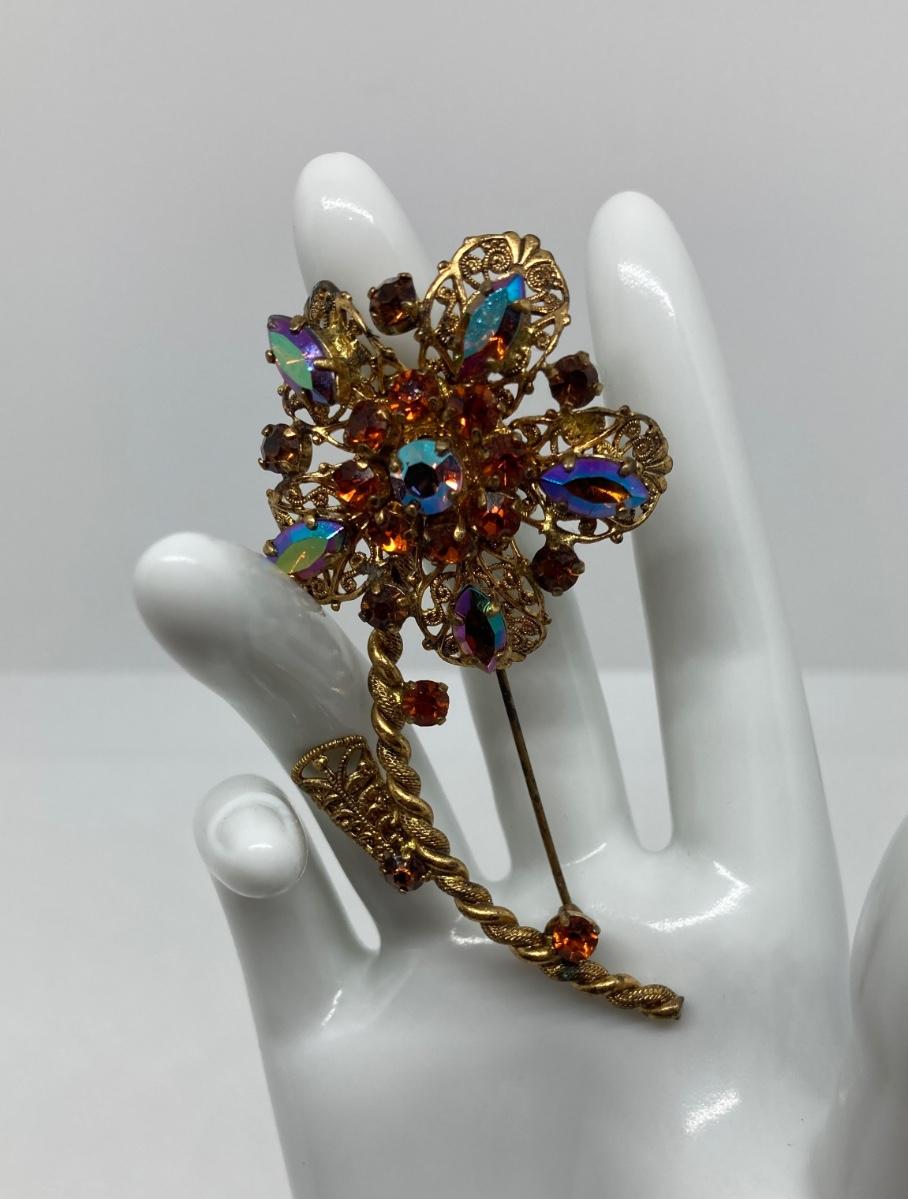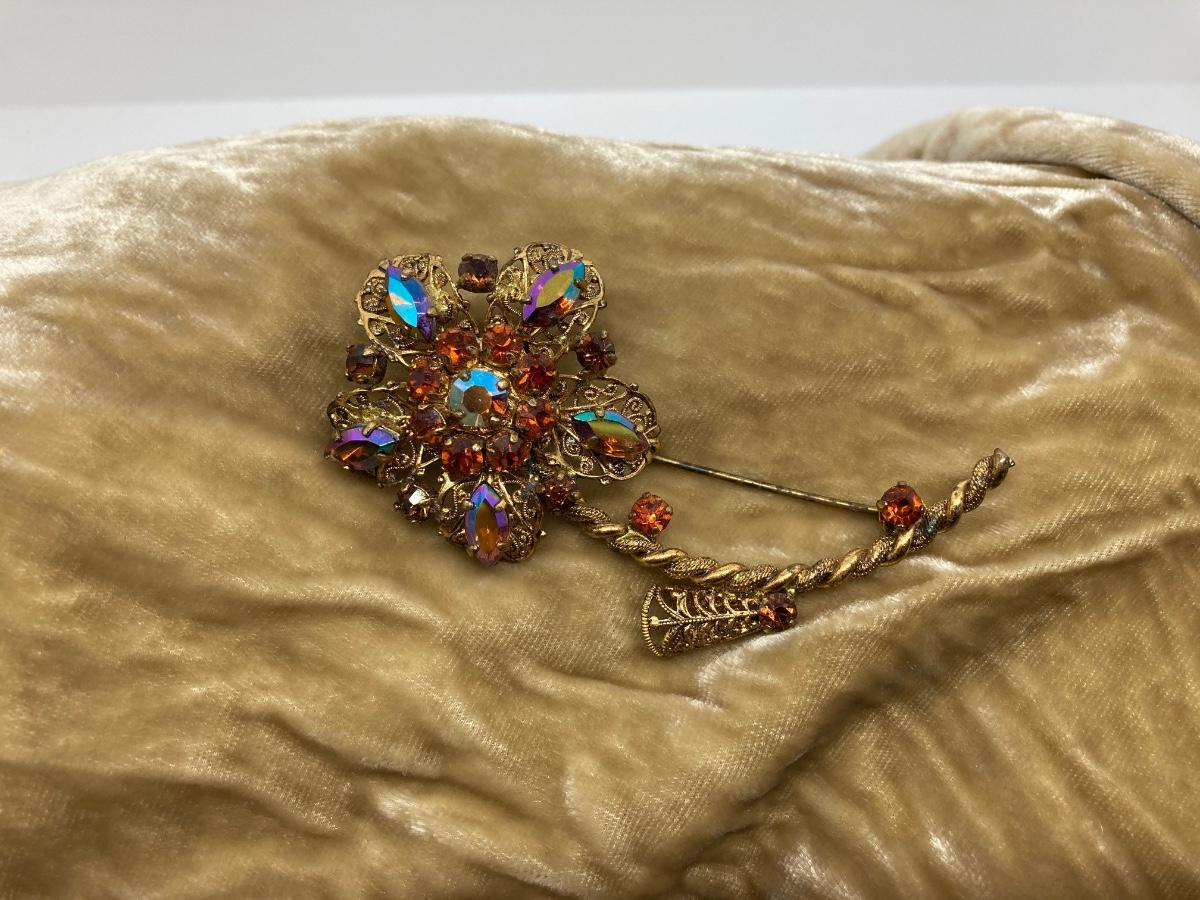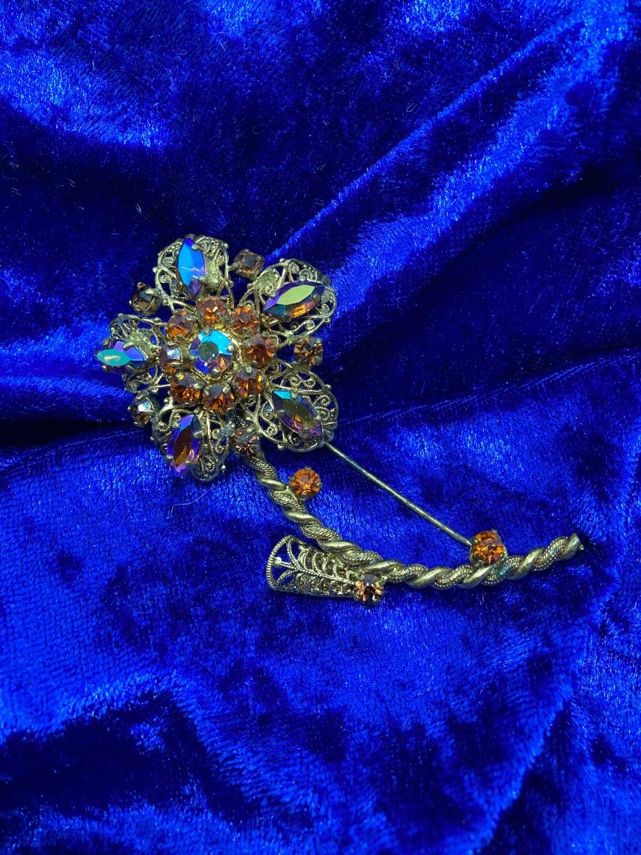LOT 28: Antique / Vintage Western Germany Brooch with Aurora Borealis Crystal Stones
