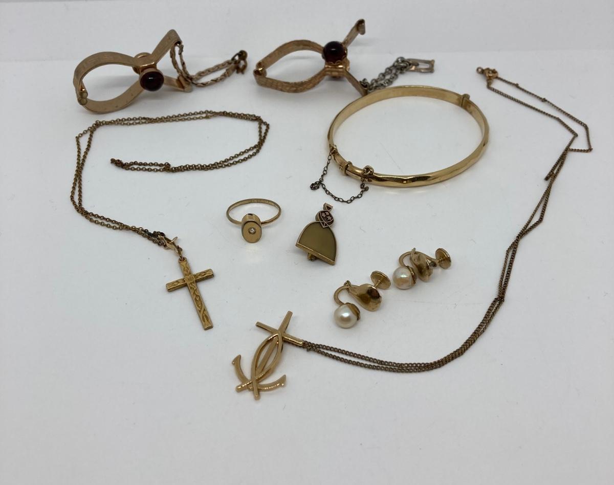 One Glove Holder is missing a stone. Gold Filled Collection - Necklaces are 18 inch - Screw back earrings