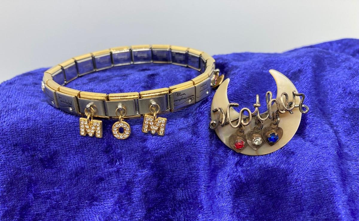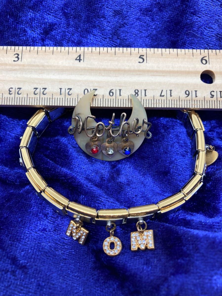LOT 32: Mom Bracelet and Mother of Pearl Pin Collection