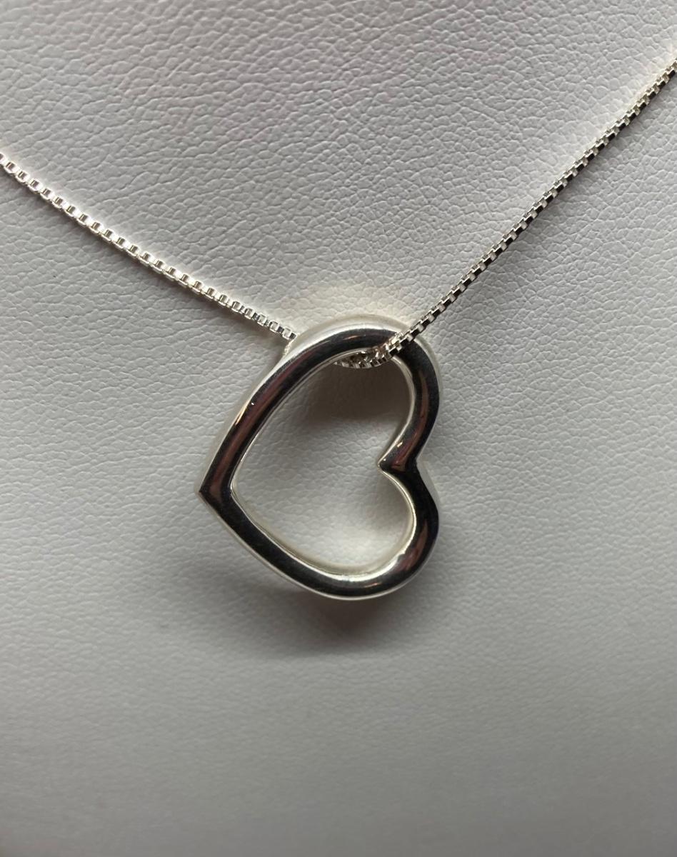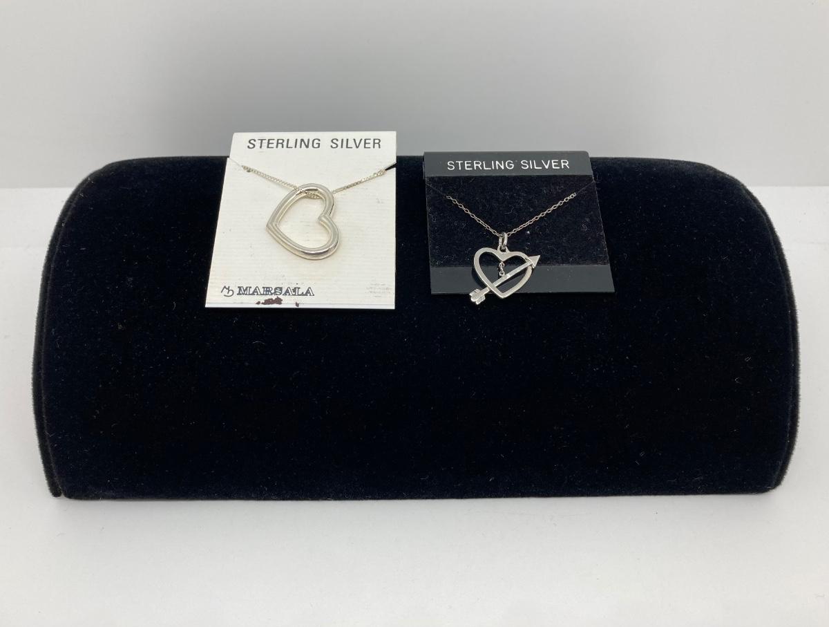 LOT 35: Two 18" Sterling Silver Necklaces with Heart Pendants