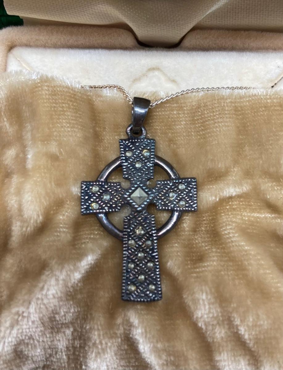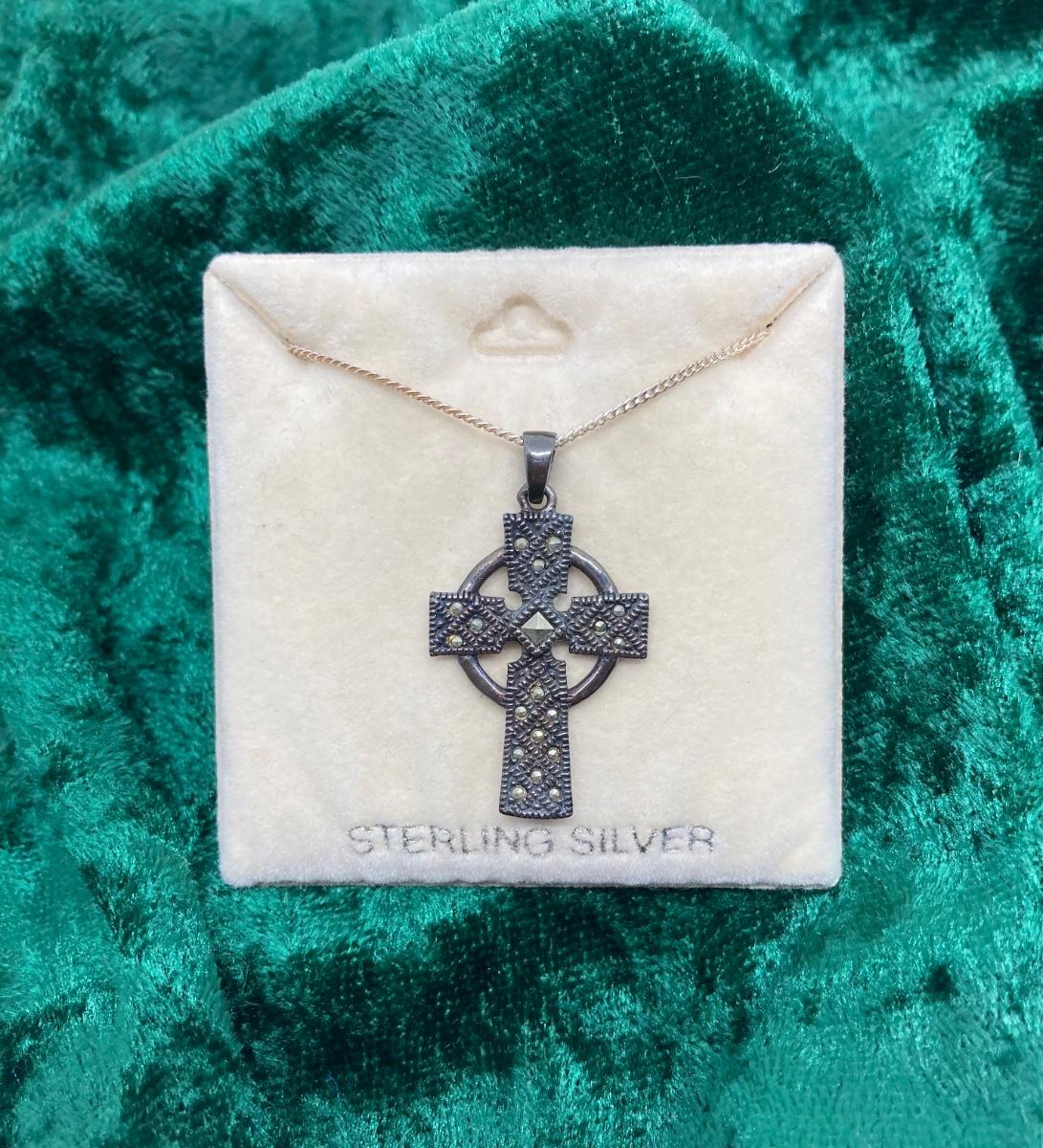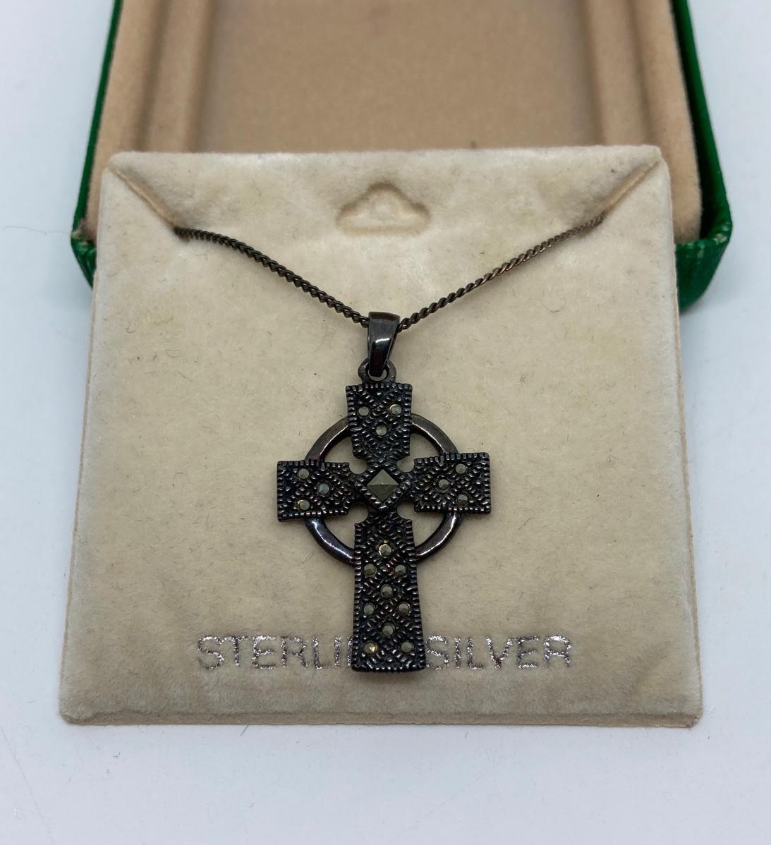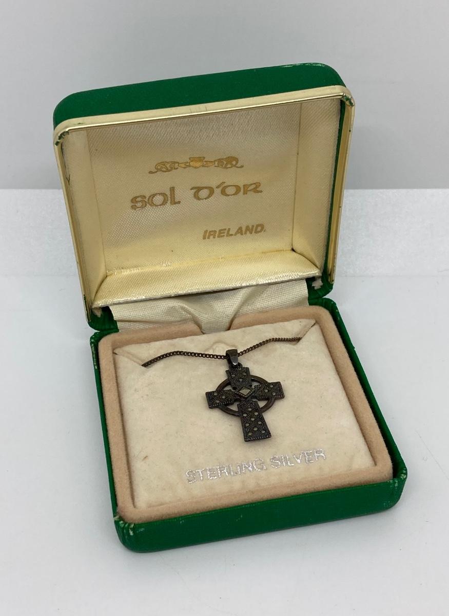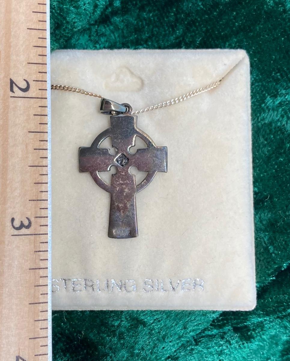 LOT 40: Sterling Silver Celtic Cross Pendant Made in Ireland 18 inch chain