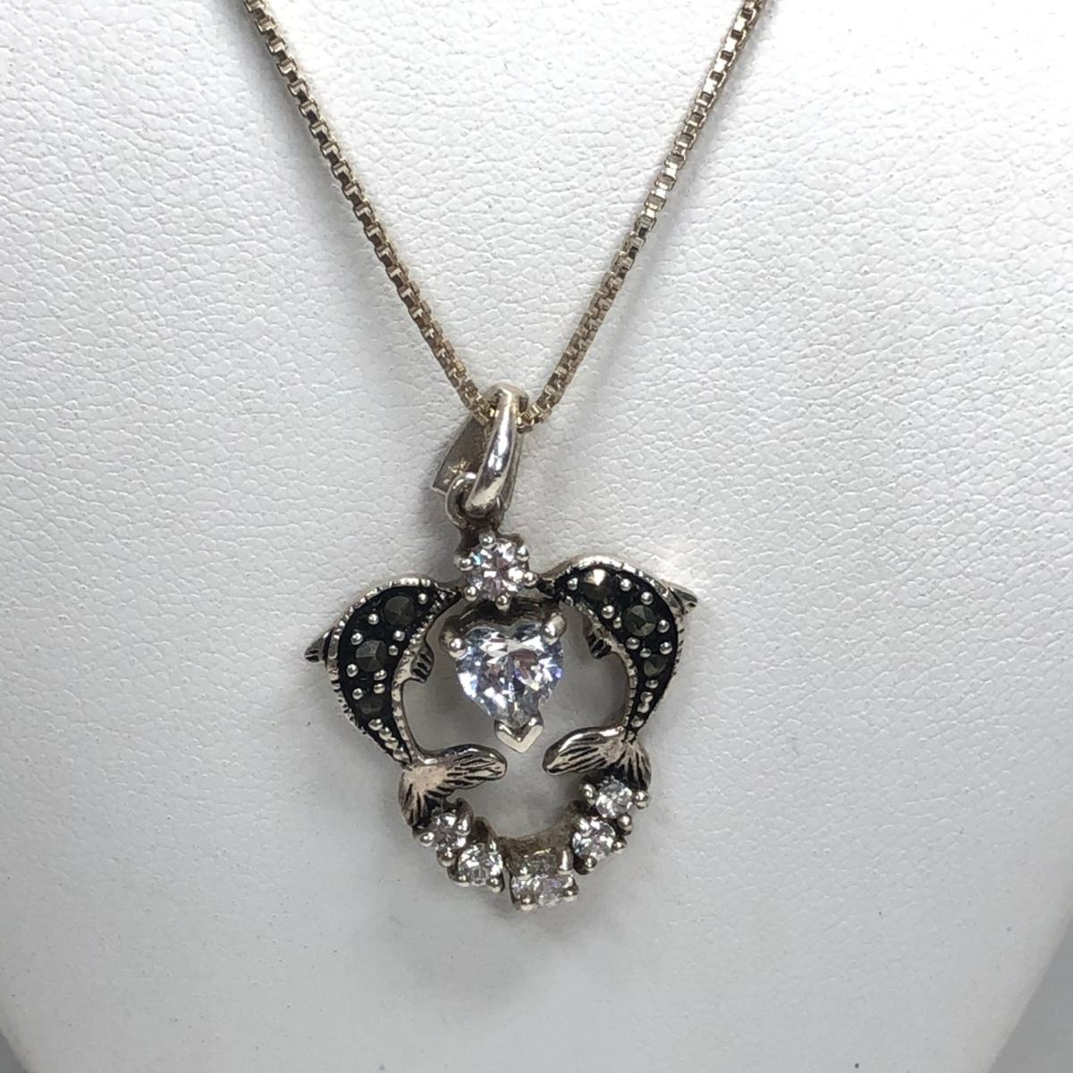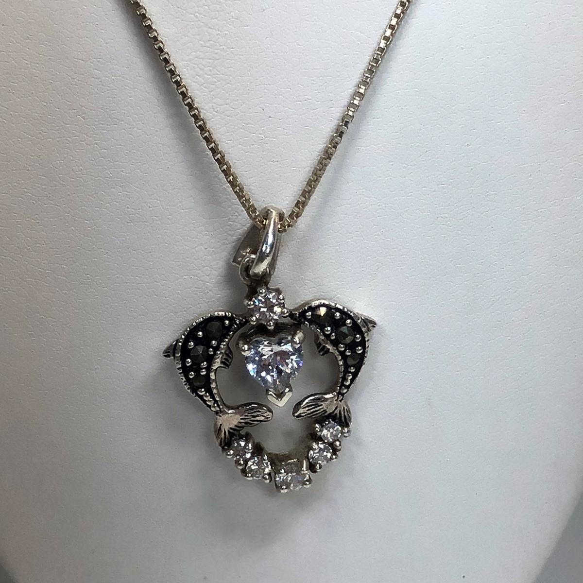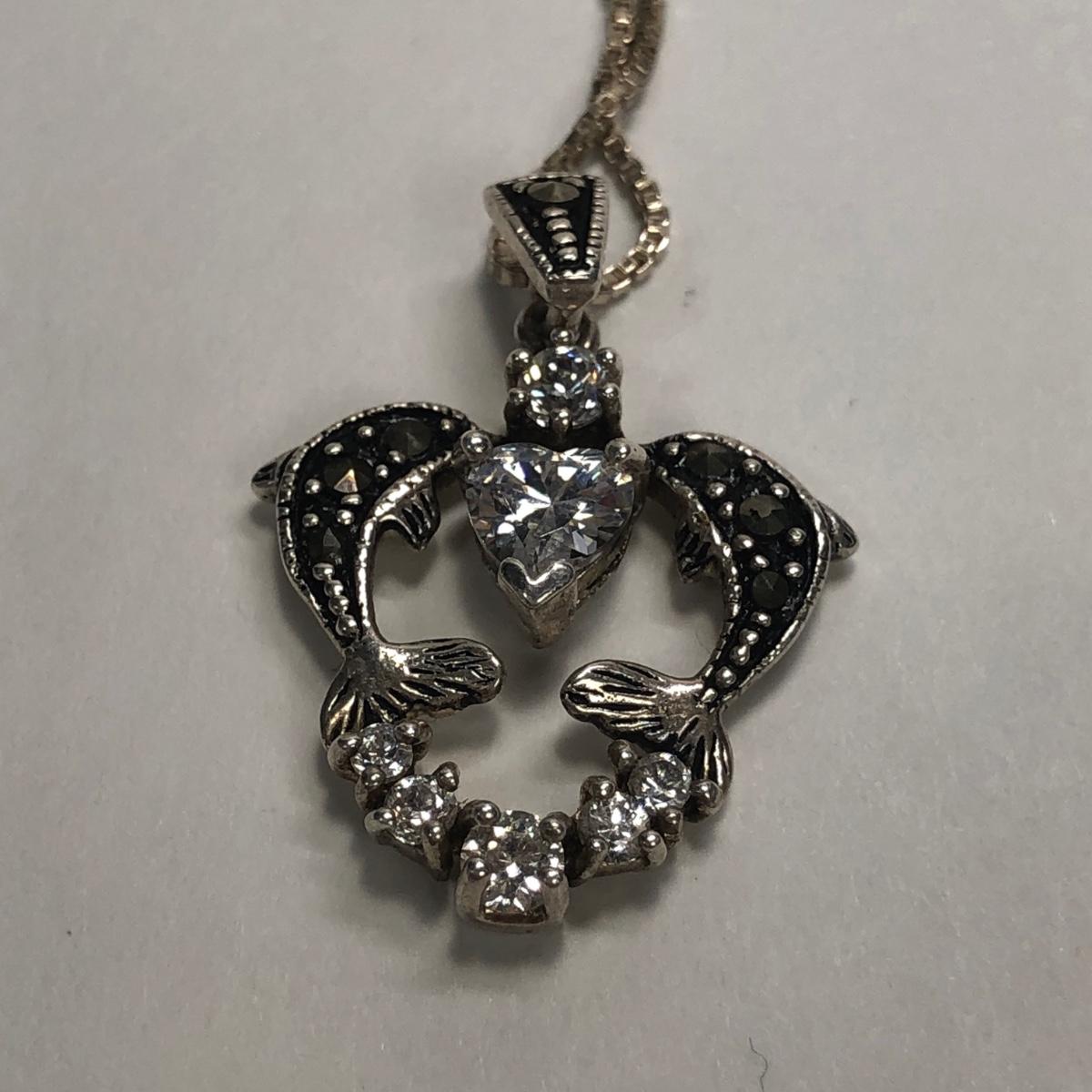 LOT 42: 18" Sterling 925 Italy Chain & Sterling Dolphin Pendant w/ Marcasite & Cubic Zirconia