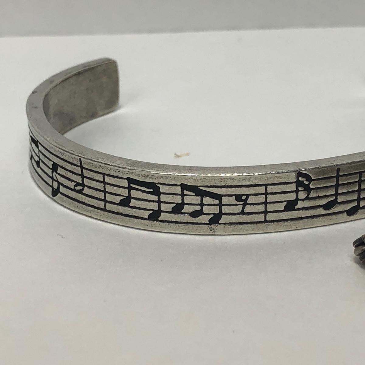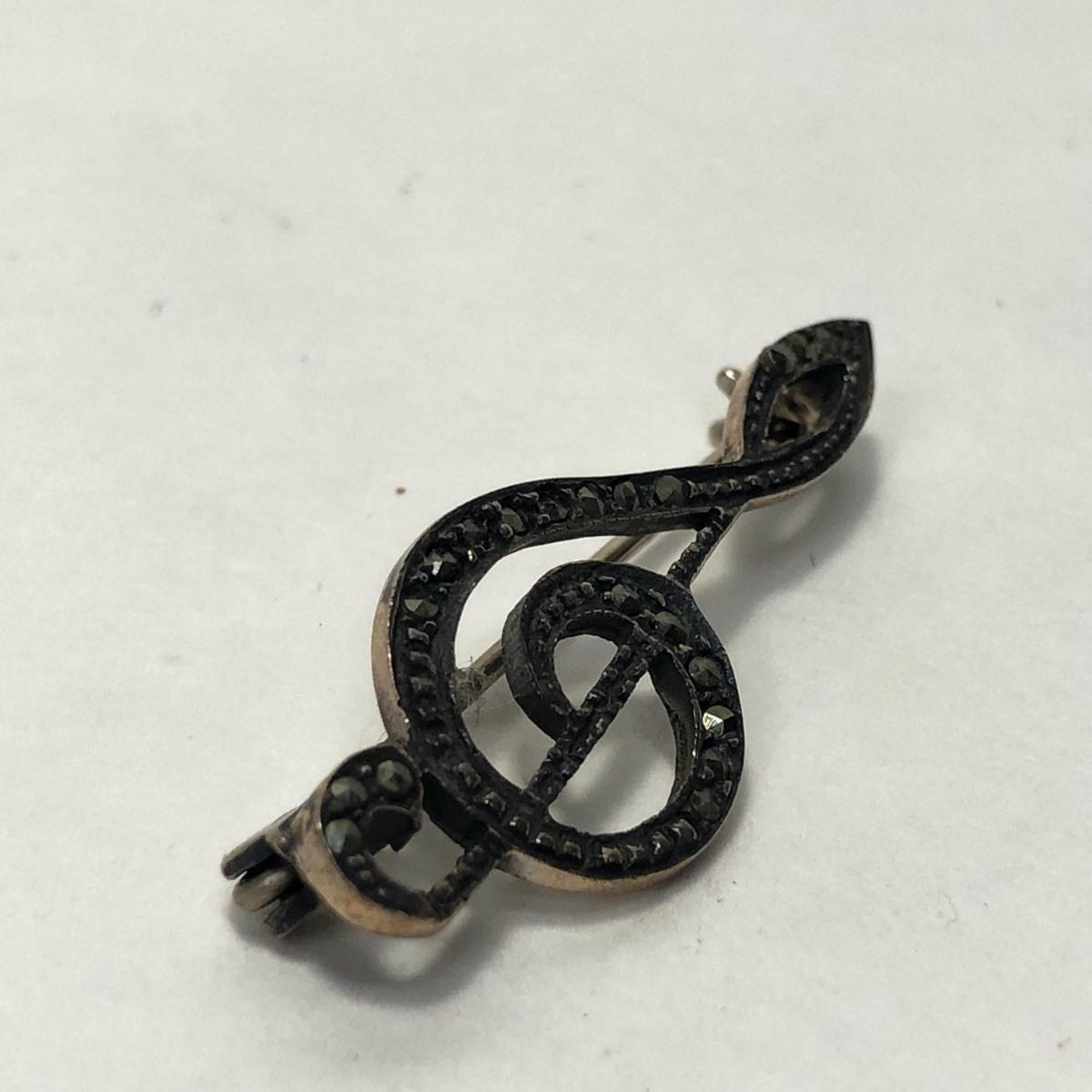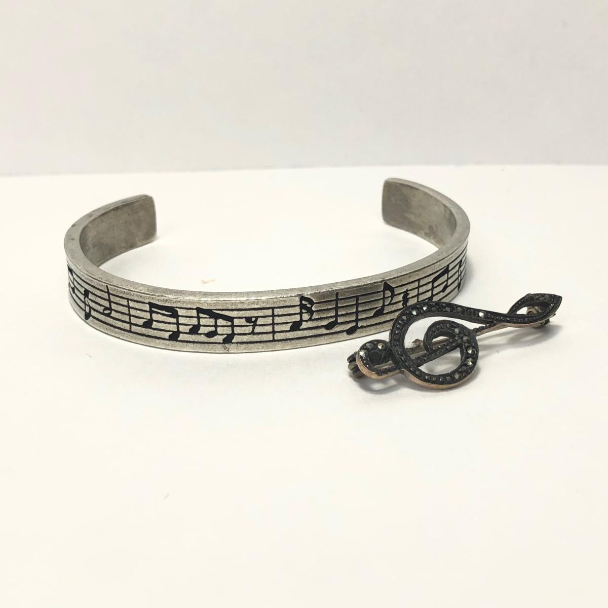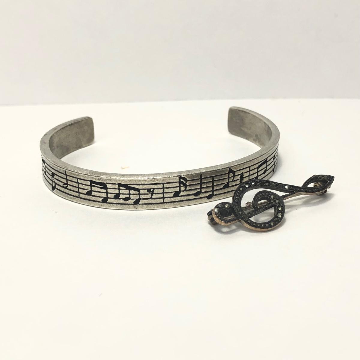 LOT 48: Music Notes Cuff Bracelet & Sterling Marcasite Musical Note Brooch - 24.31 gtw