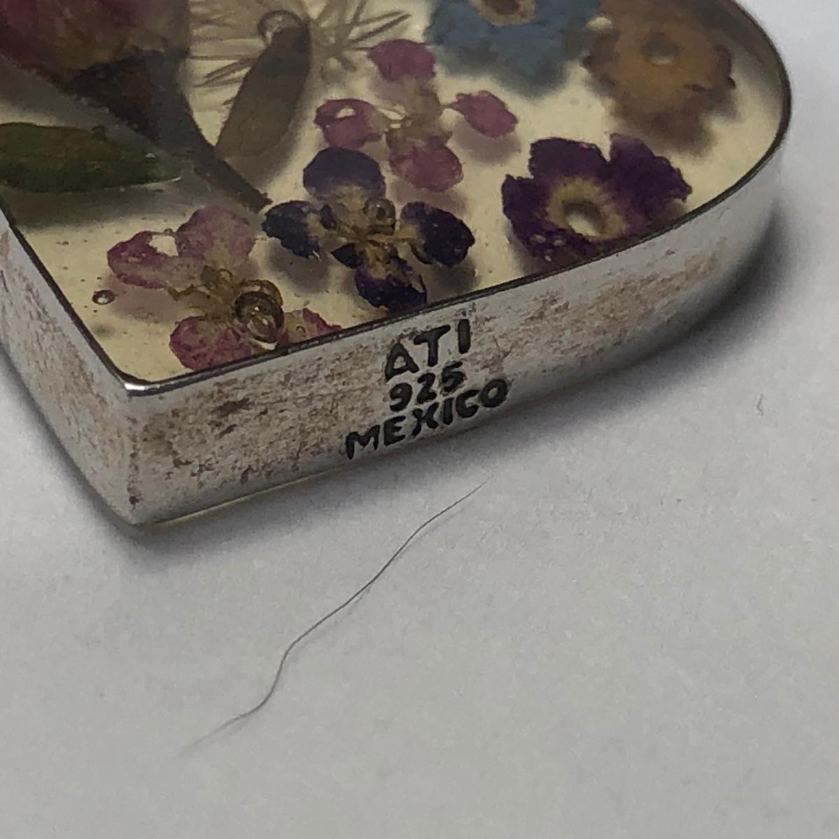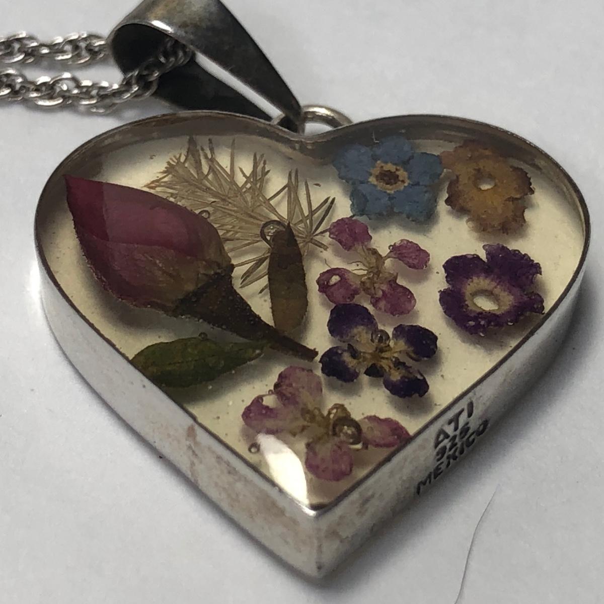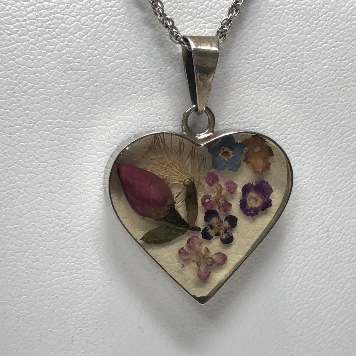 LOT 51: Sterling Silver Pressed Flower Heart Pendant on 18" Chain