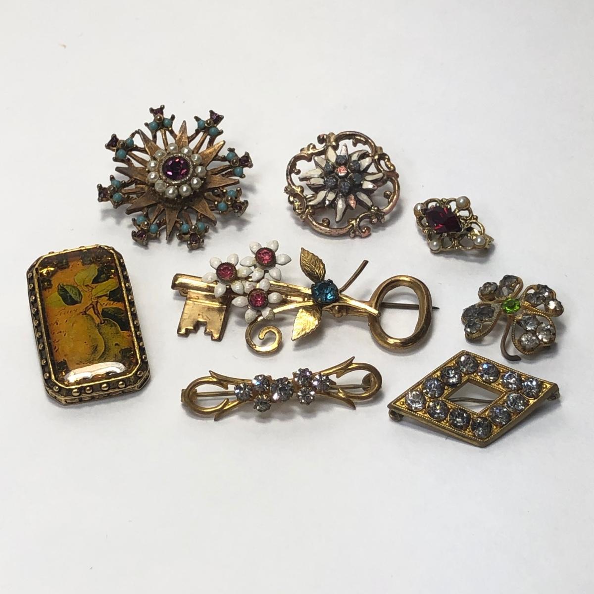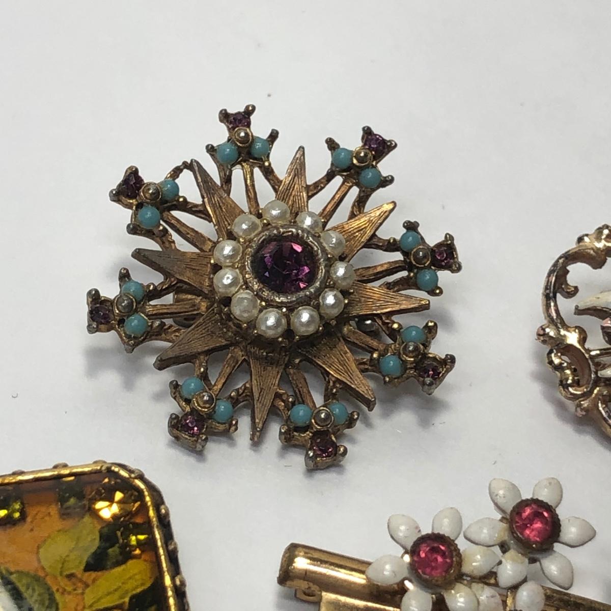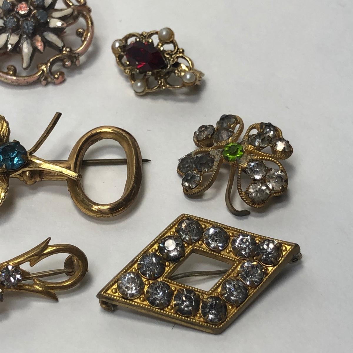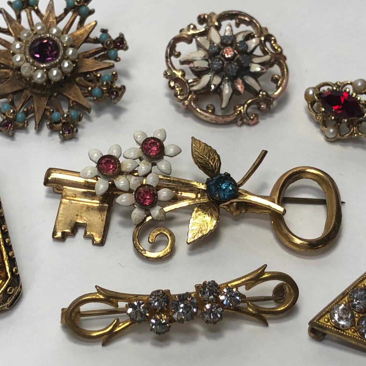 LOT 52: Vintage Collection of Rhinestone Collar Pins & Maximal Art Brooch
