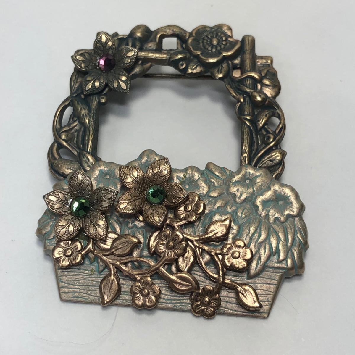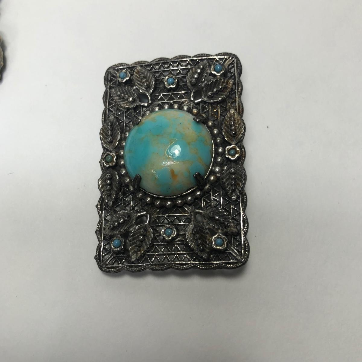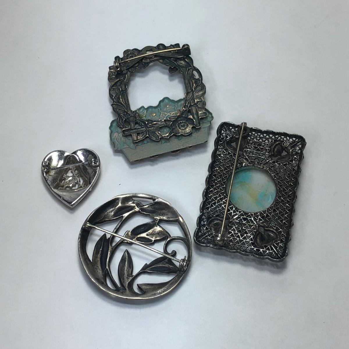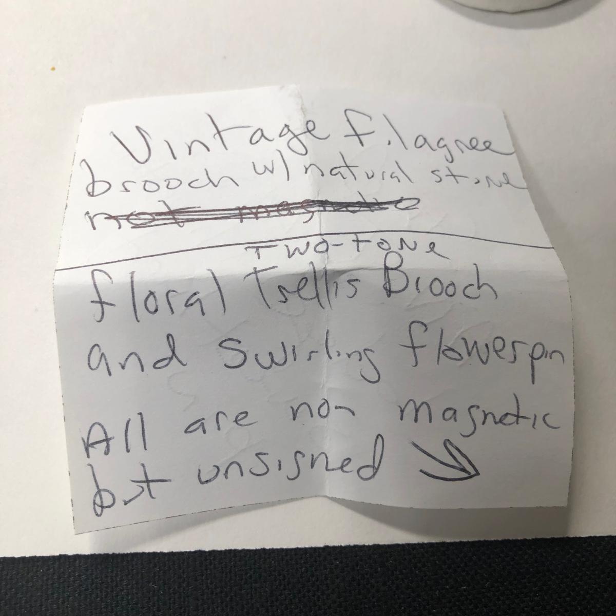 LOT 56: Vintage Filagree Brooch w/ Natural Stone, Two-Tone Floral Trellis Brooch, Swirling Flower Pin & Elk Lodge Rhinestone Sweetheart Pin