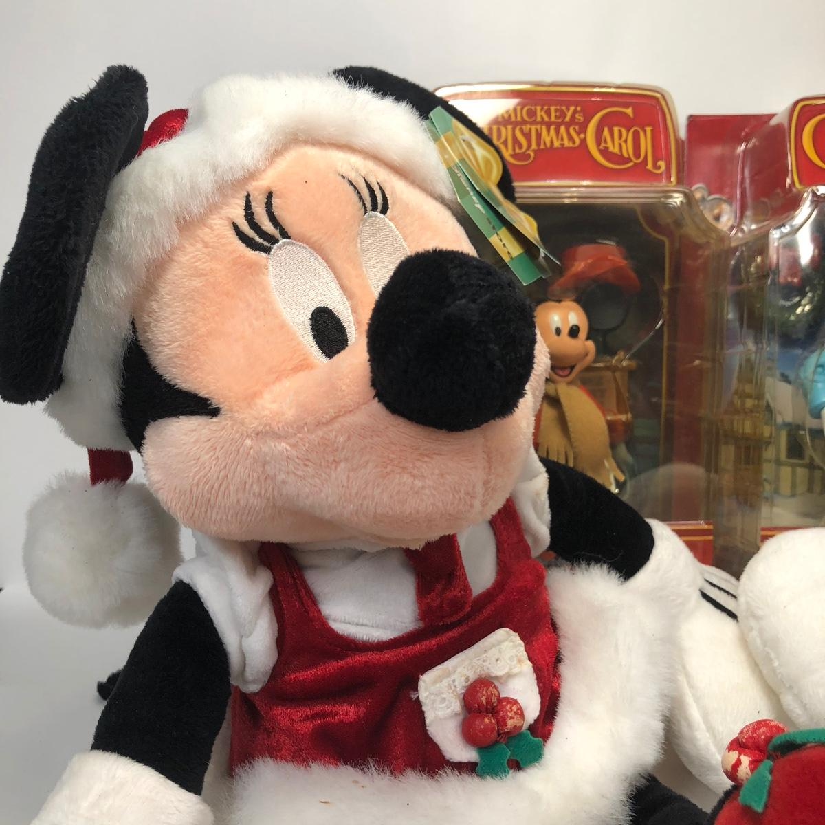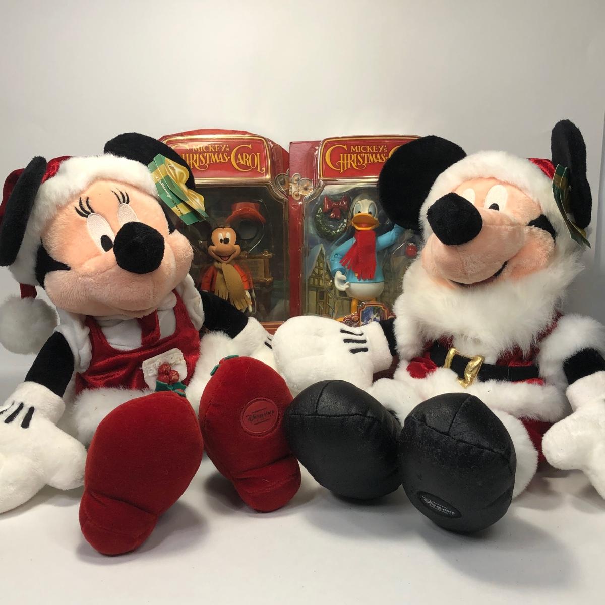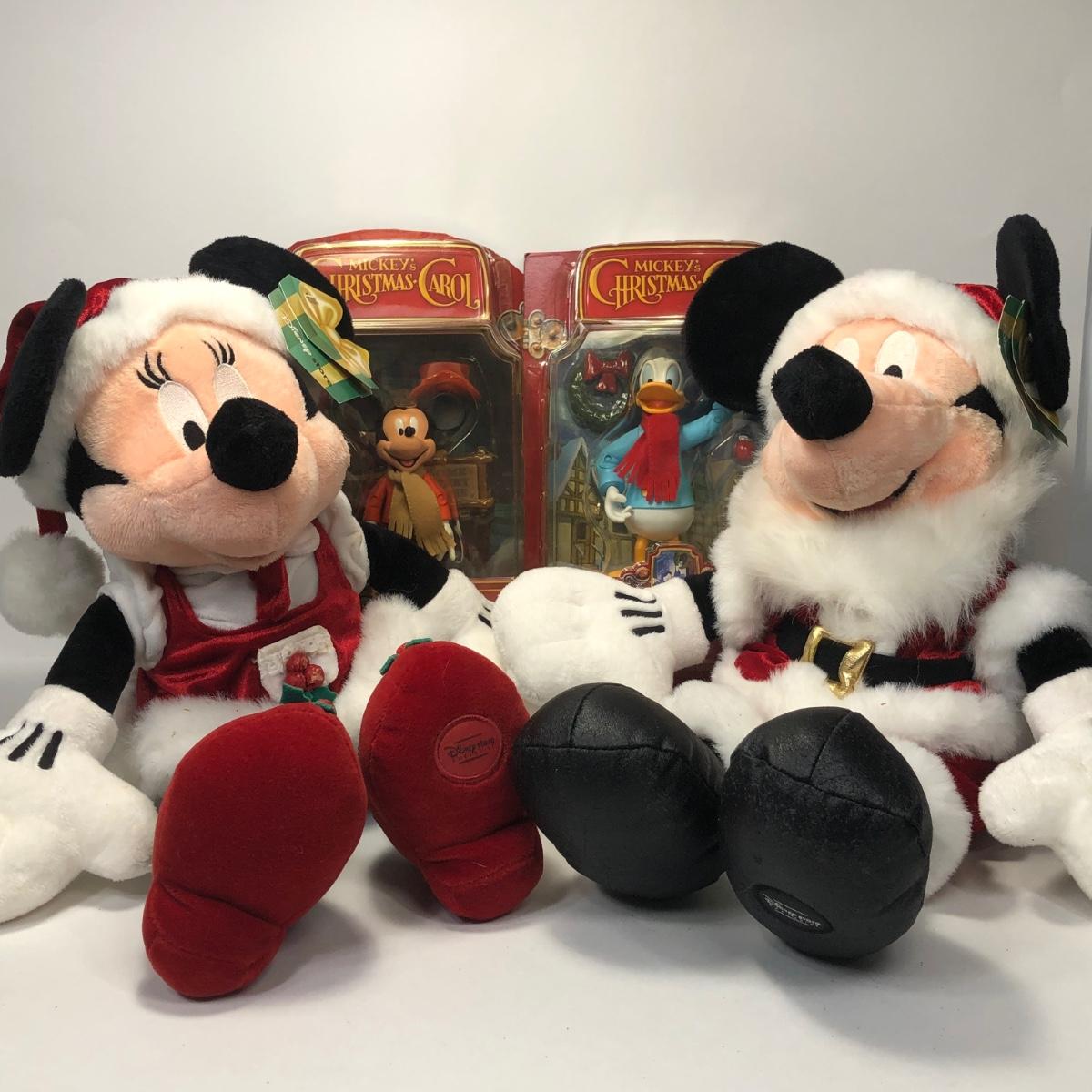 LOT 61: Mickey Christmas Collection - Christmas Carol Figures in Box, Disney Store Mickey & Minnie Stuffed Animals
