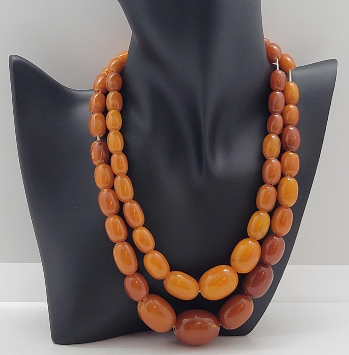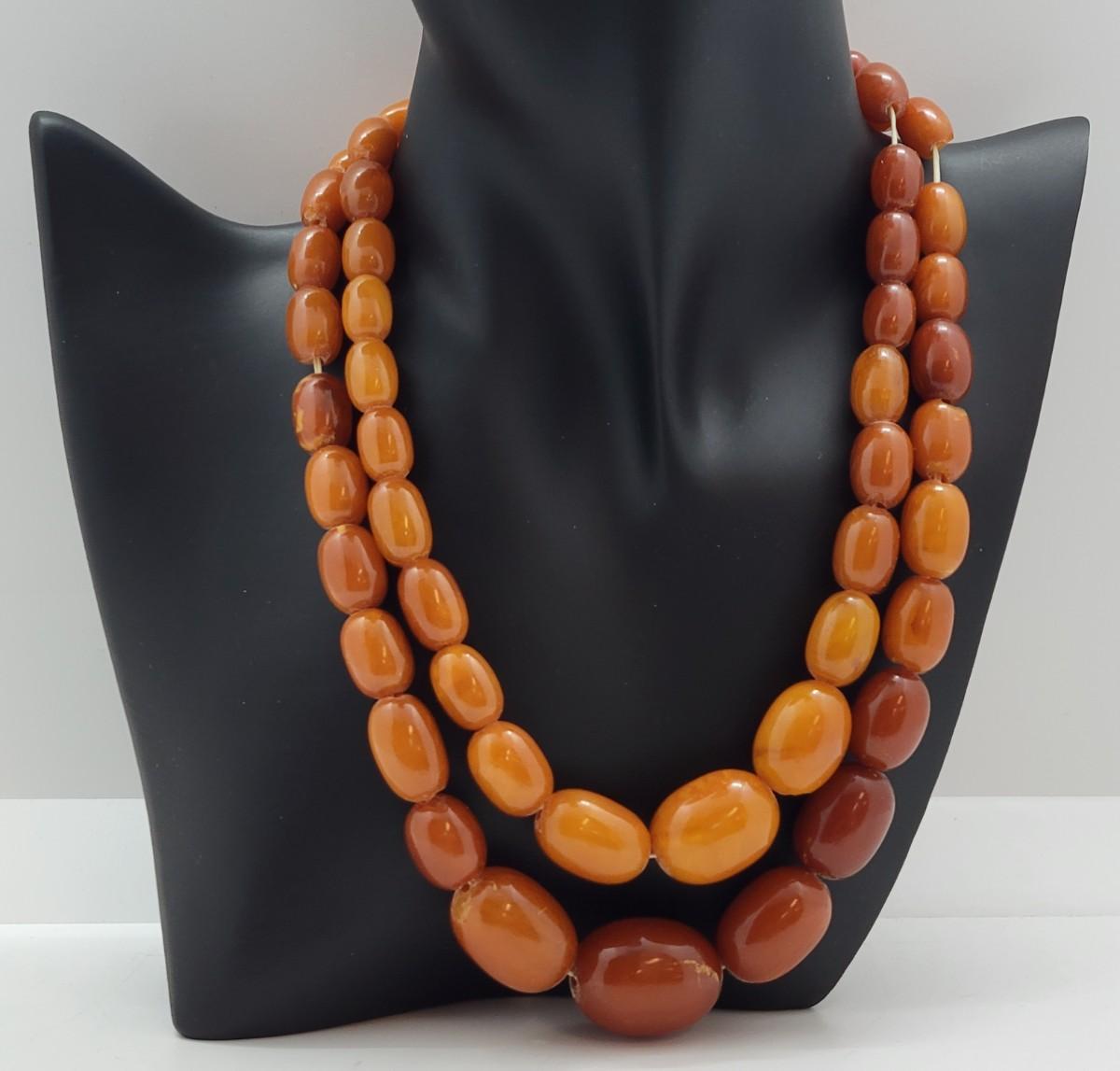 LOT 64: Antique / Vintage Butterscotch Baltic Amber Graduated Bead Necklace - WT 72.21g