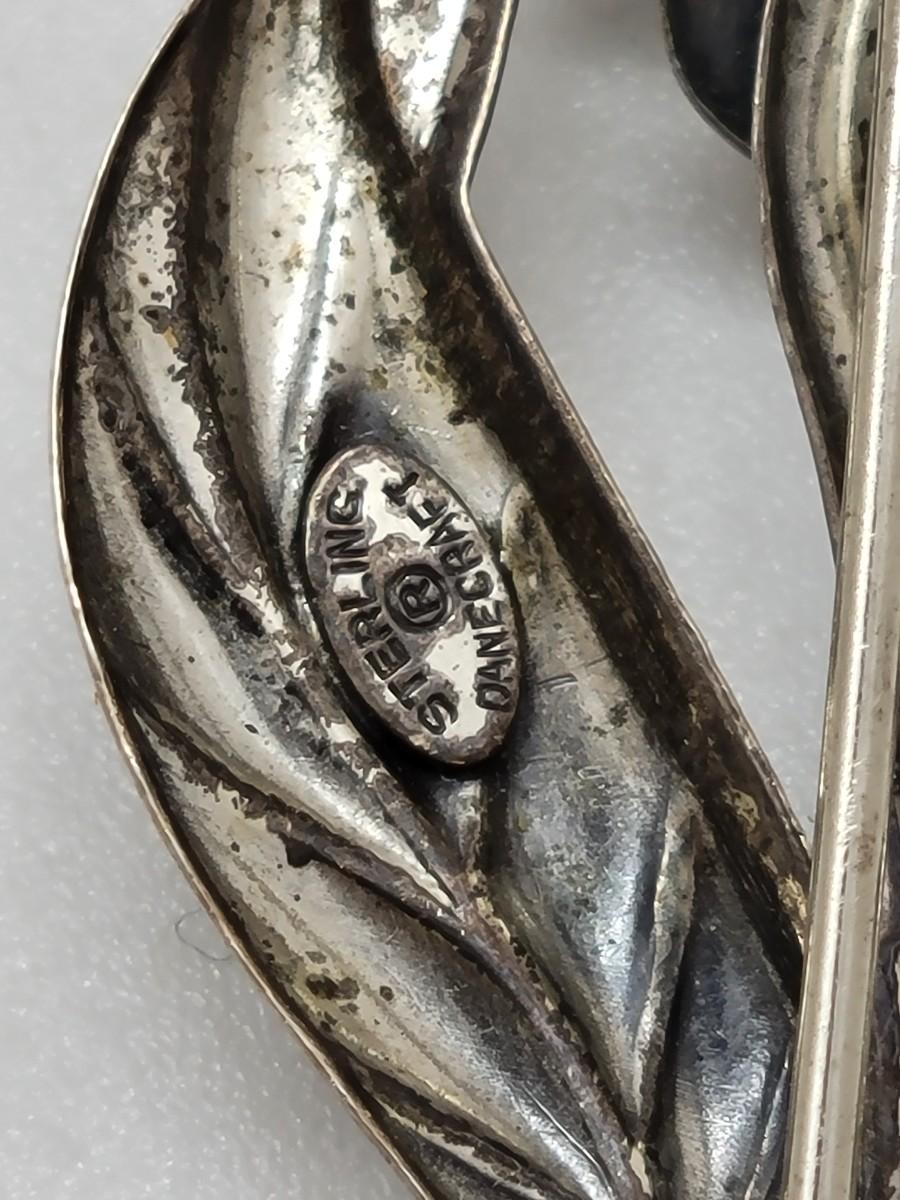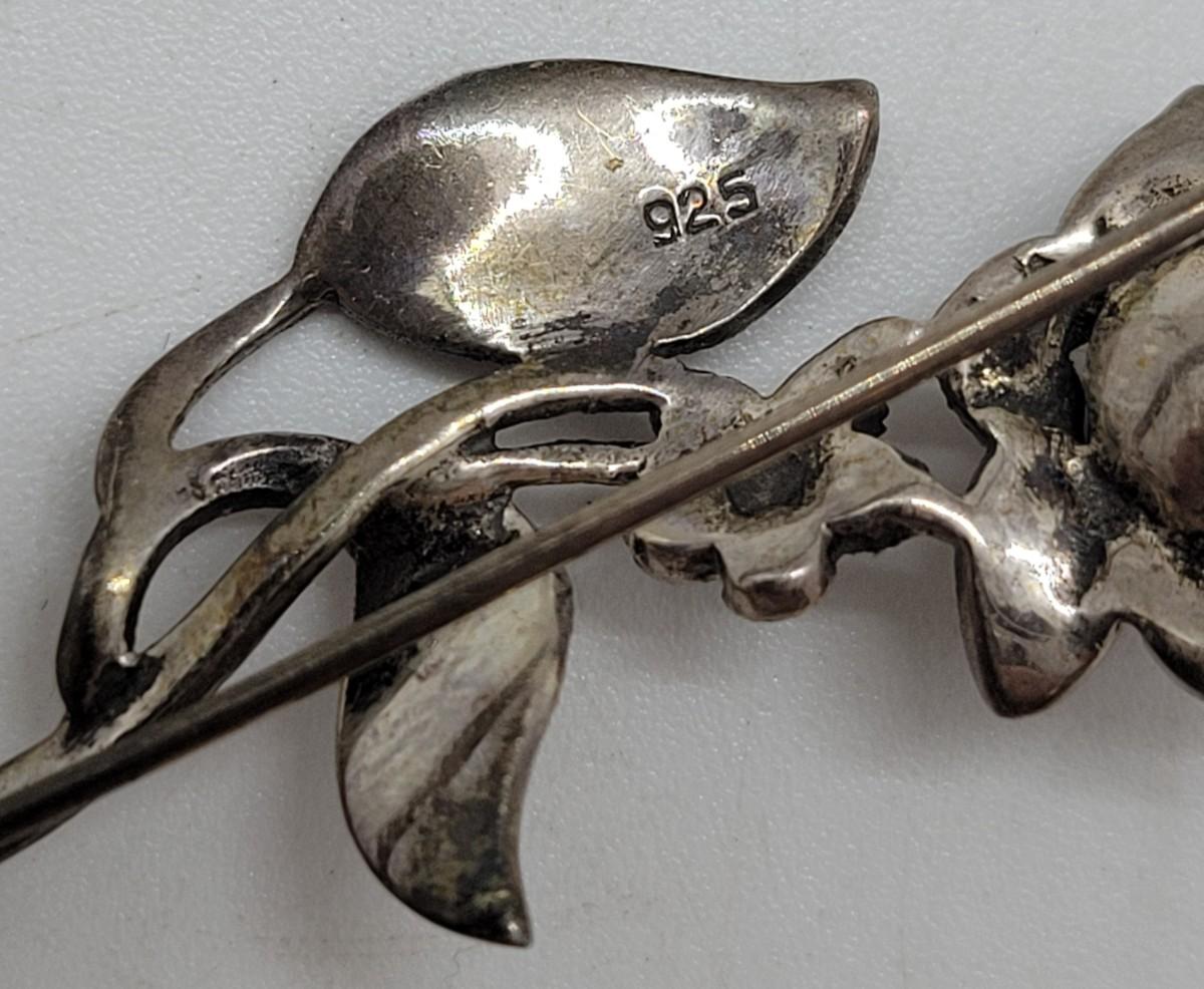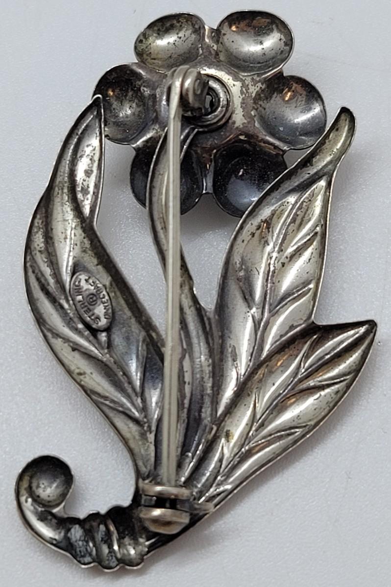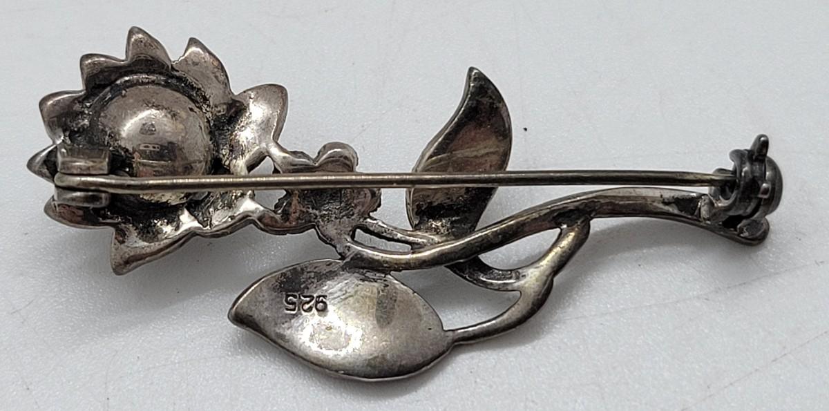 LOT 65: 925 Marcastic Pearl Flower Brooch & Sterling Danecraft Flower Brooch