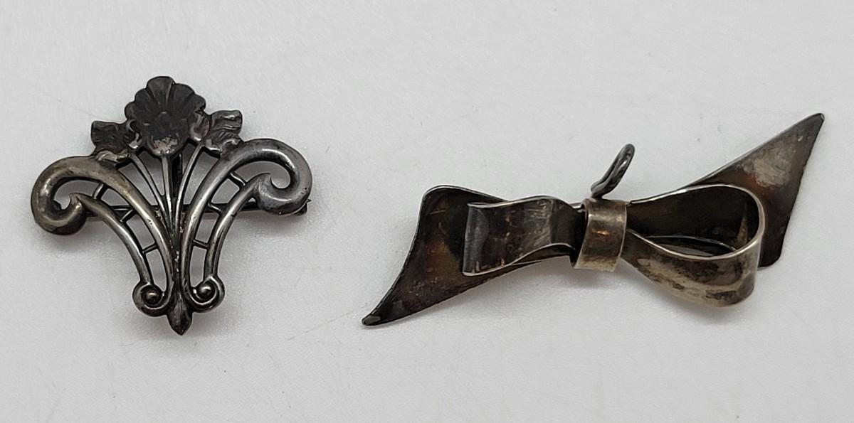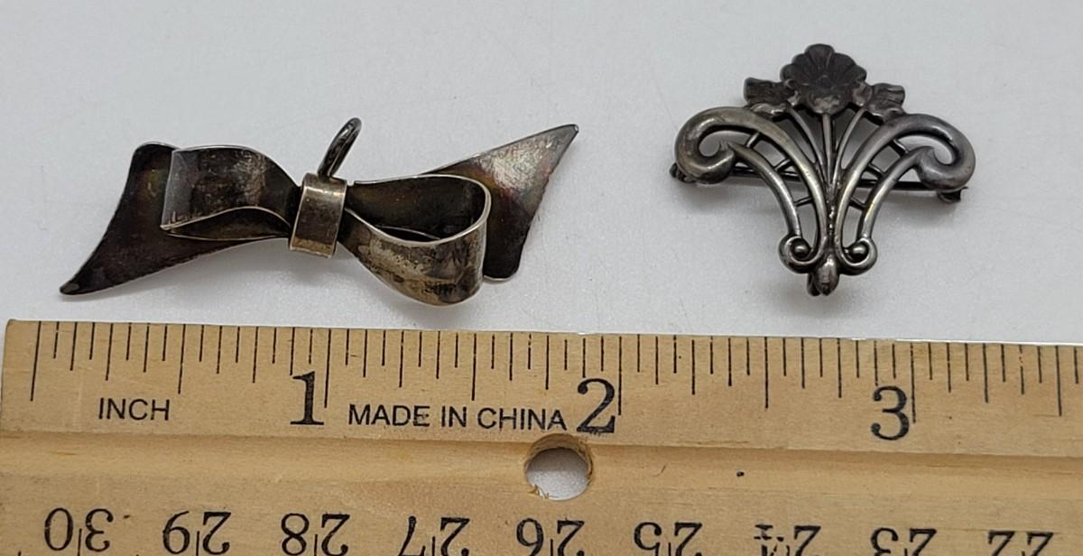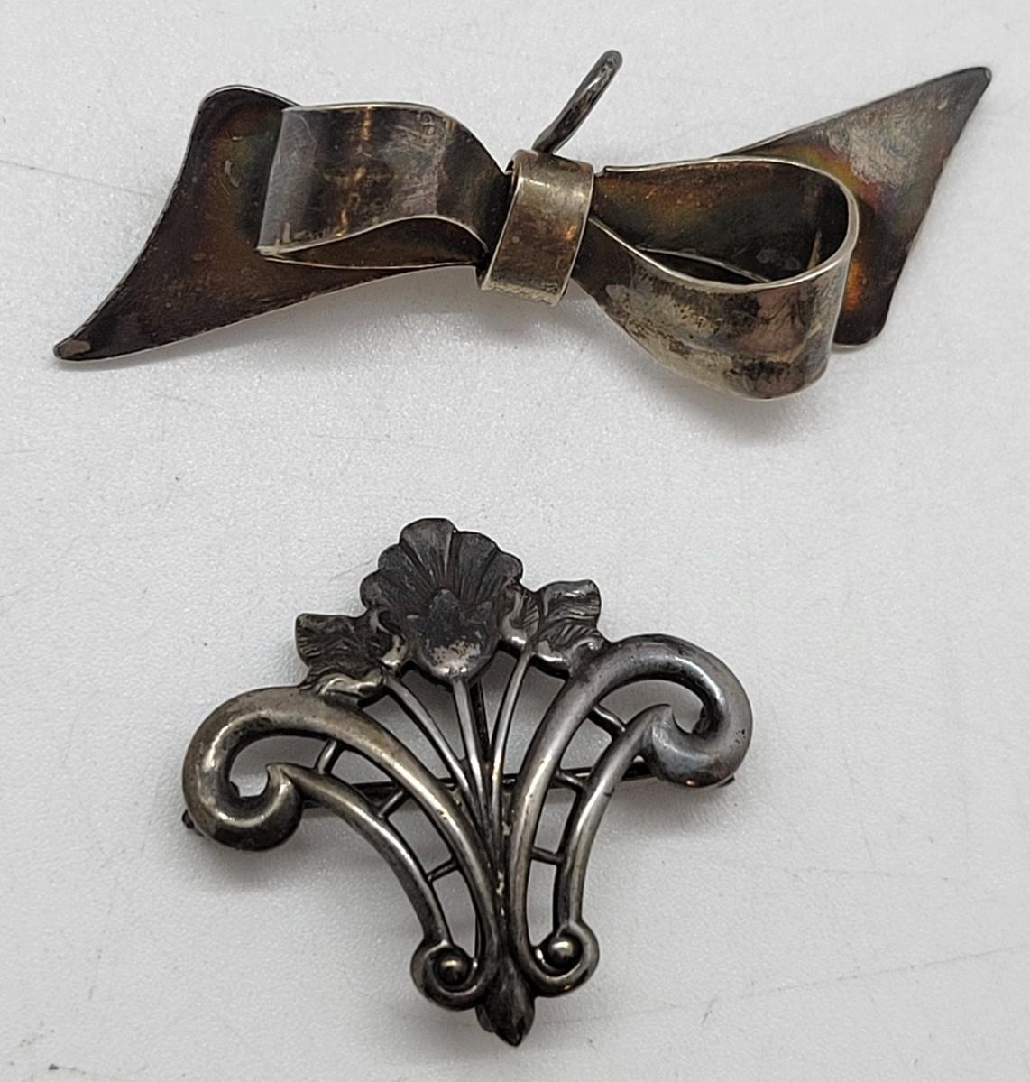 LOT 70: 2 Sterling Antique Watch Pin Holders