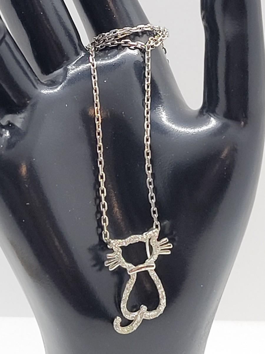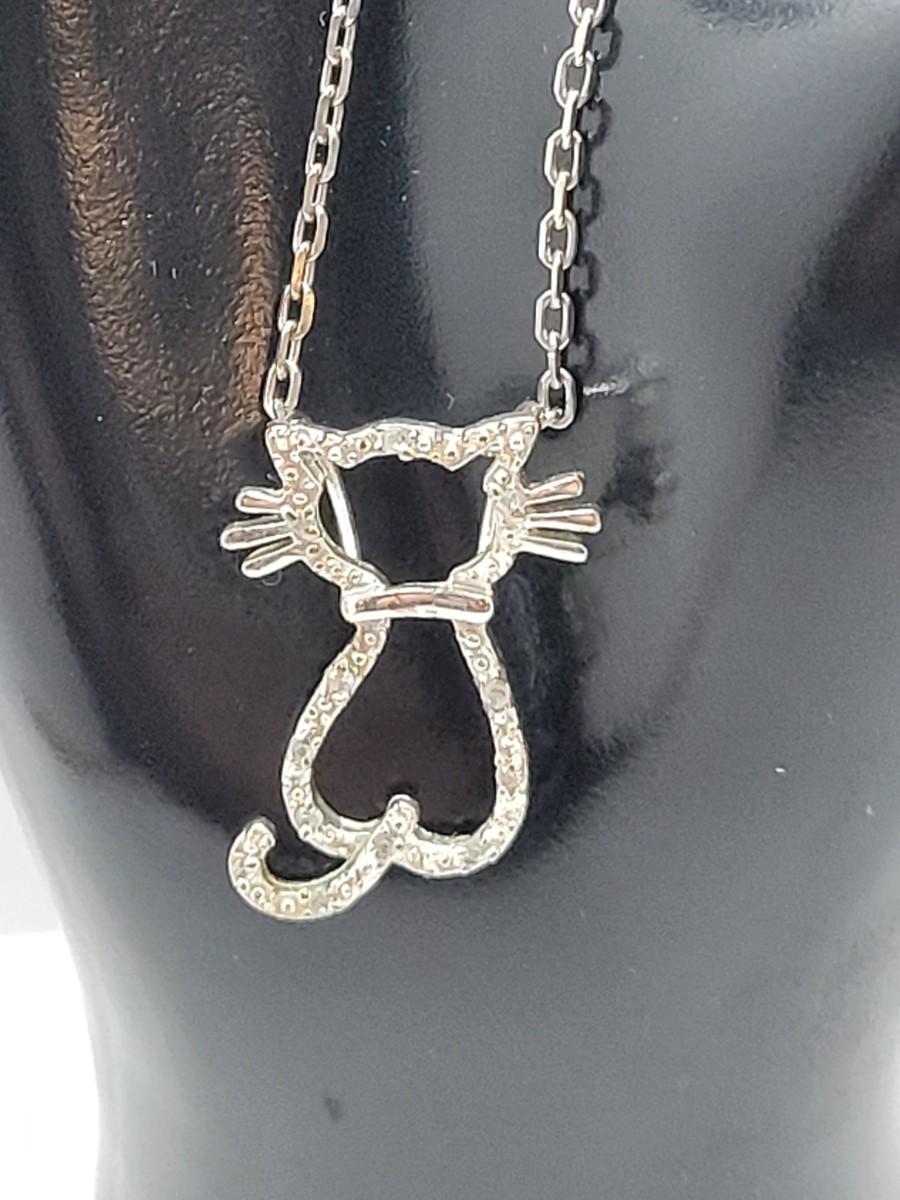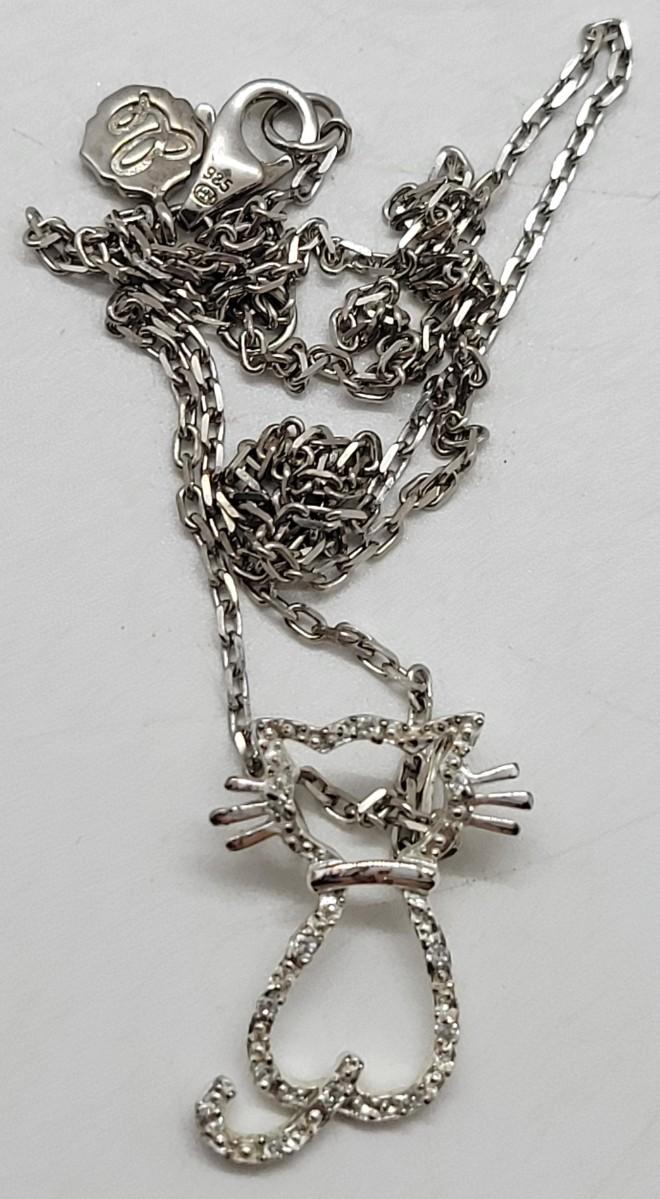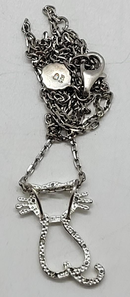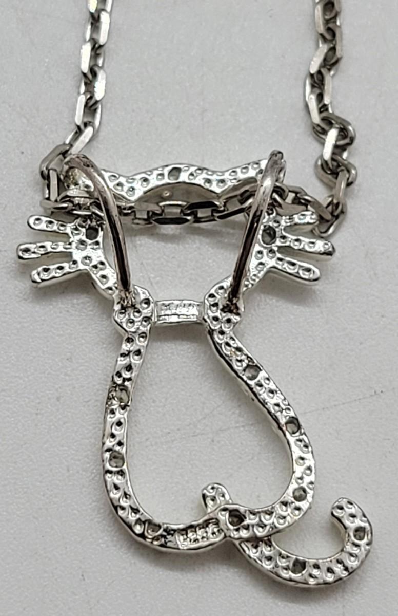 LOT 75: Diamond Chips on Kitty Cat Pendant 925 on 925 Chain 20"L