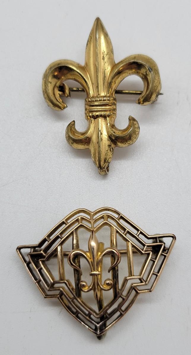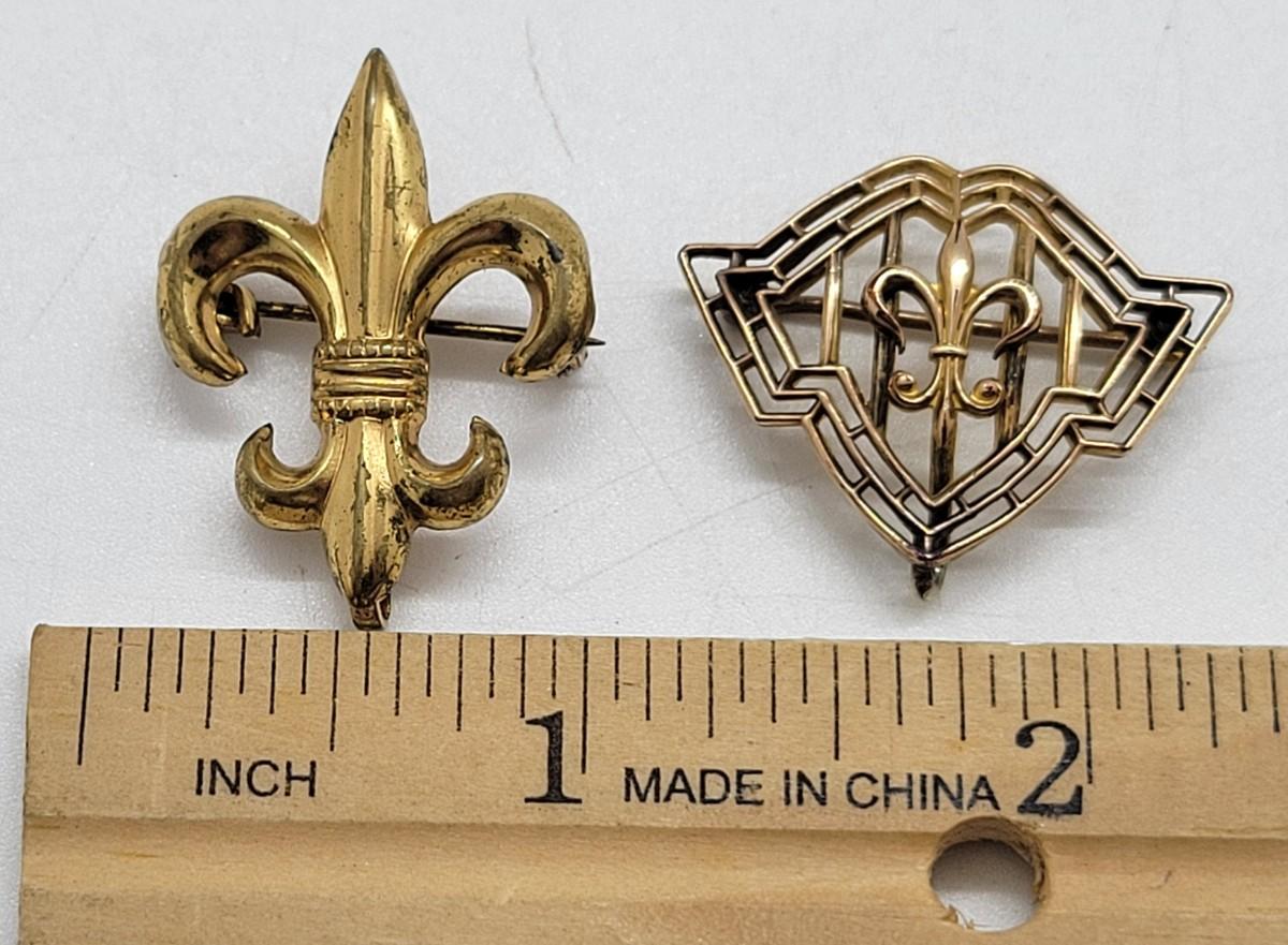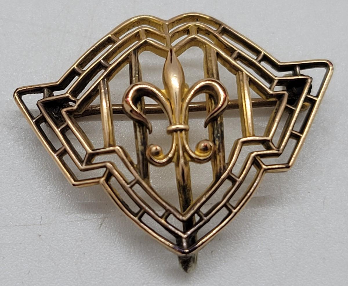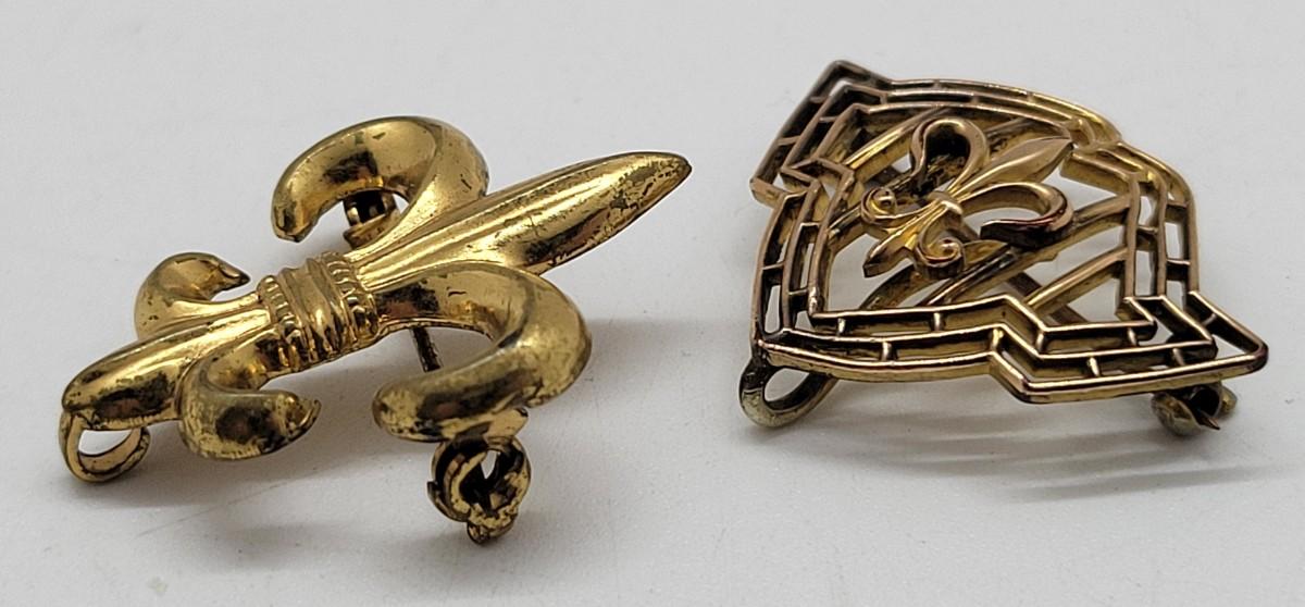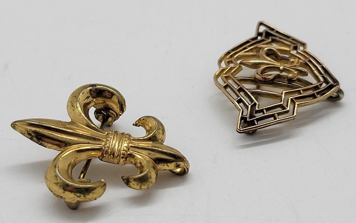 LOT 76: Antique Watch Pin marked OIT. Fleur de Lis Center and Fleur de Lis Pin