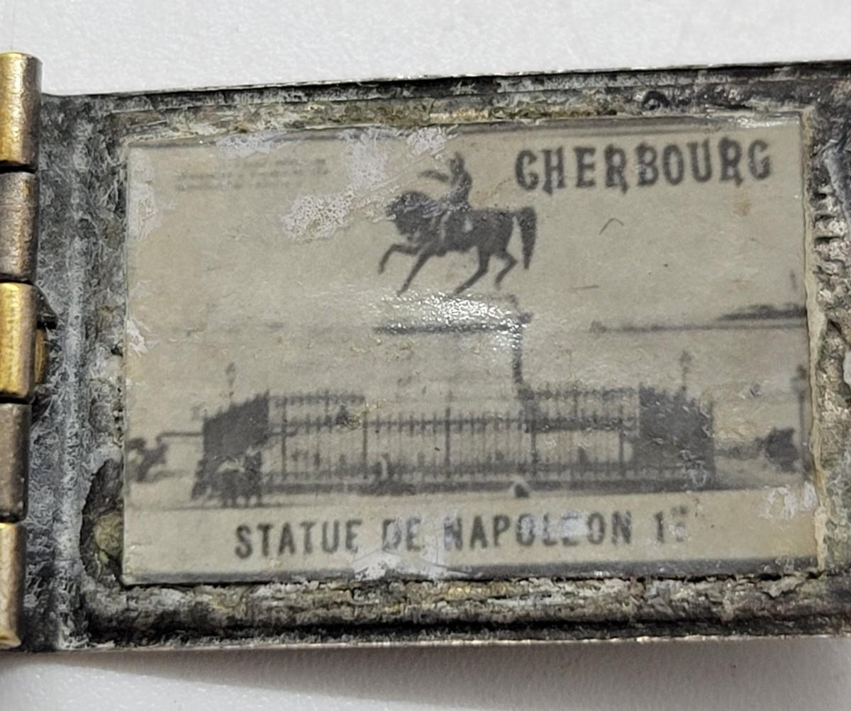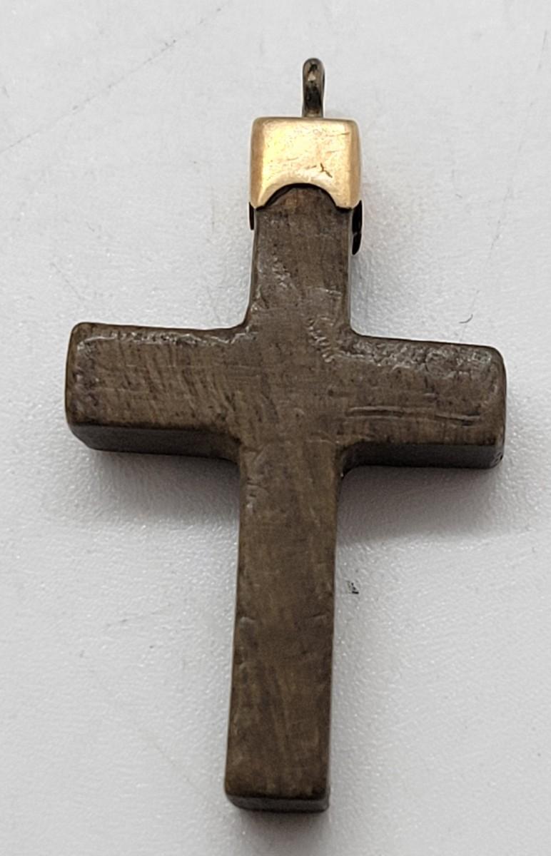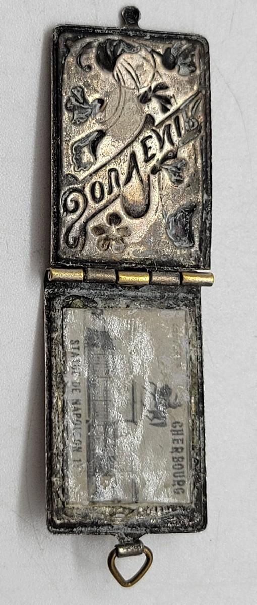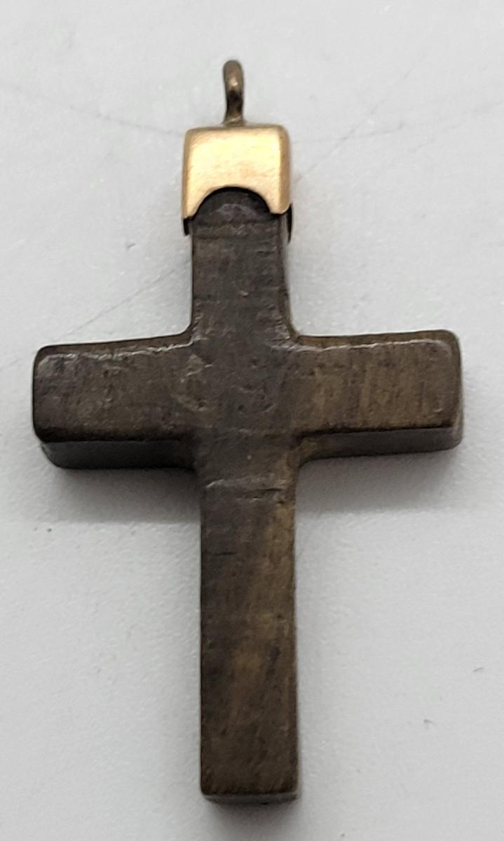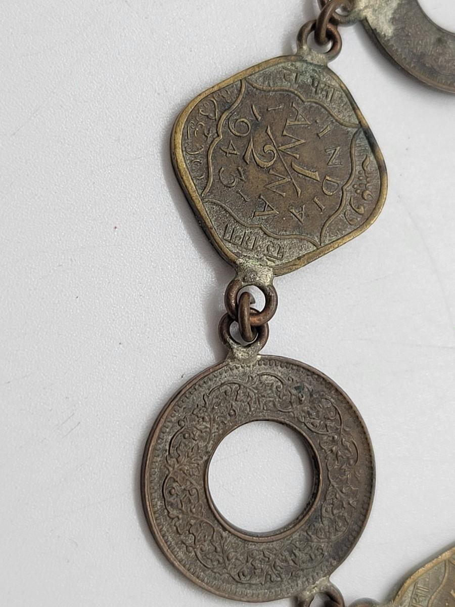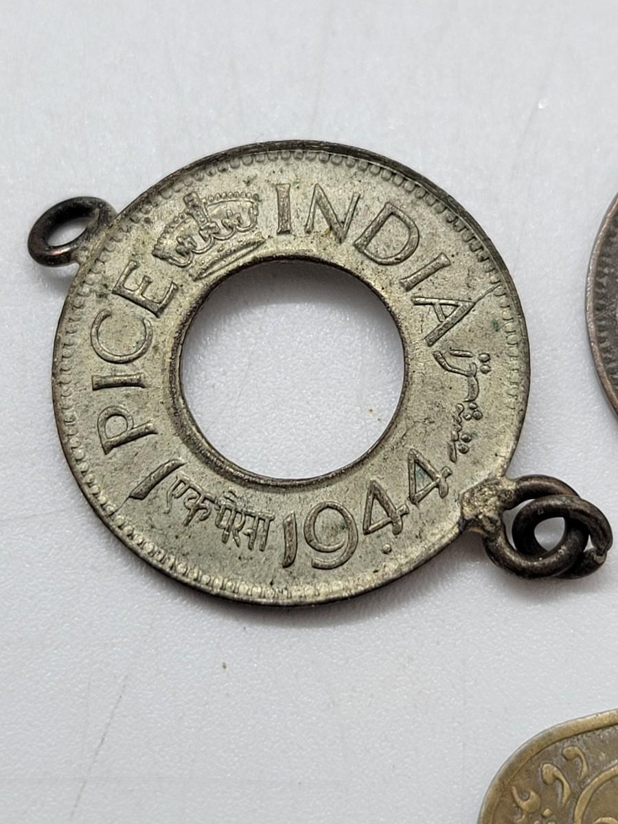 LOT 79: 1944 King George Coin Bracelet with Extra Link, Souvenir Charm/ pendant / locket from Cherbourg, and Small Wood Cross Pendant