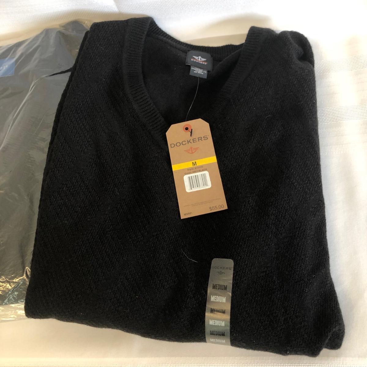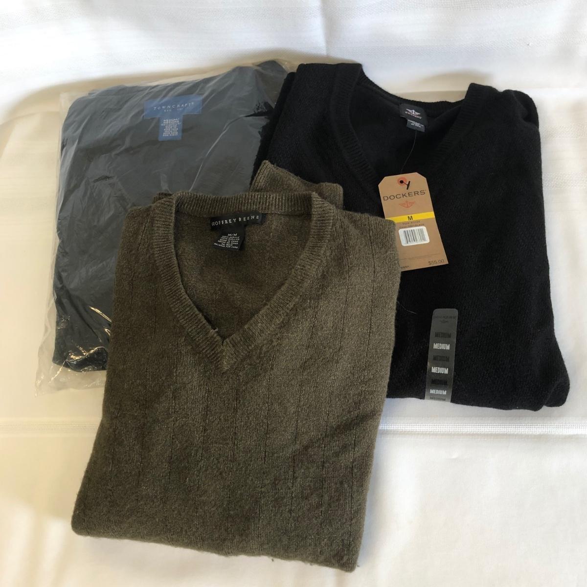 LOT 91: 3 Size Medium V-Neck Sweaters - Dockers, Geoffrey Beene & Towncraft