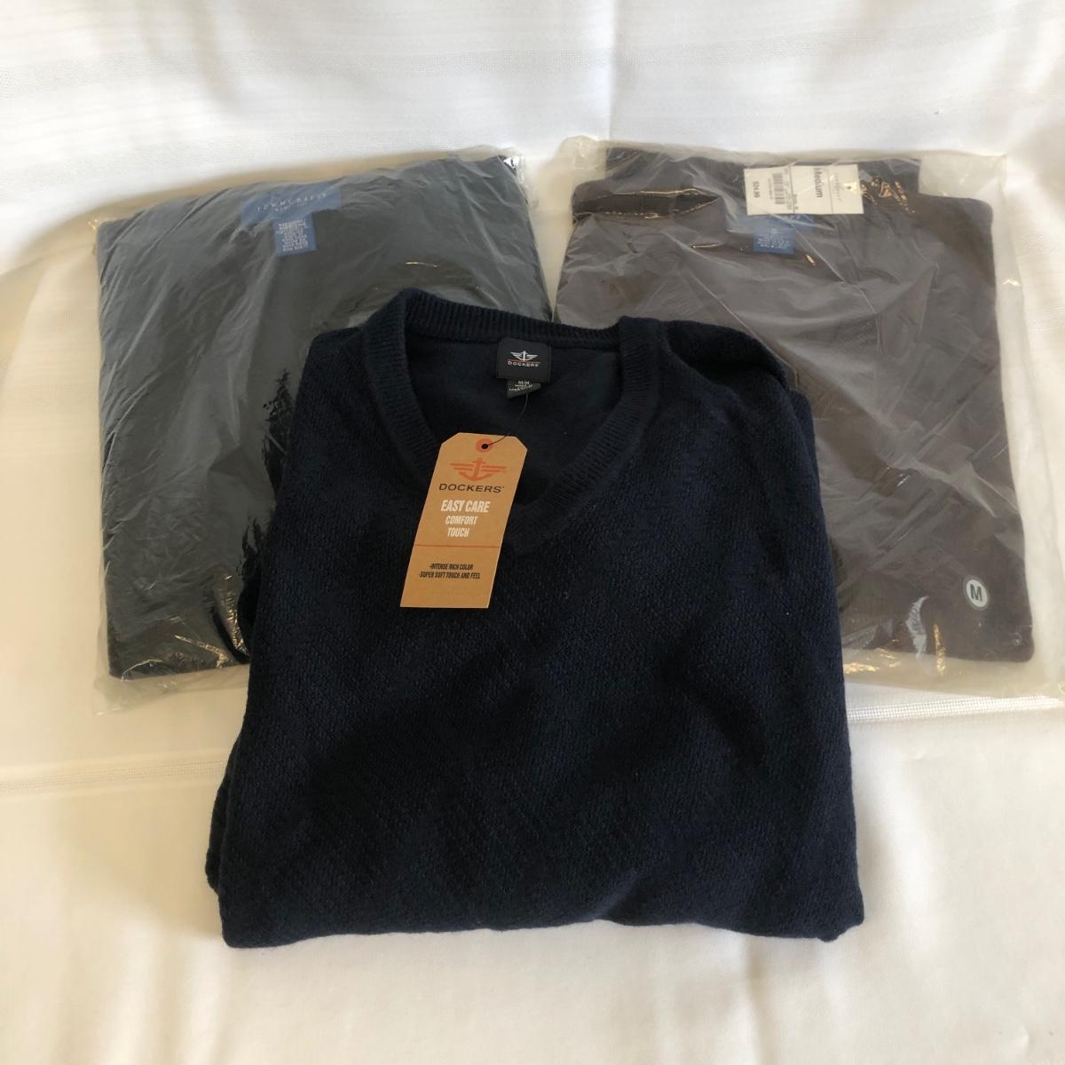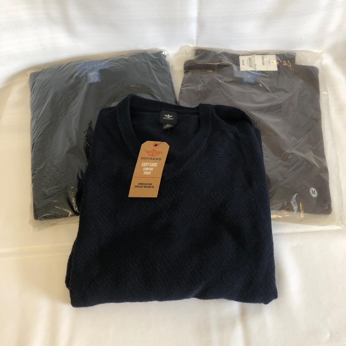 LOT 92: 3 New Medium V-Neck Sweaters - Towncraft & Dockers