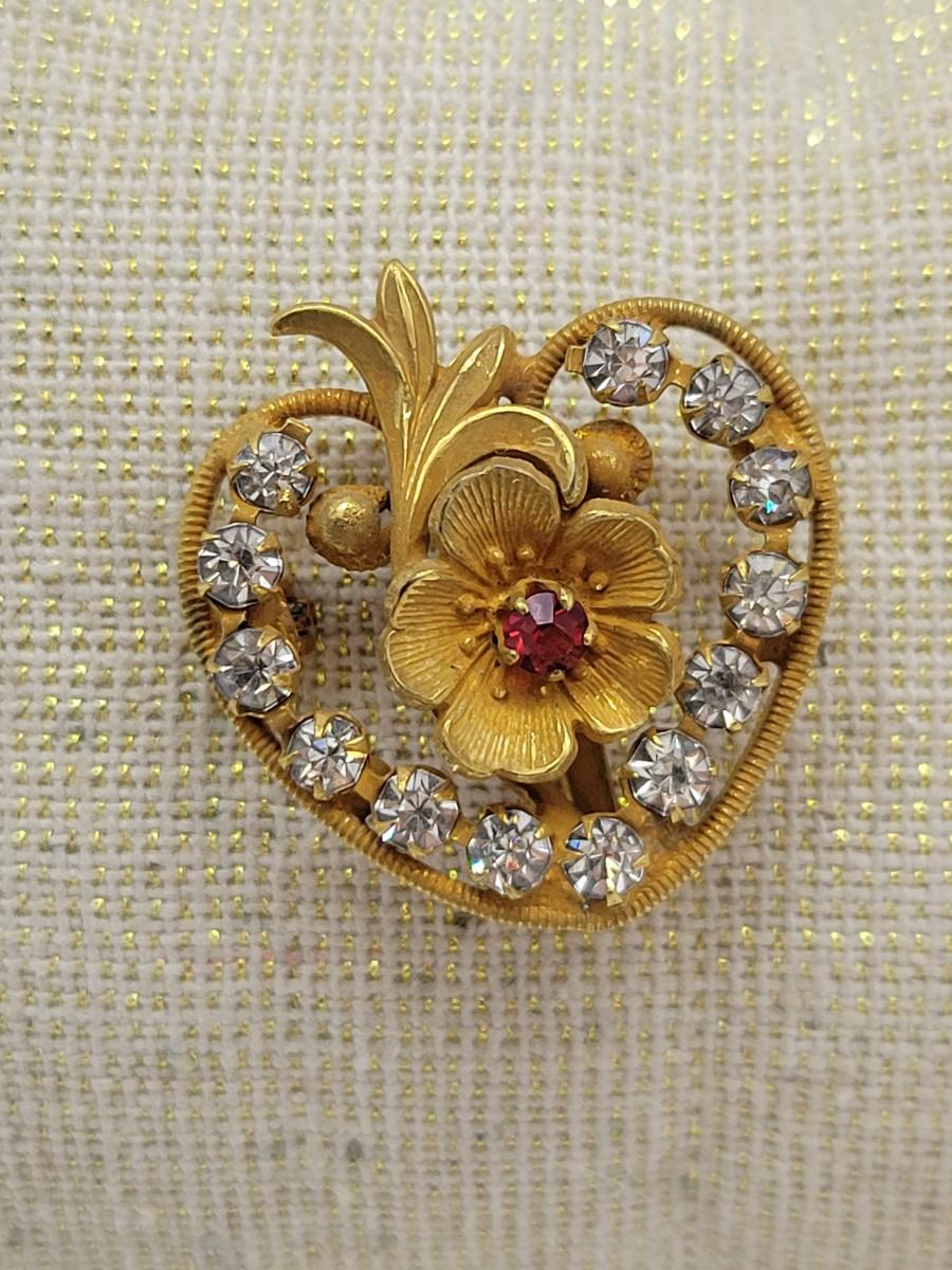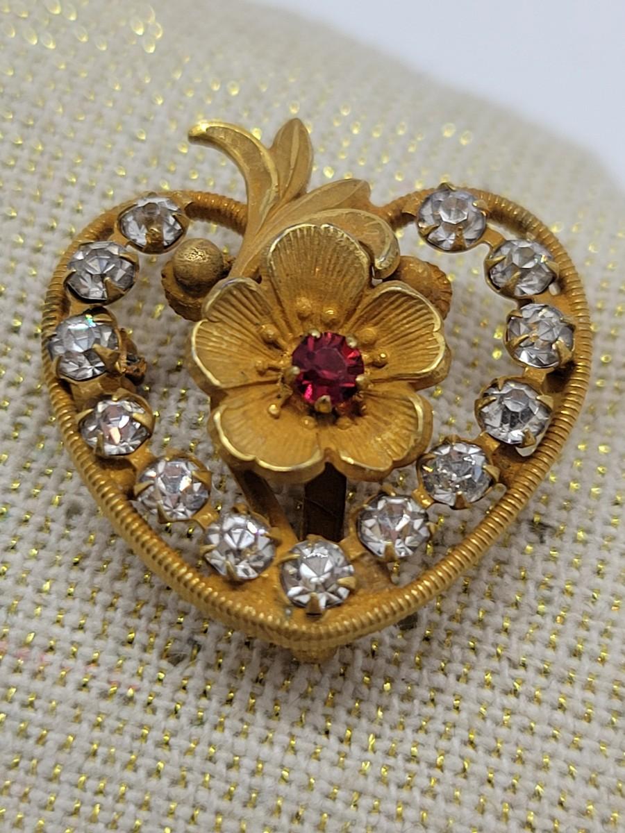 LOT 105: Victorian Watch Pin Heart with Rhinestones