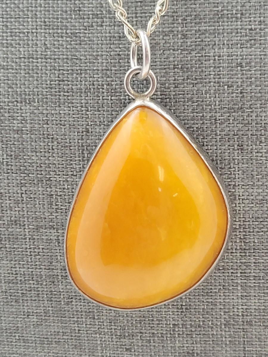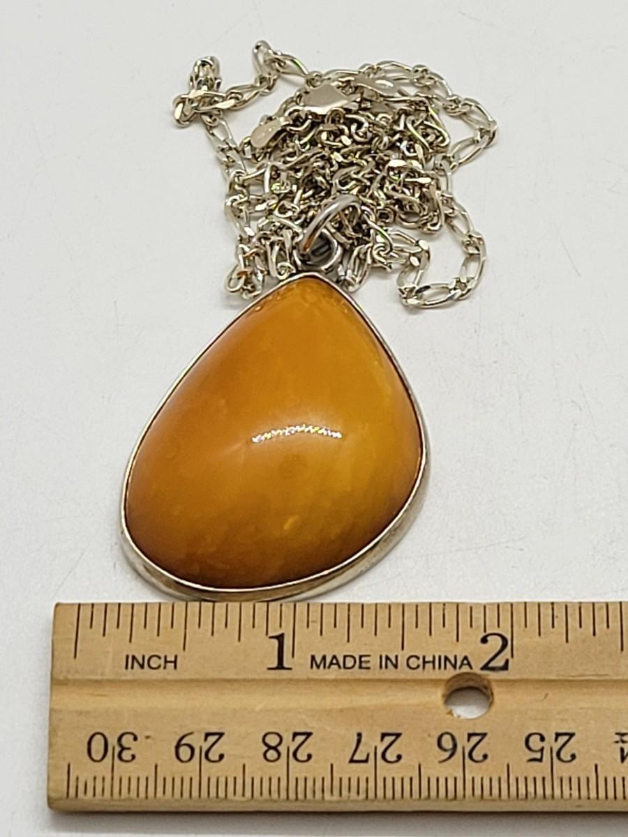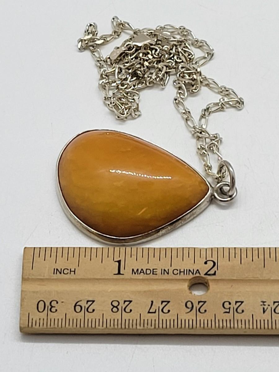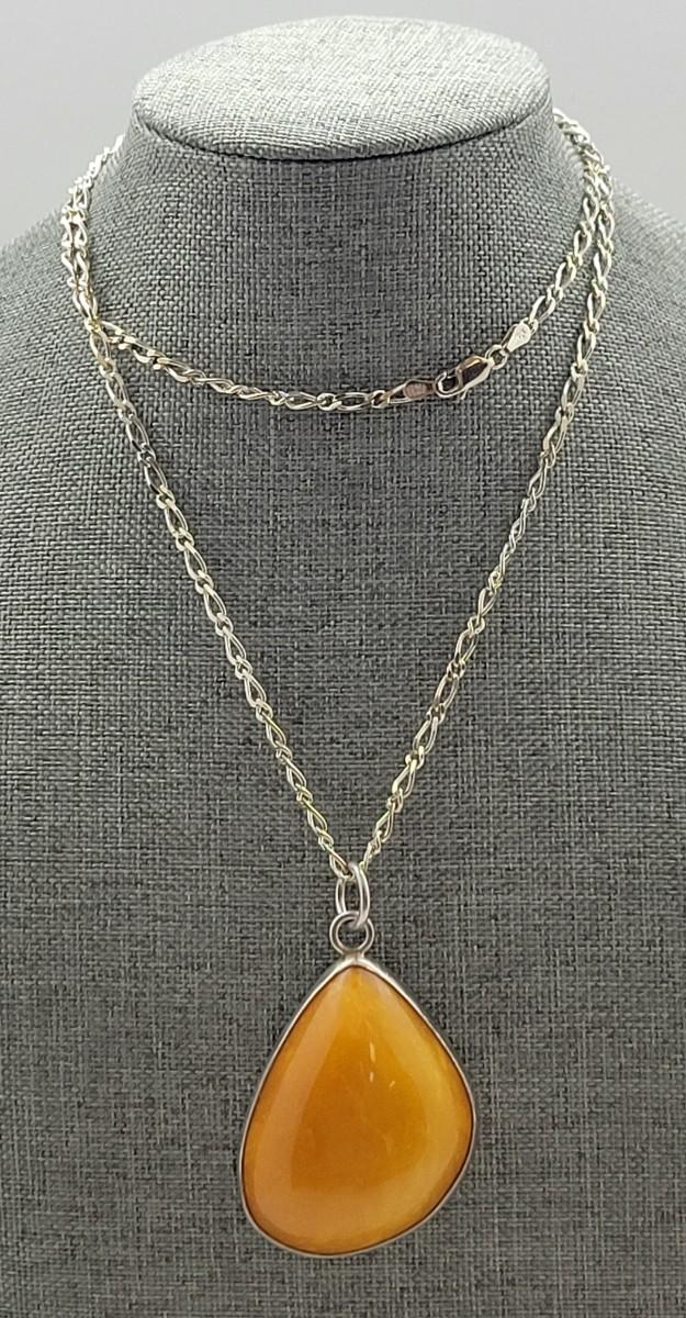 LOT 124: Silver 925 Butterscotch Amber Pendant on 925 Italy Dane Craft Chain 24"L