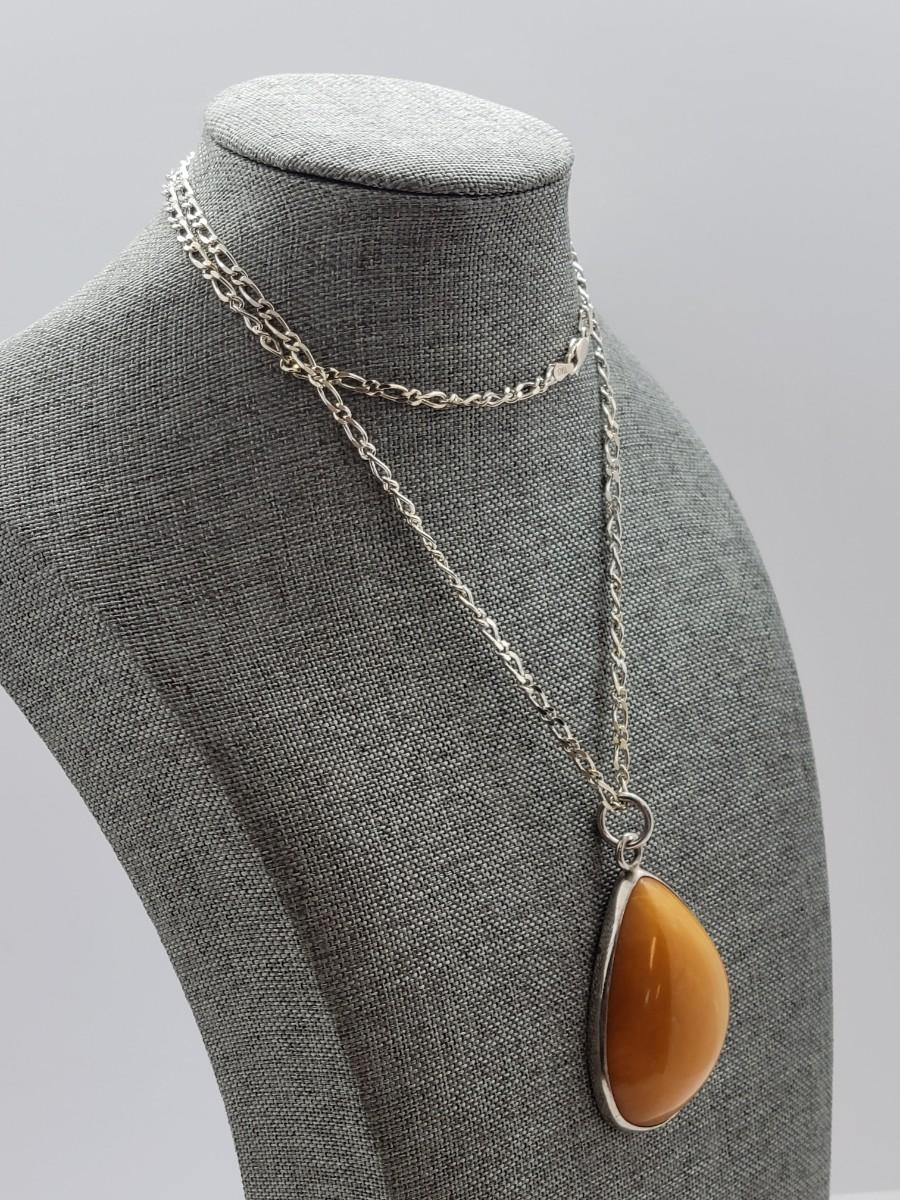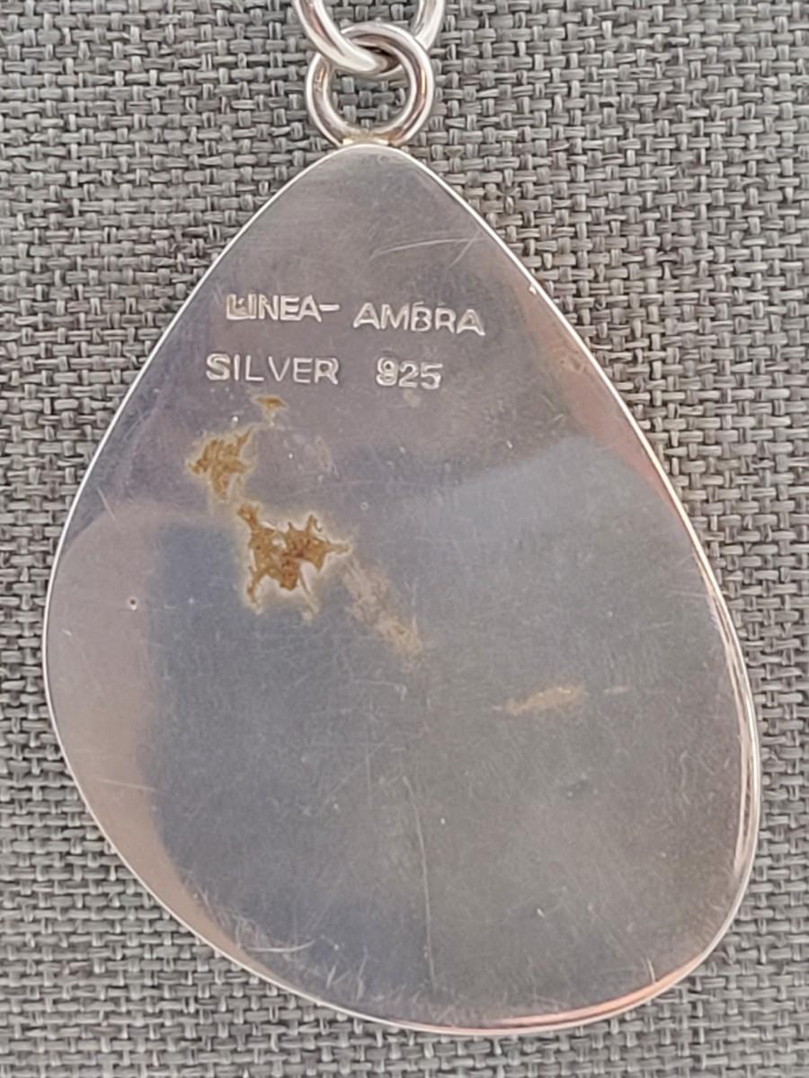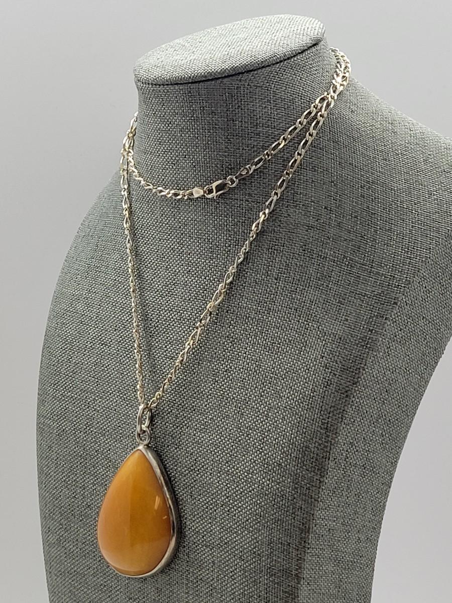 LOT 124: Silver 925 Butterscotch Amber Pendant on 925 Italy Dane Craft Chain 24"L