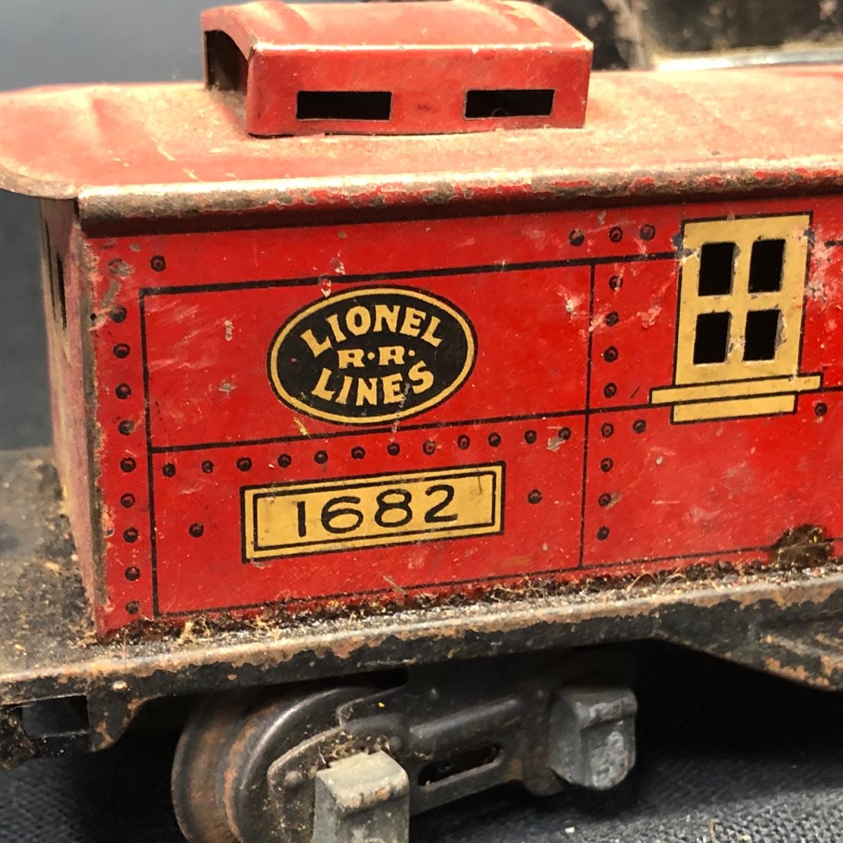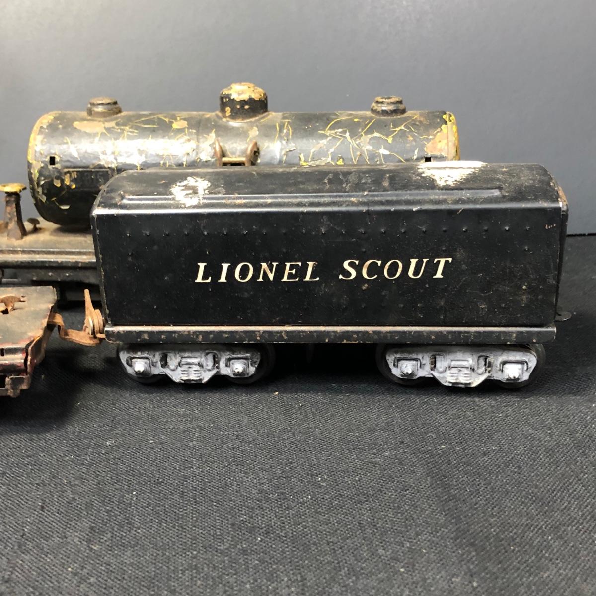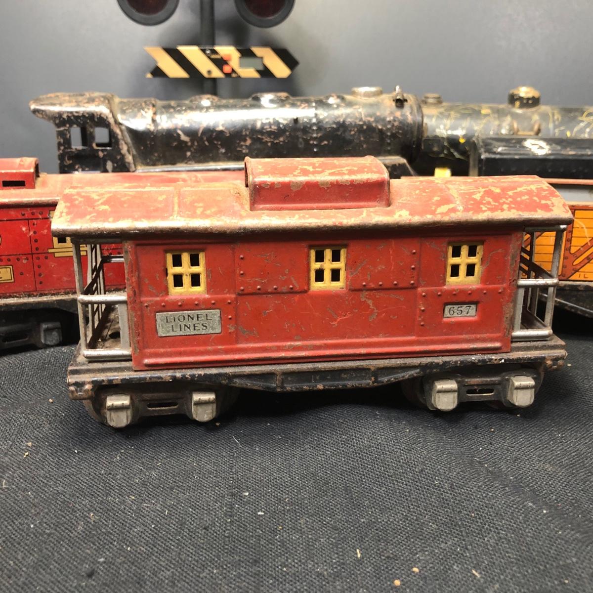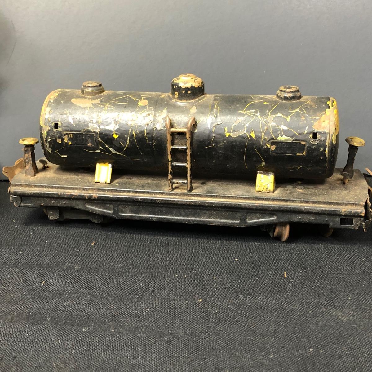 LOT 136: Lionel Train Cars, MAR Toys Engine Shell, Railway Crossing Sign & Texaco Car
