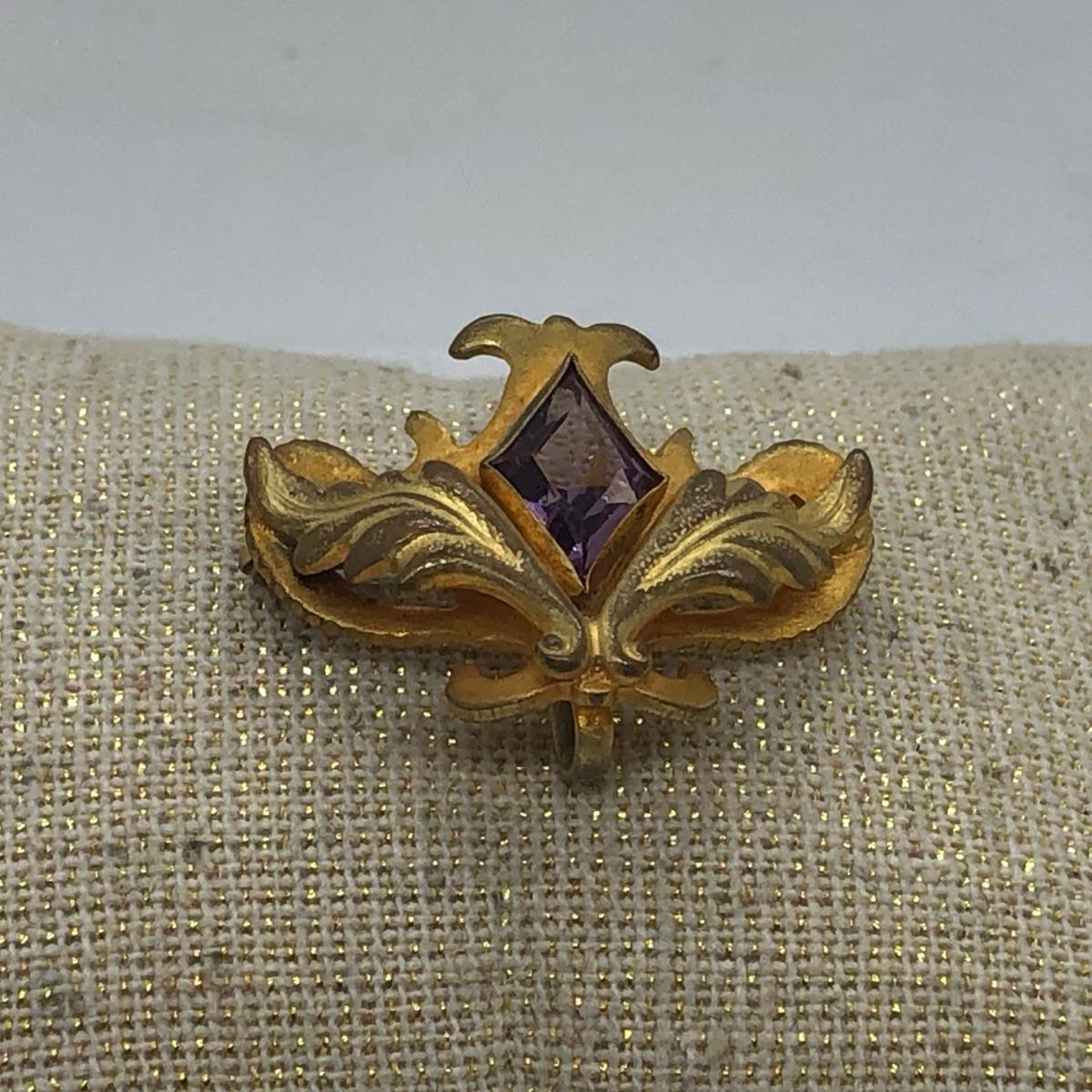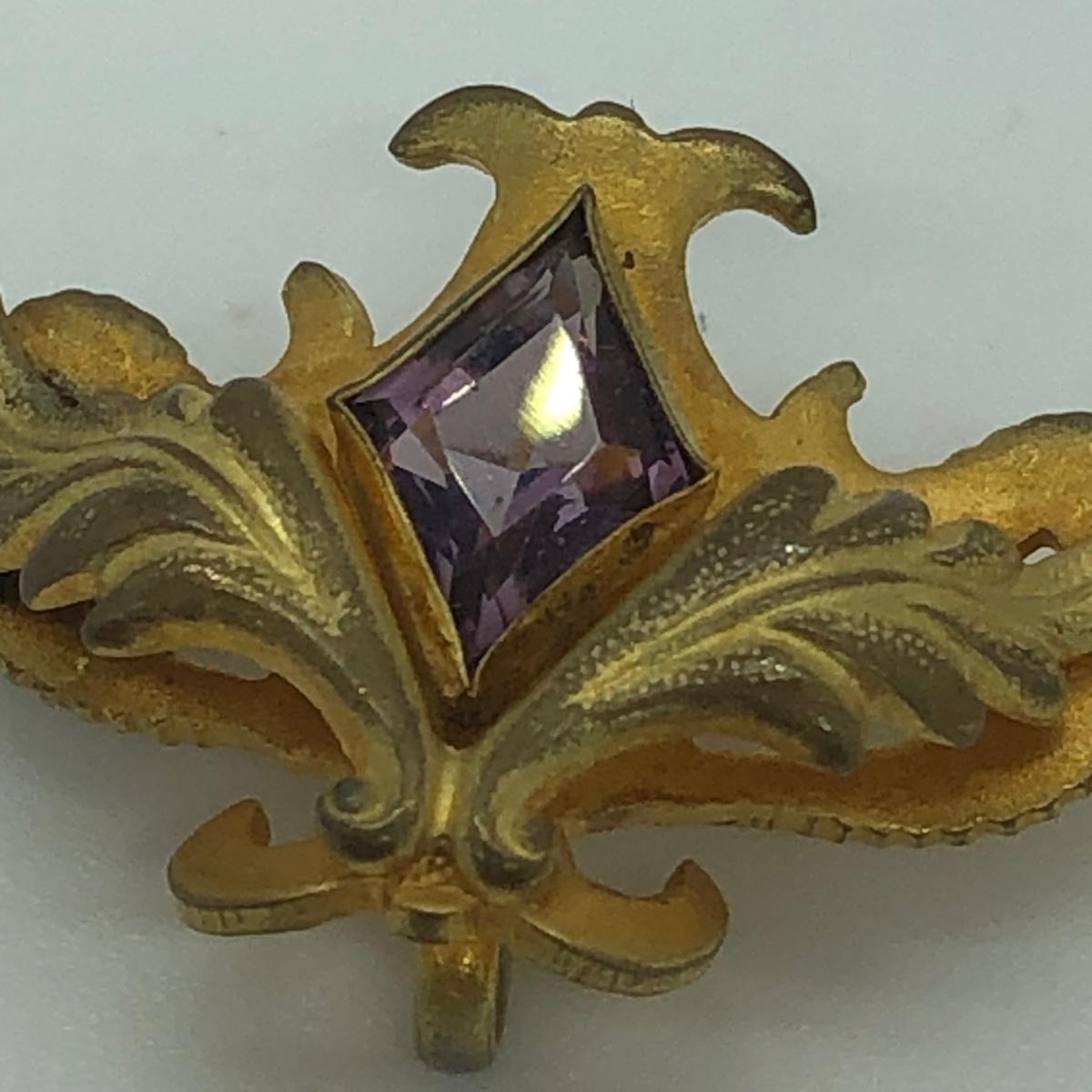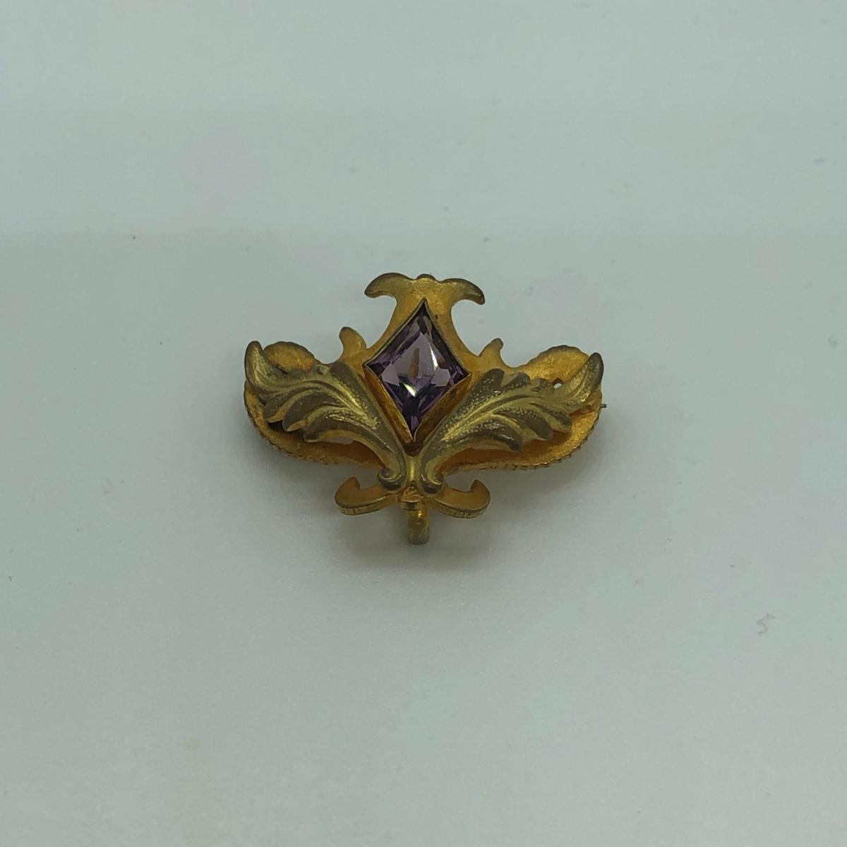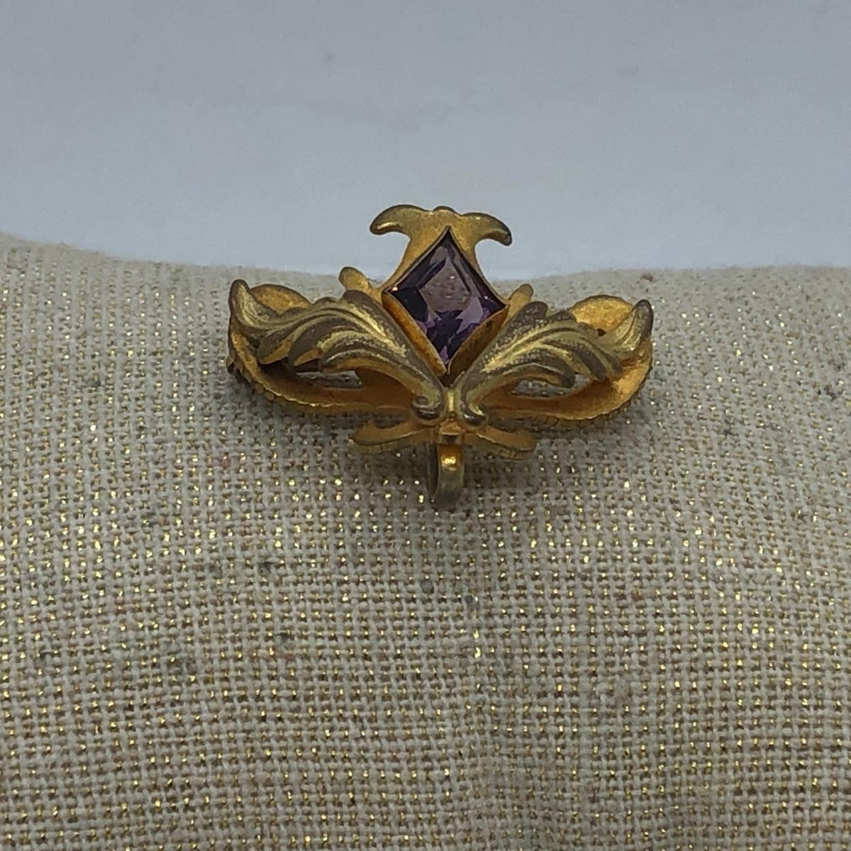 LOT 139: Victorian Watch Pin Amethyst Diamond Shape Center