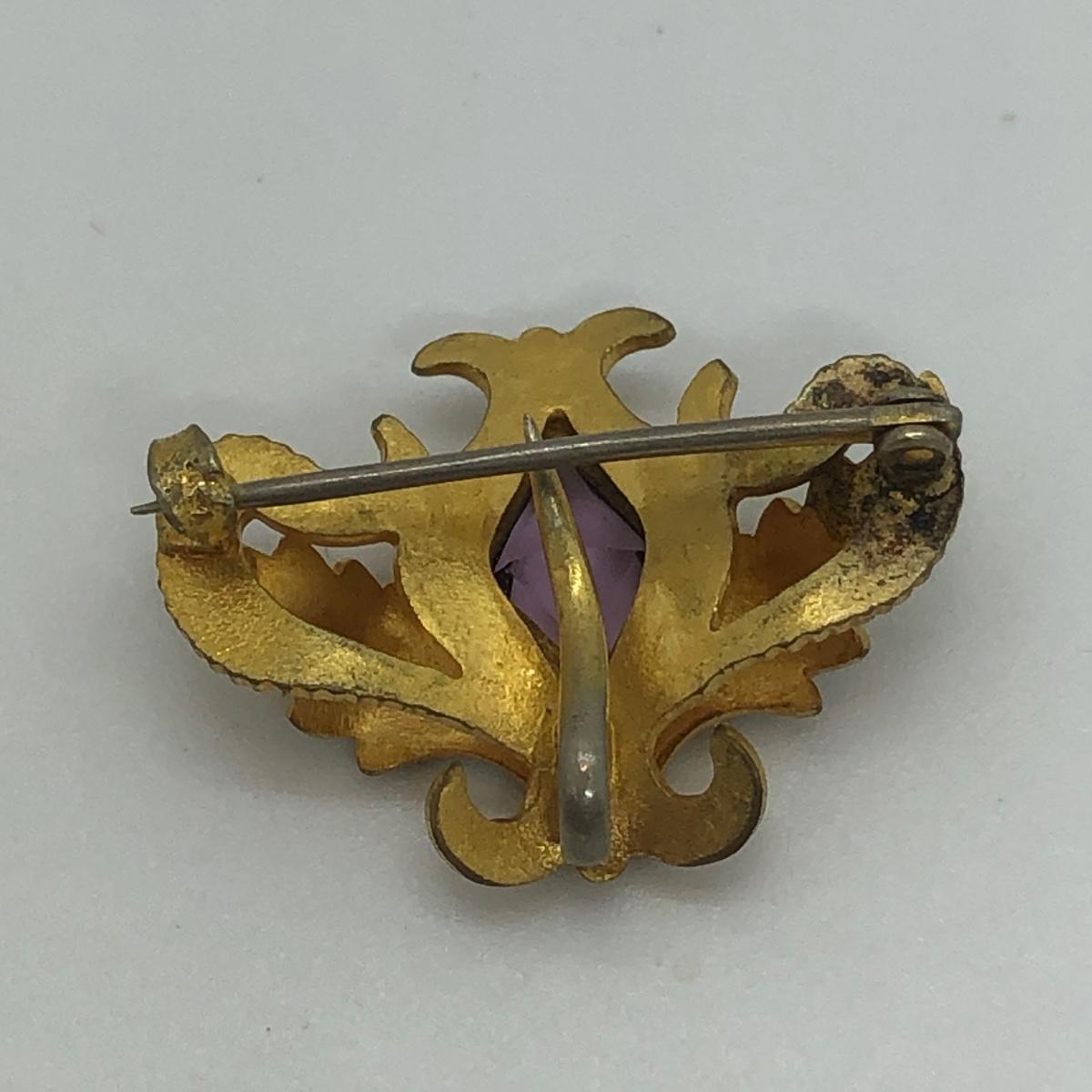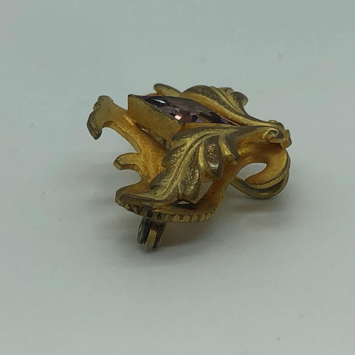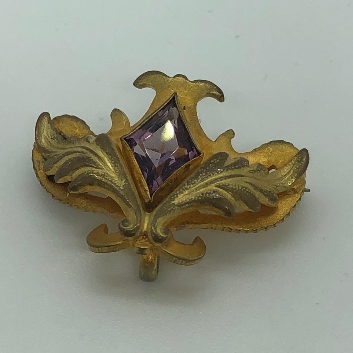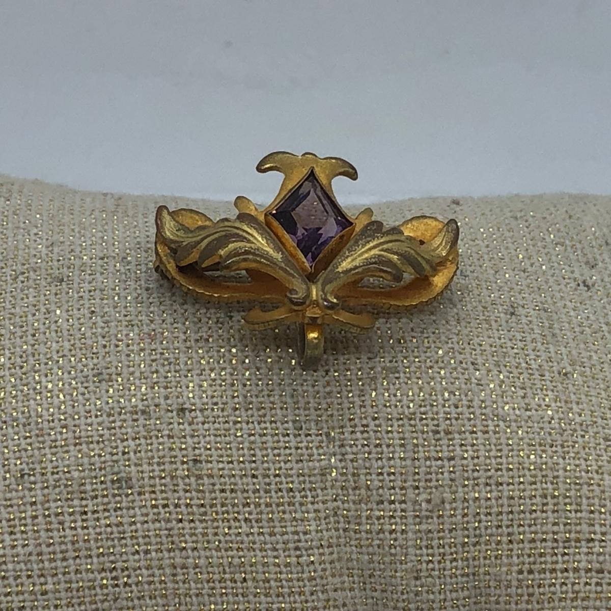 LOT 139: Victorian Watch Pin Amethyst Diamond Shape Center