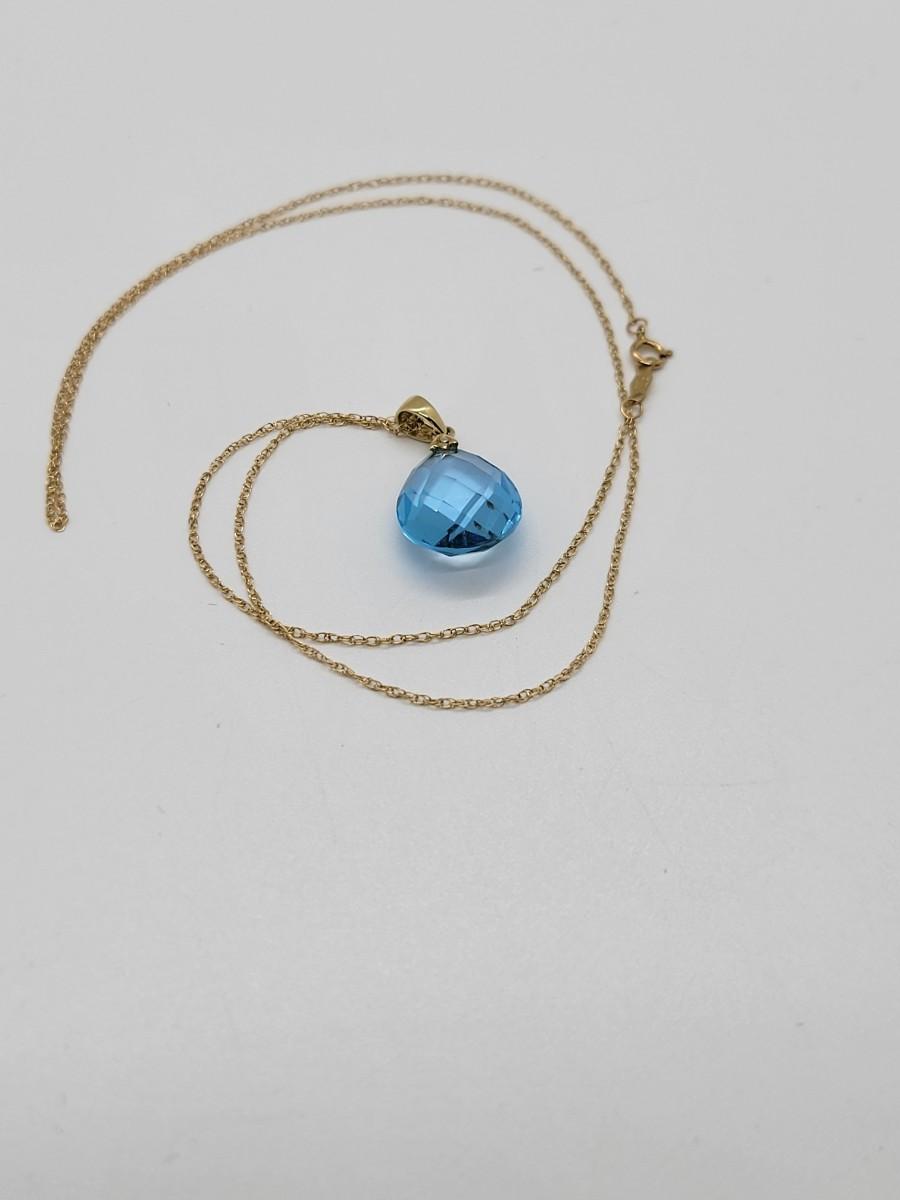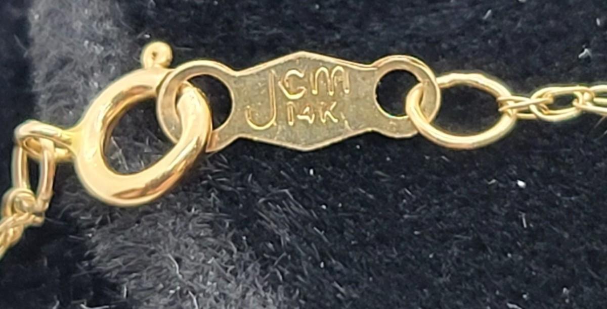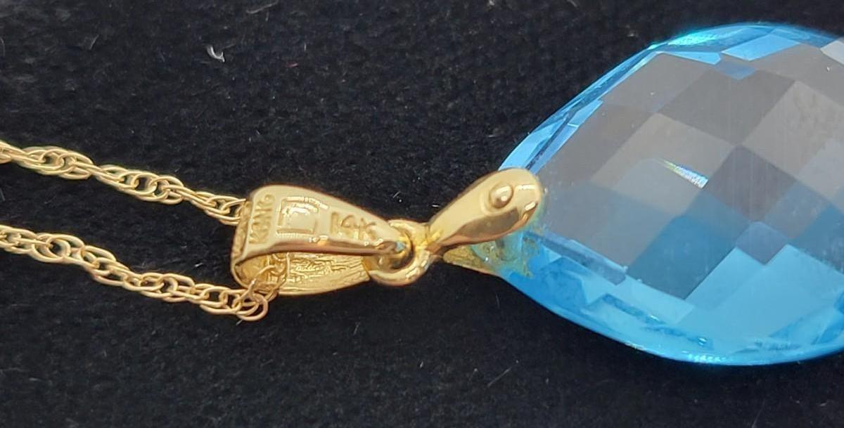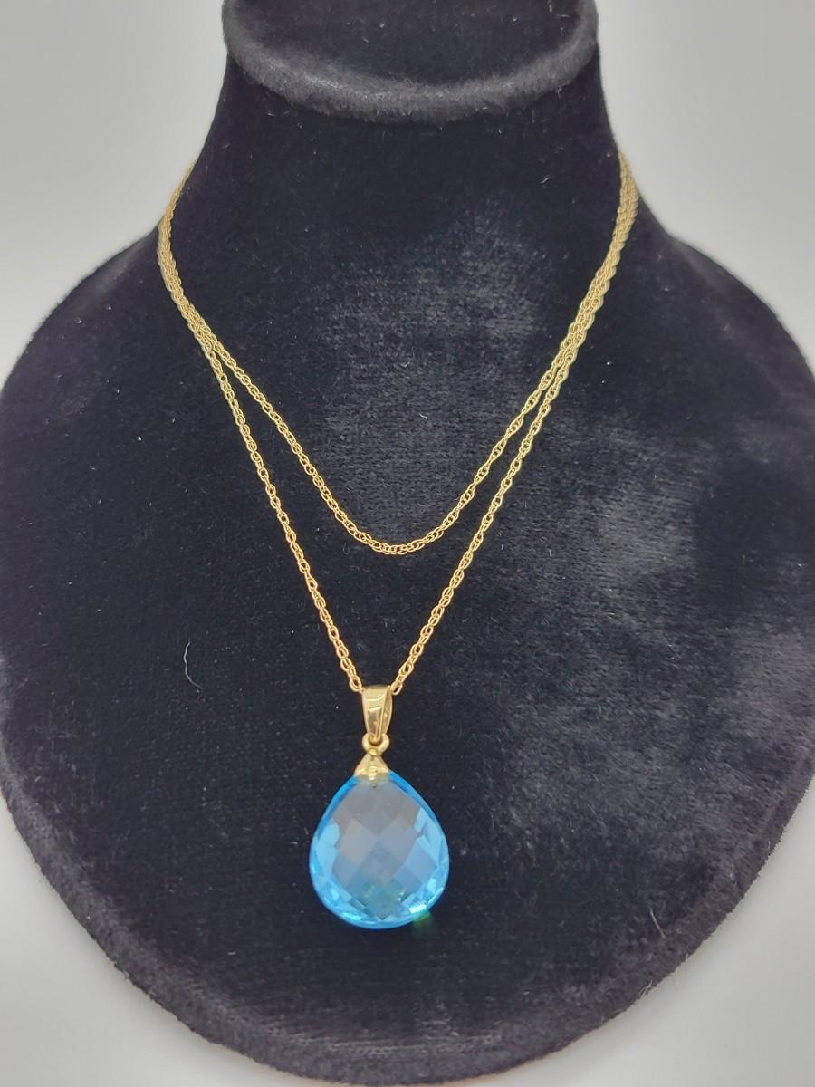 LOT14: 14K Gold "JCM" 18" Chain with Lovely Blue Topaz Pendant