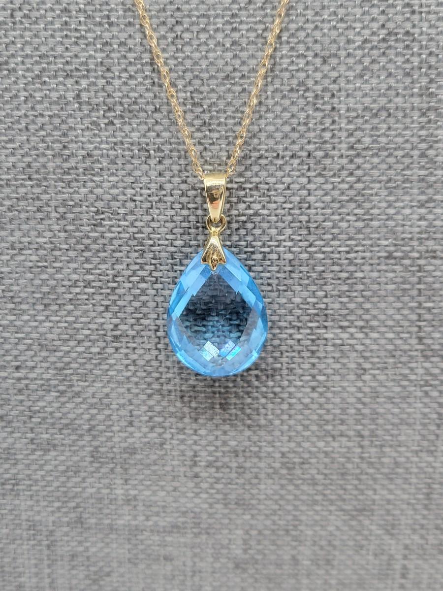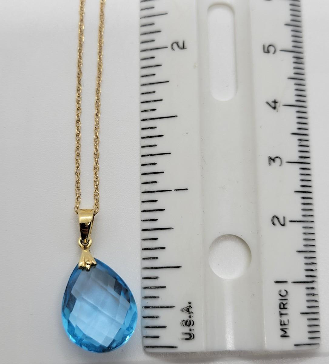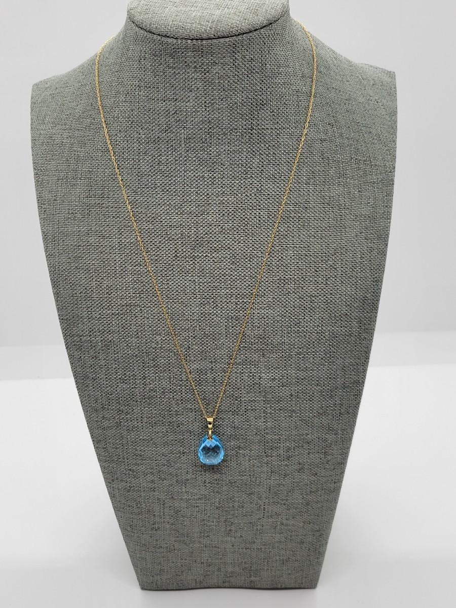 LOT14: 14K Gold "JCM" 18" Chain with Lovely Blue Topaz Pendant