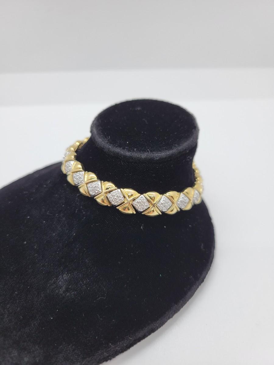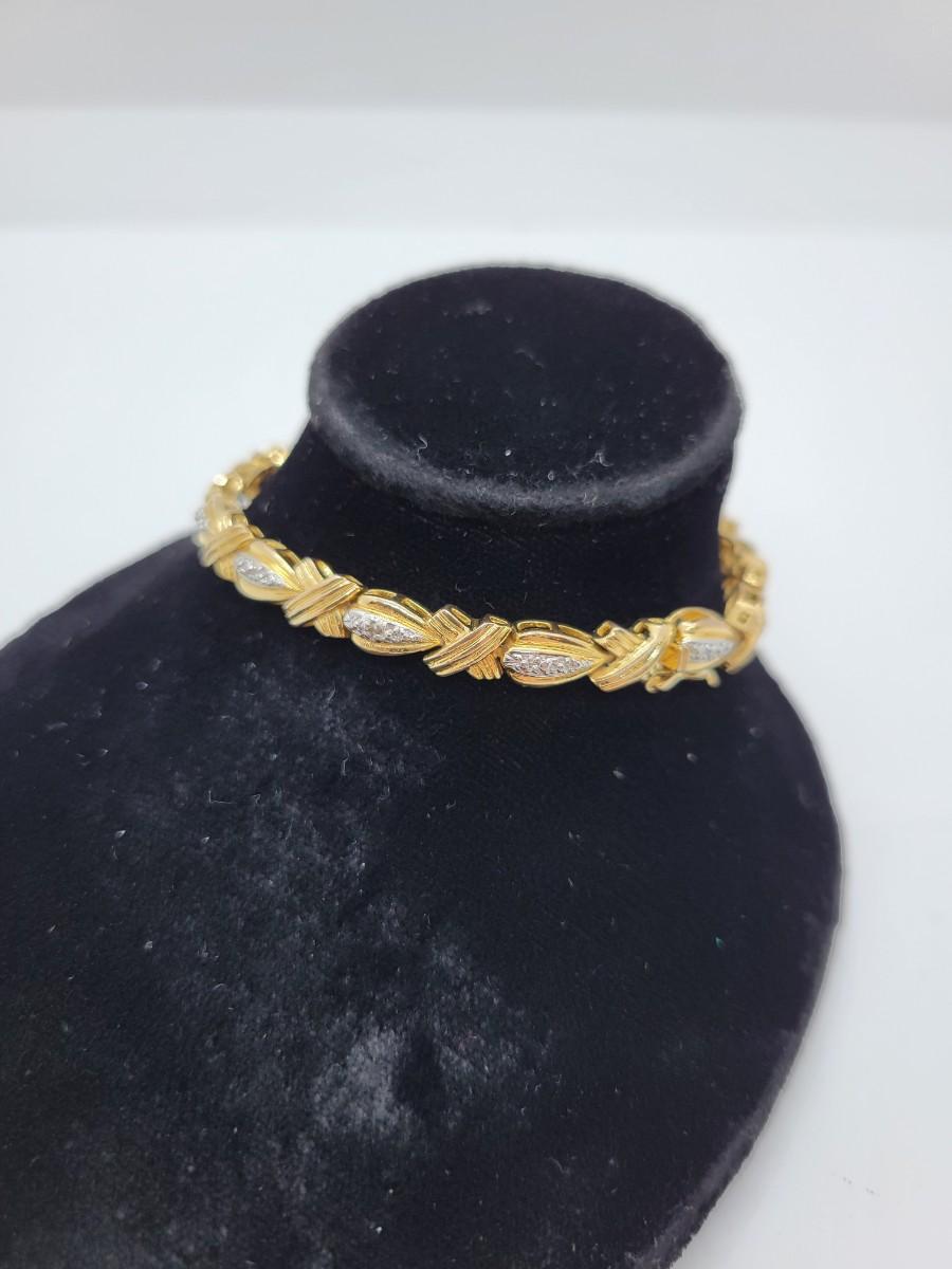 925 China Gold Vermeil bracelet with a few diamond chips 7.25"L 13.3g