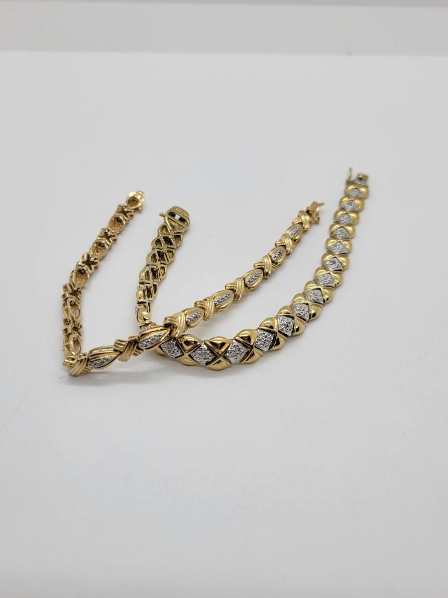 LOT31: 2 Gold Vermeil 925 Diamond Chip Bracelets