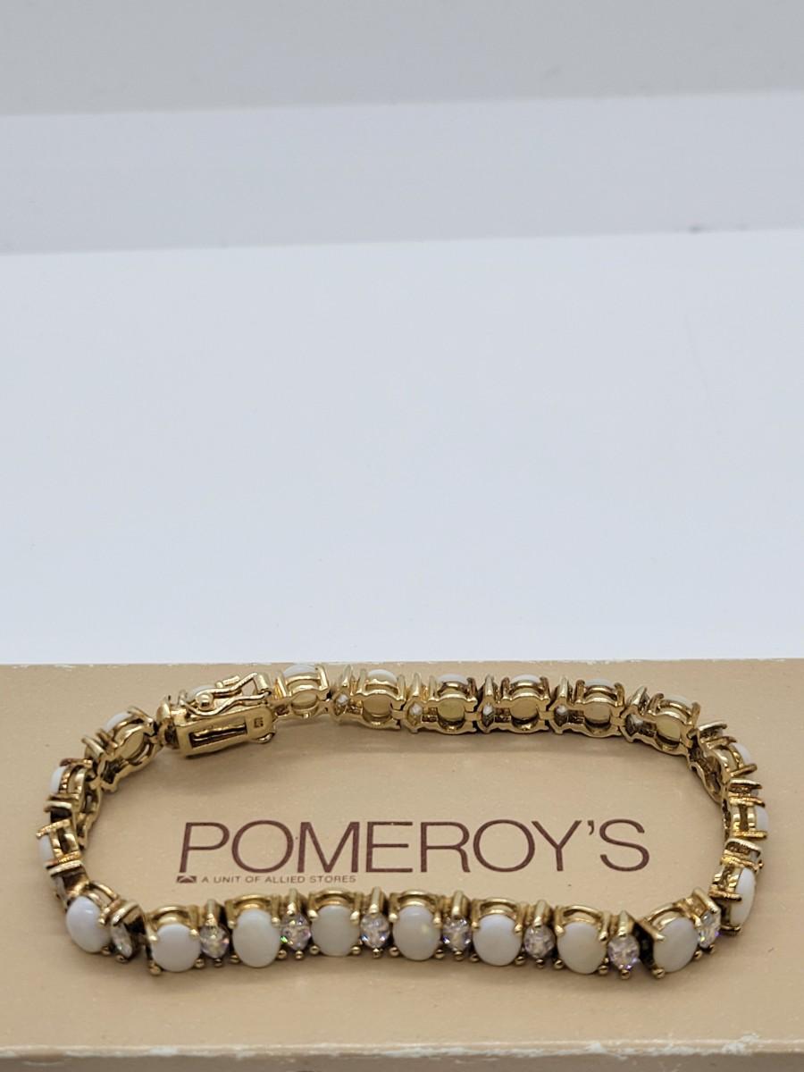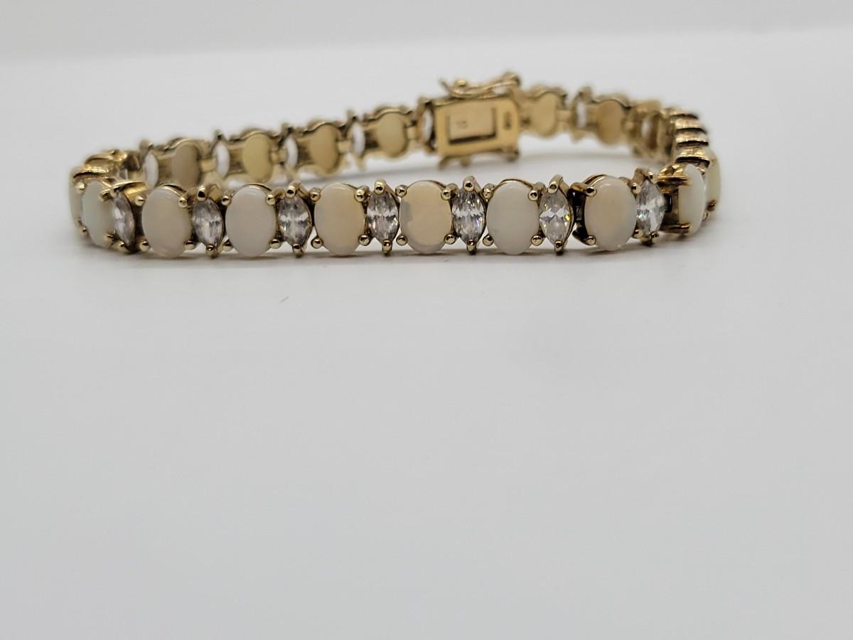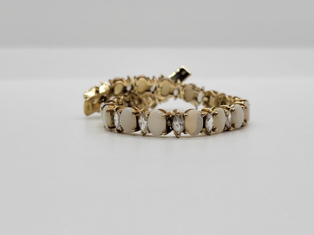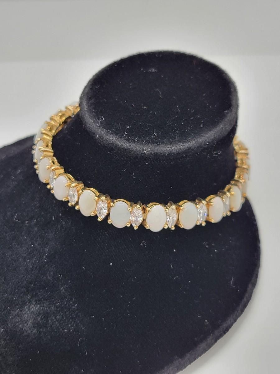 LOT37: Vintage 925CL gold vermeil 7"L Bracelet Genuine Opals & Marquis Cut C2's