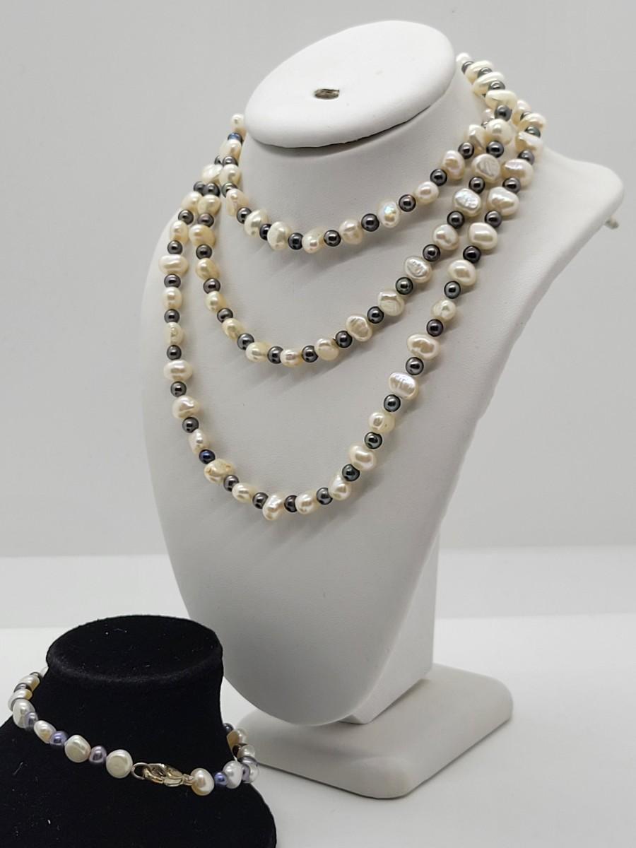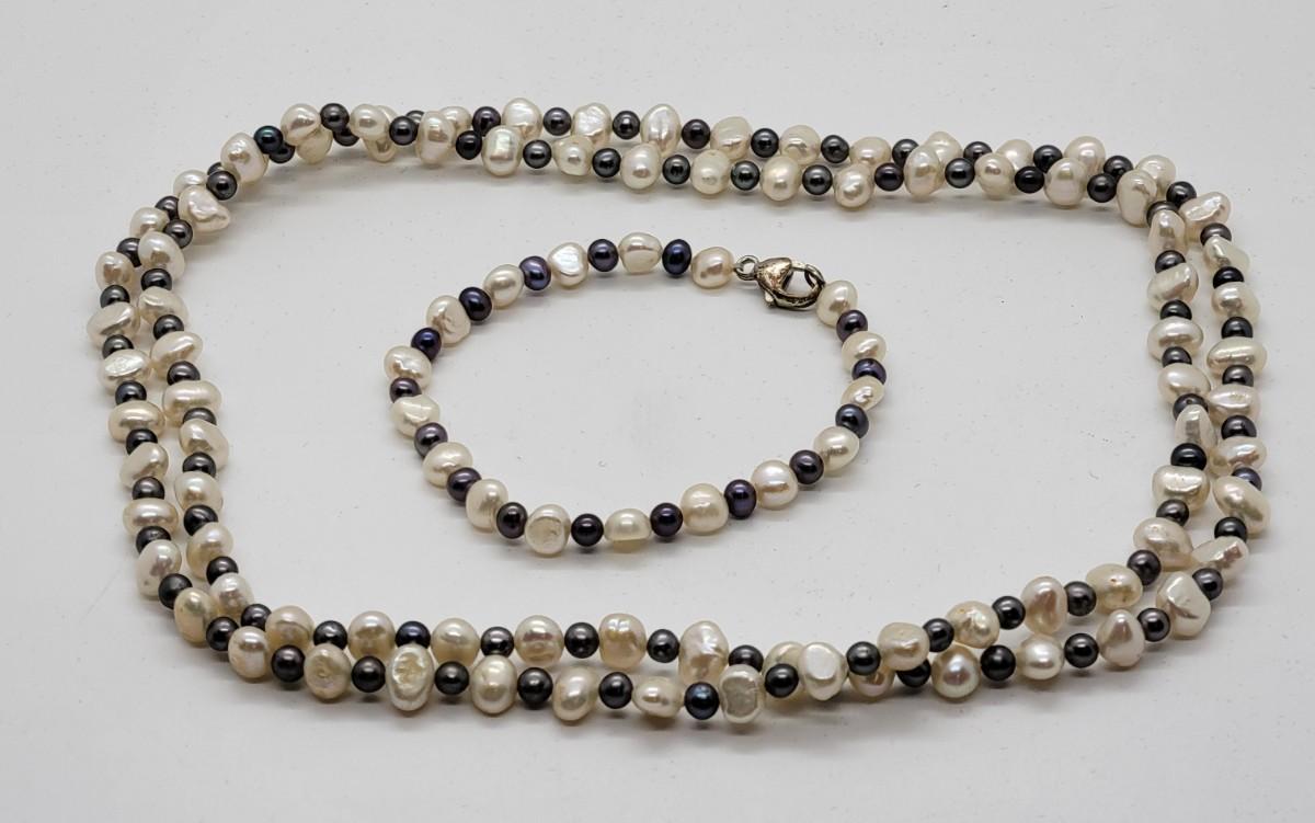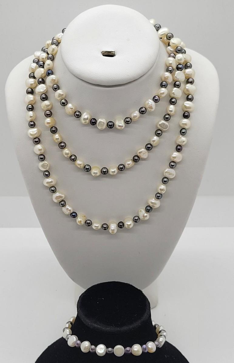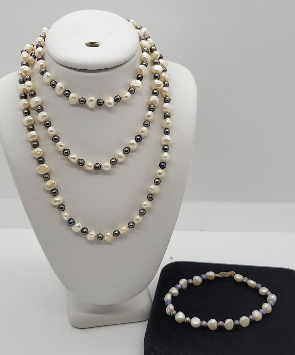 LOT44: 925 Honora White Cultured & Fresh Water Pearl Necklace (35"L) & Bracelet (7.25"L)