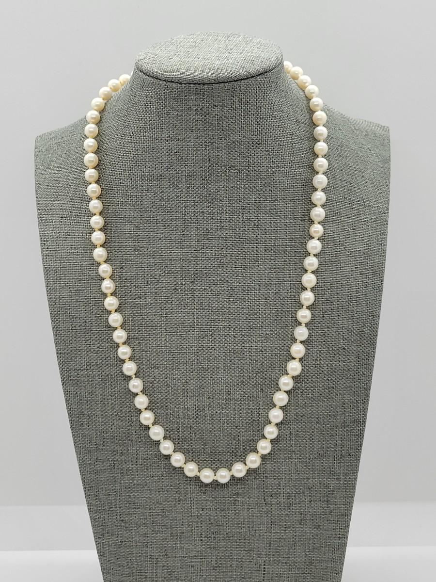 LOT54: 14K Gold Clasp Cultured Pearl 19.5" L Necklace