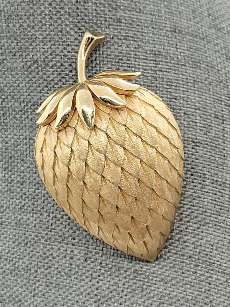 LOT62: Vintage 1962 Crown Trifari 3D Strawberry Brooch