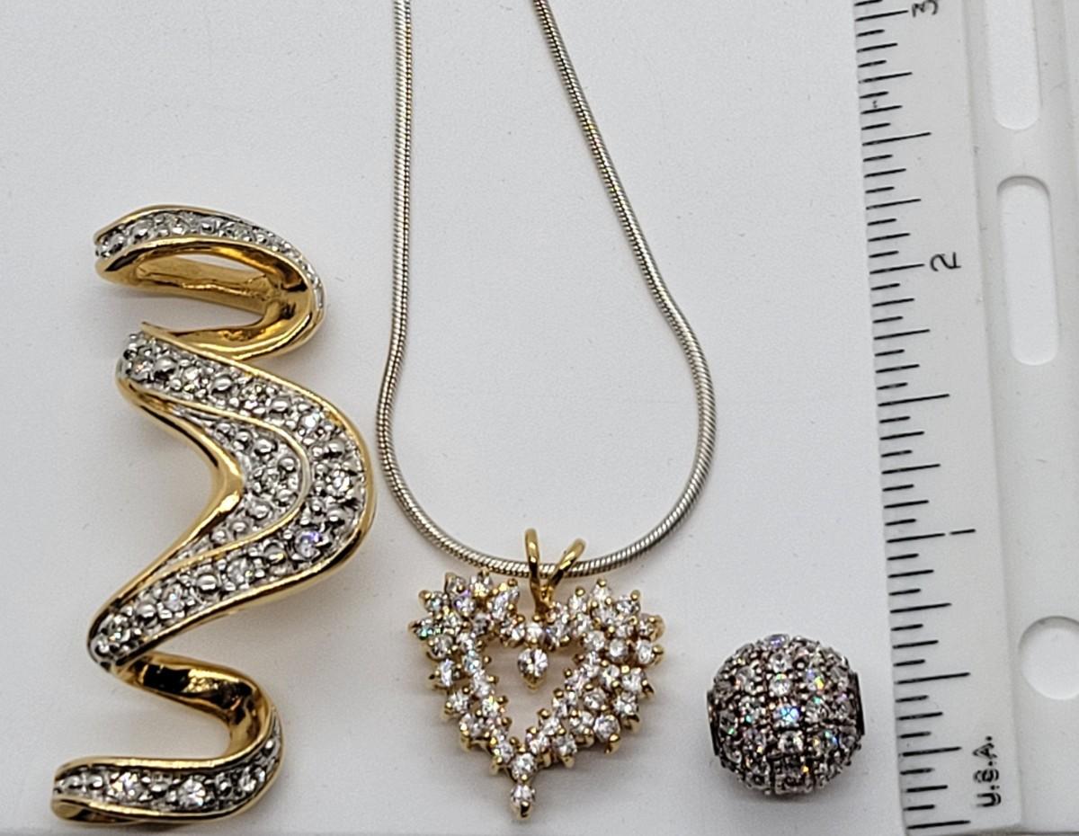 LOT64: Sterling 925 Diamonique 20"L Chain CZ pendant with 2 bonus Cz pendants