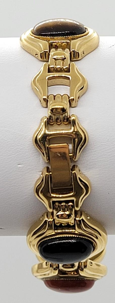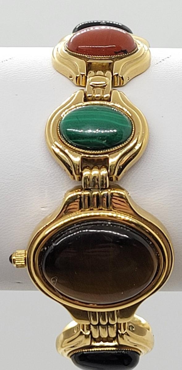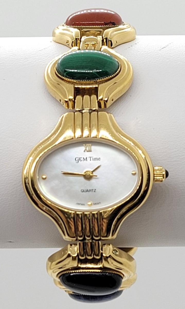 LOT66: Tiger's Eye, Carnelian, Malachite & More Gem Time Gem Stone Watch With Mother of Pearl Face