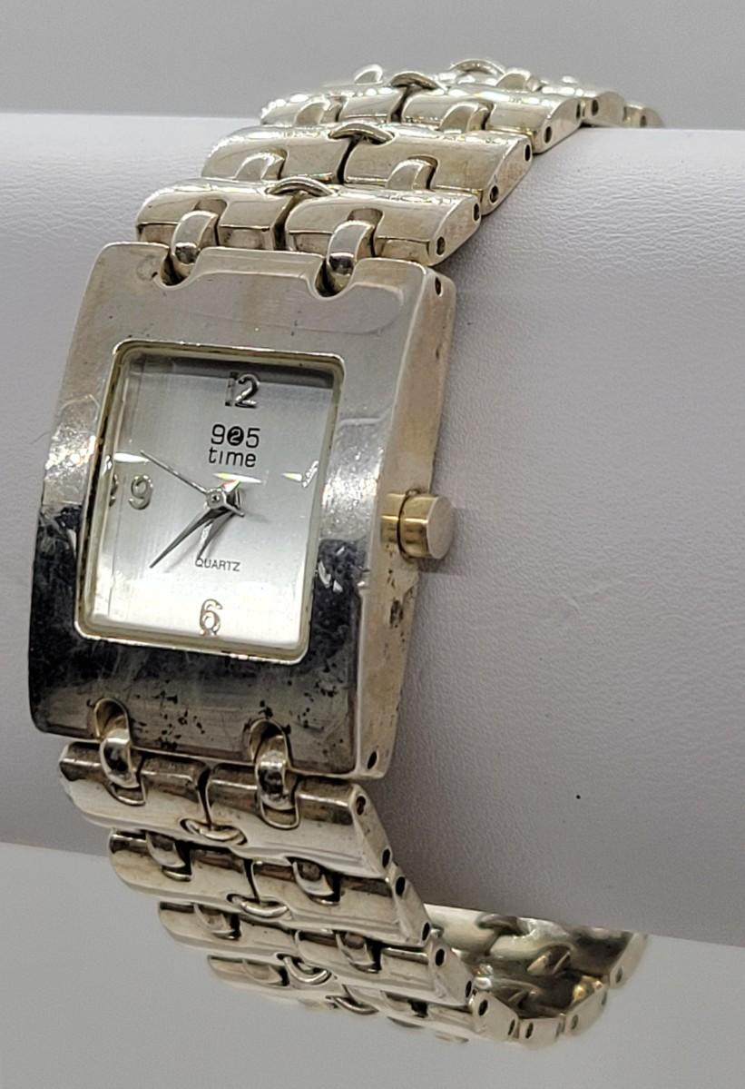 LOT72: Sterling Silver Watch Case & Band - Closure is stainless steel