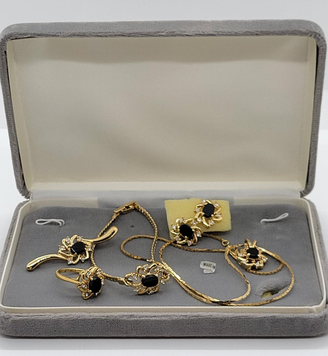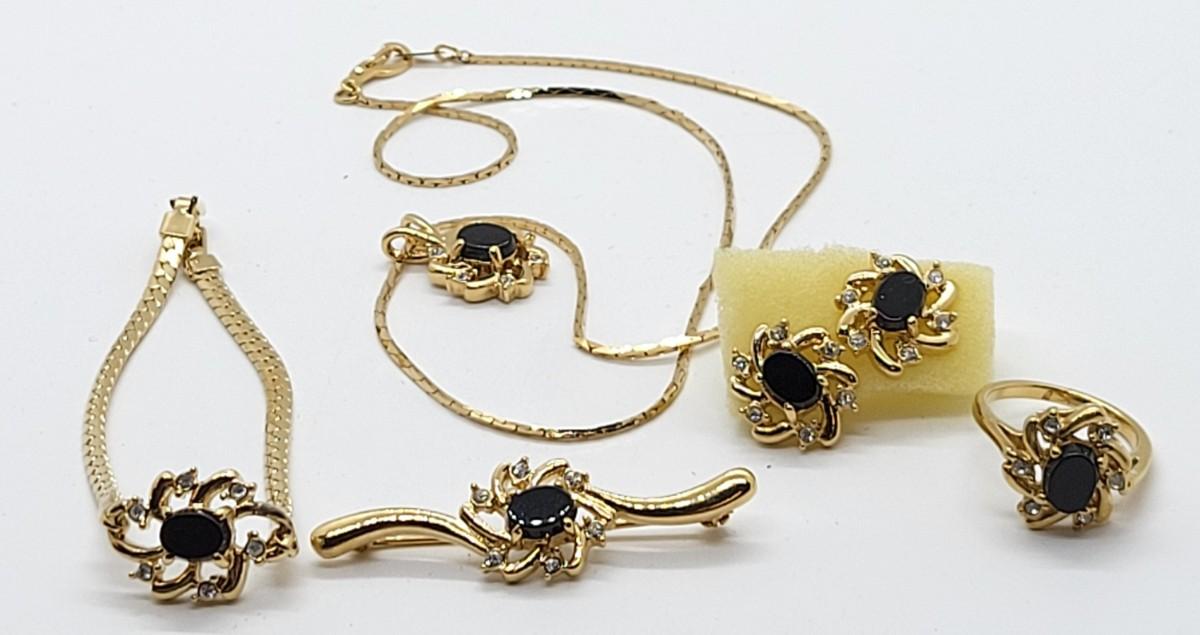 LOT79: 6PC goldtone  Set - 18" Necklace - 7" Bracelet - Ring - size 7.5-8