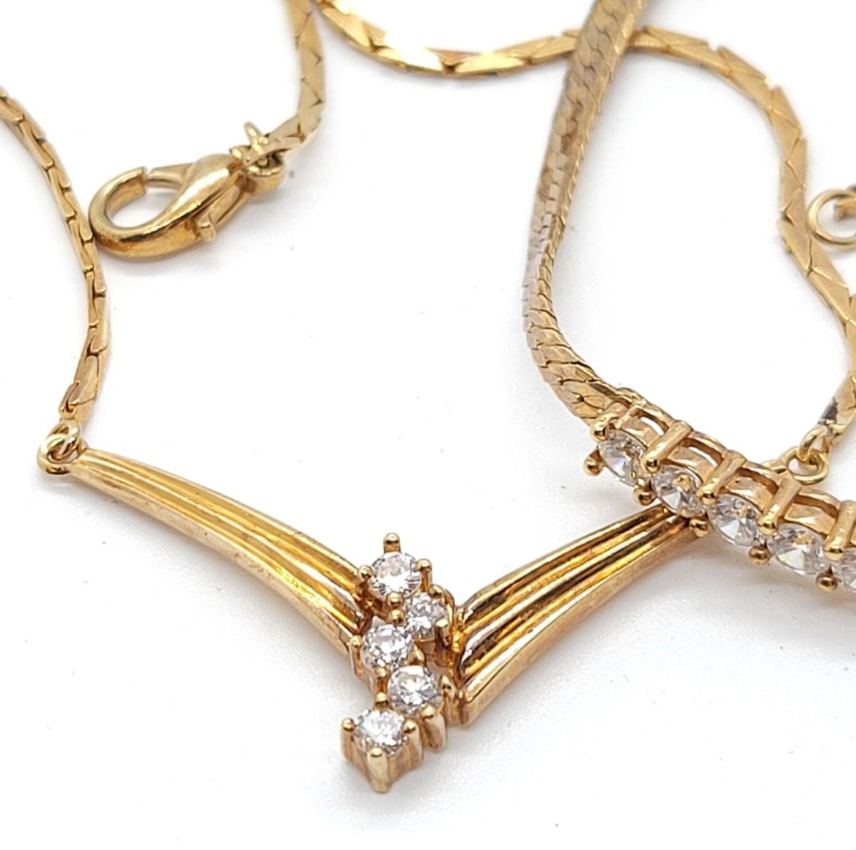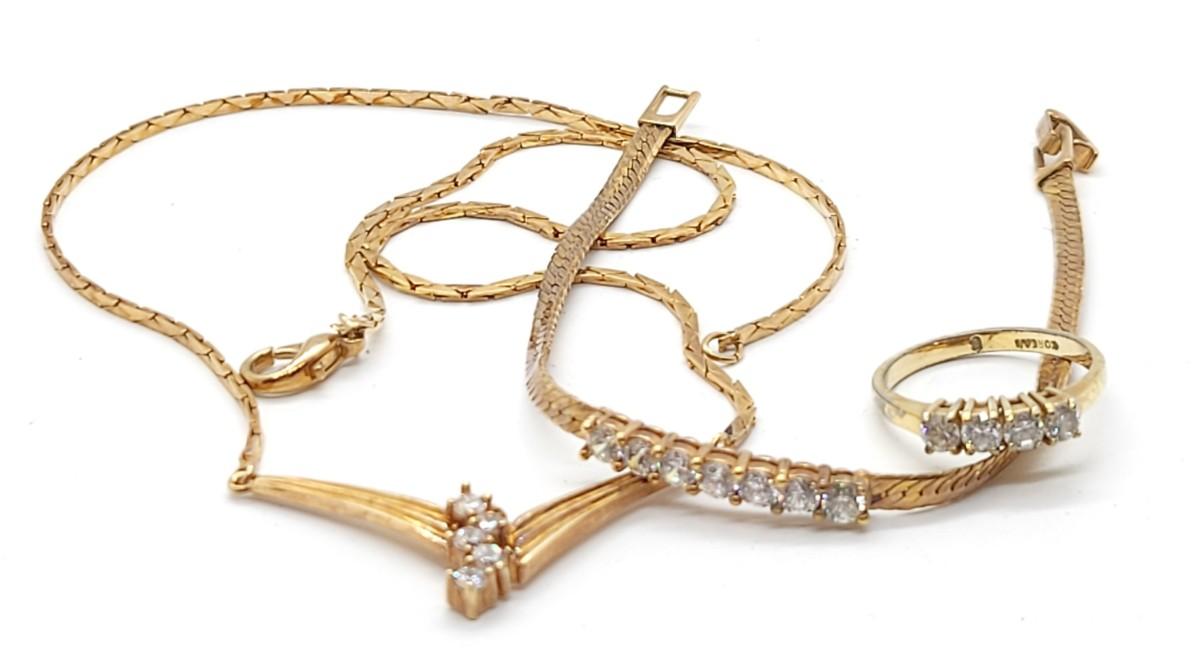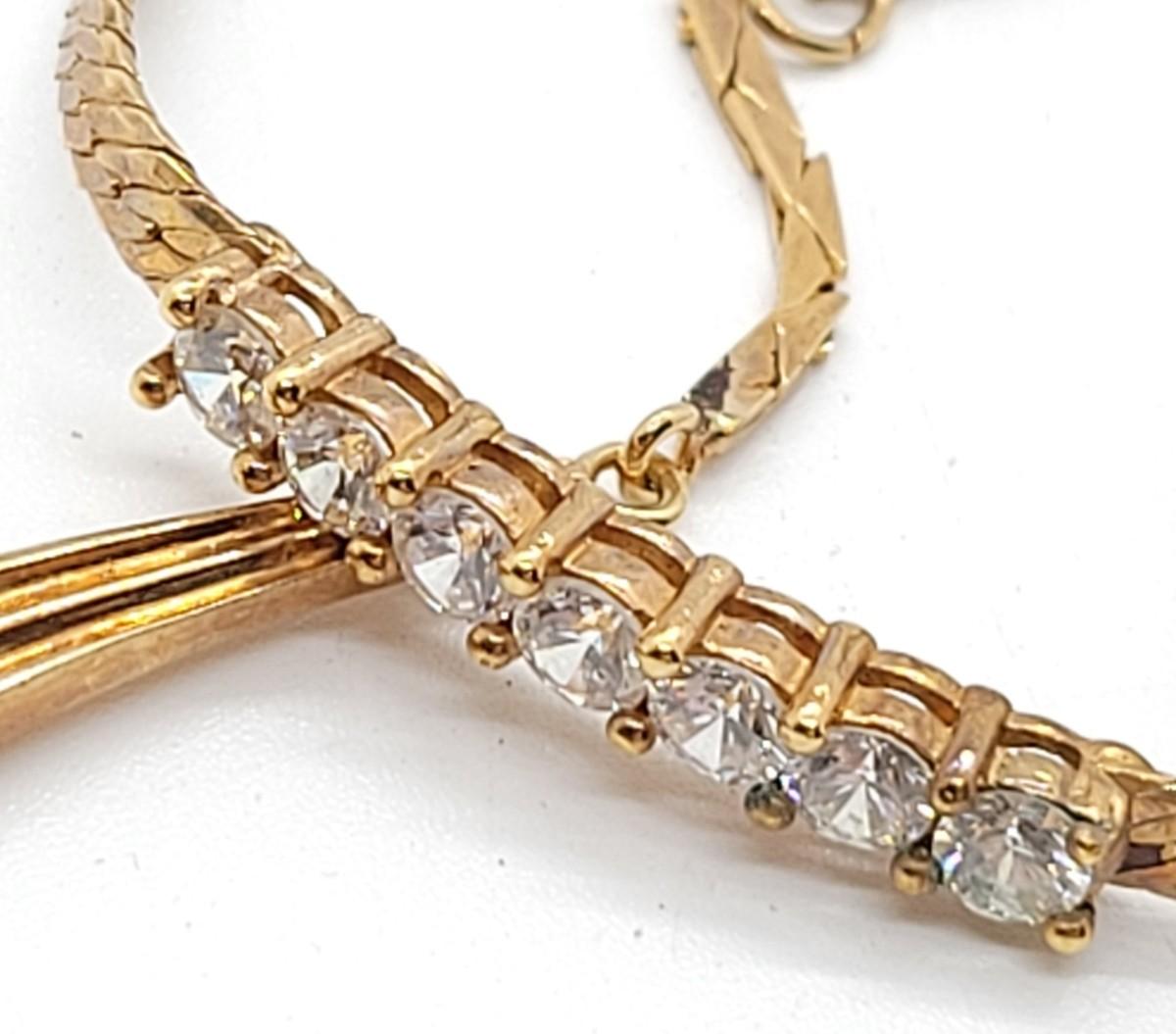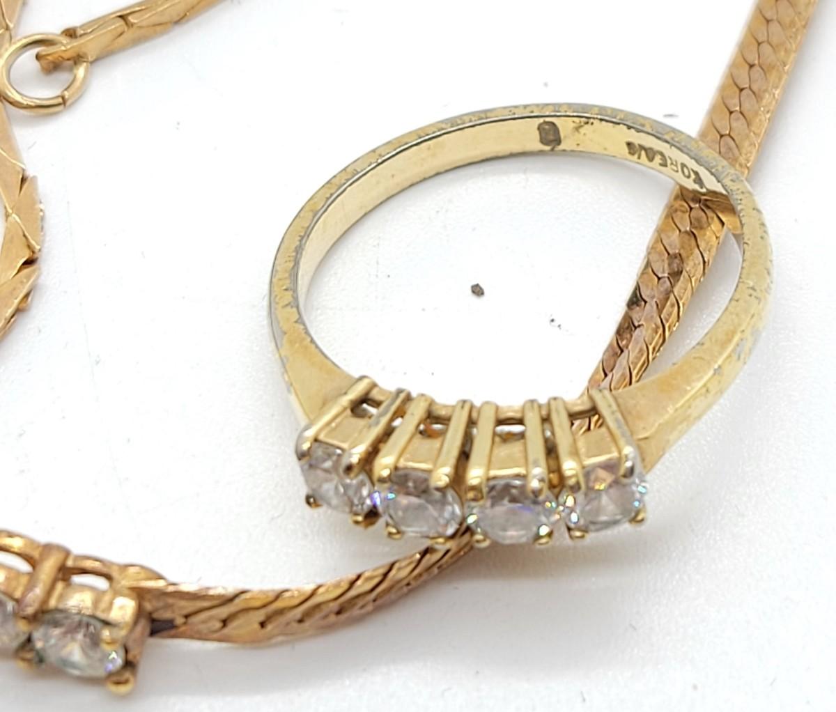 LOT85: Vintage Costume Set - Goldtone cubic Zirconia 7"L Bracelet, 18"L Necklace, Size 8 Ring