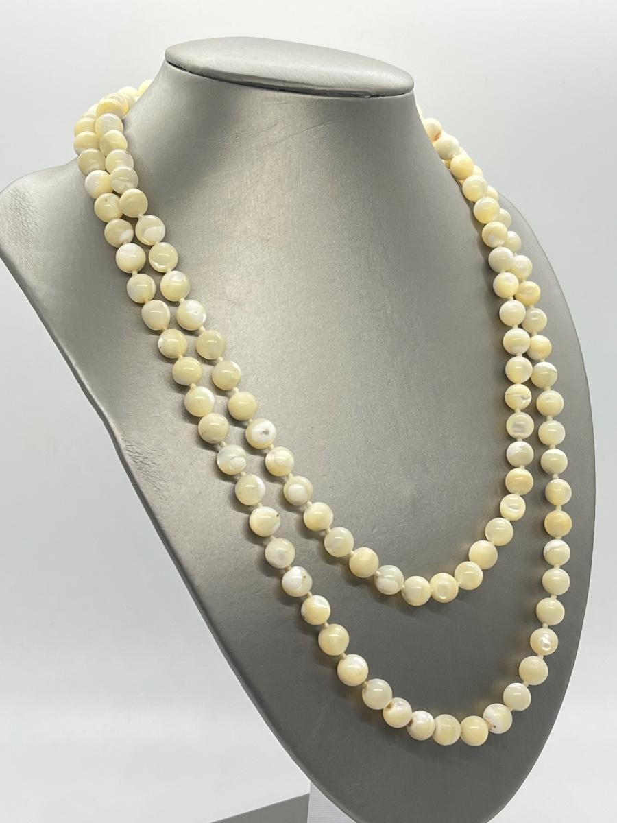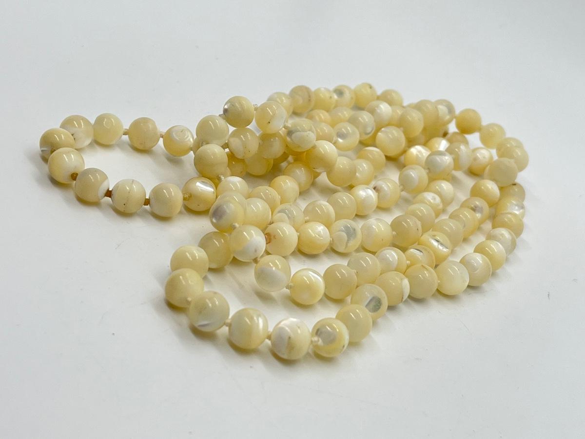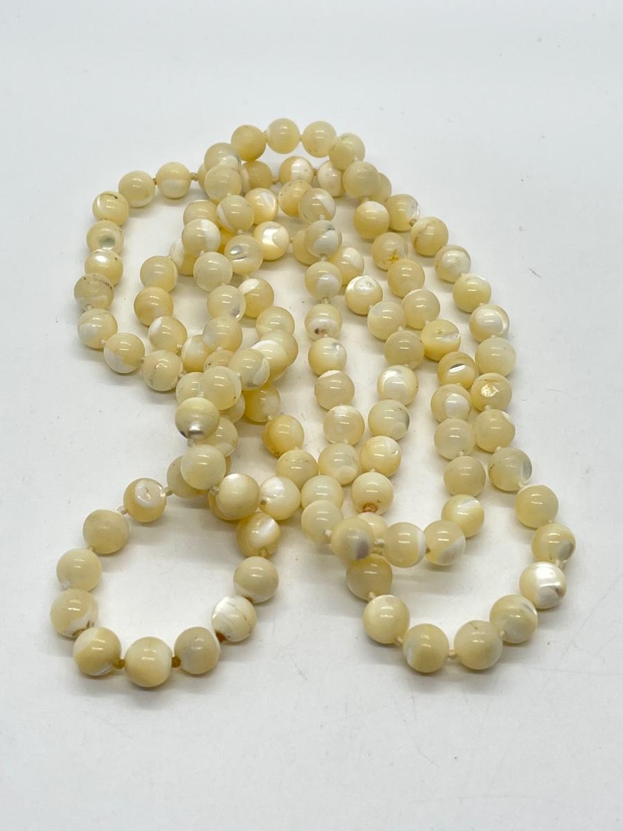 LOT 100: Vintage Mother of Pearl Bead Necklace 46"L!