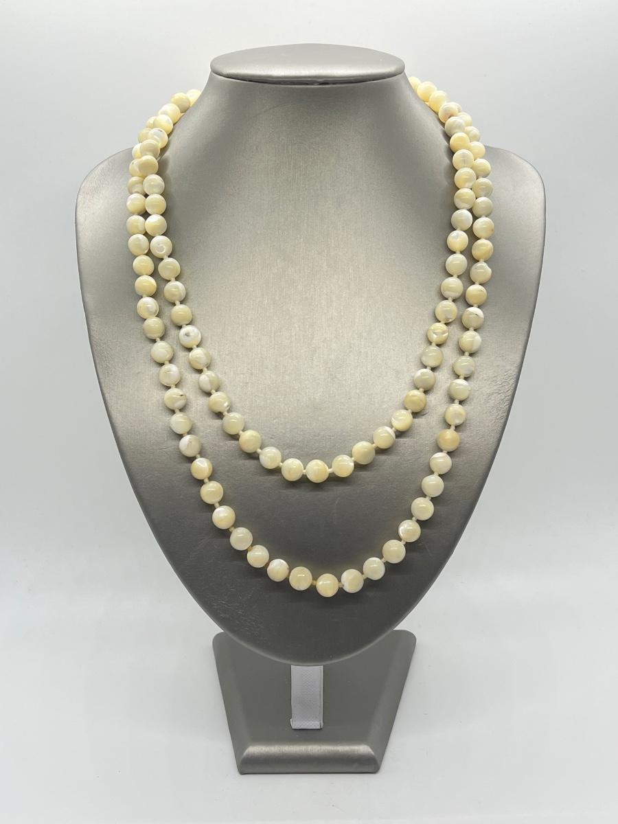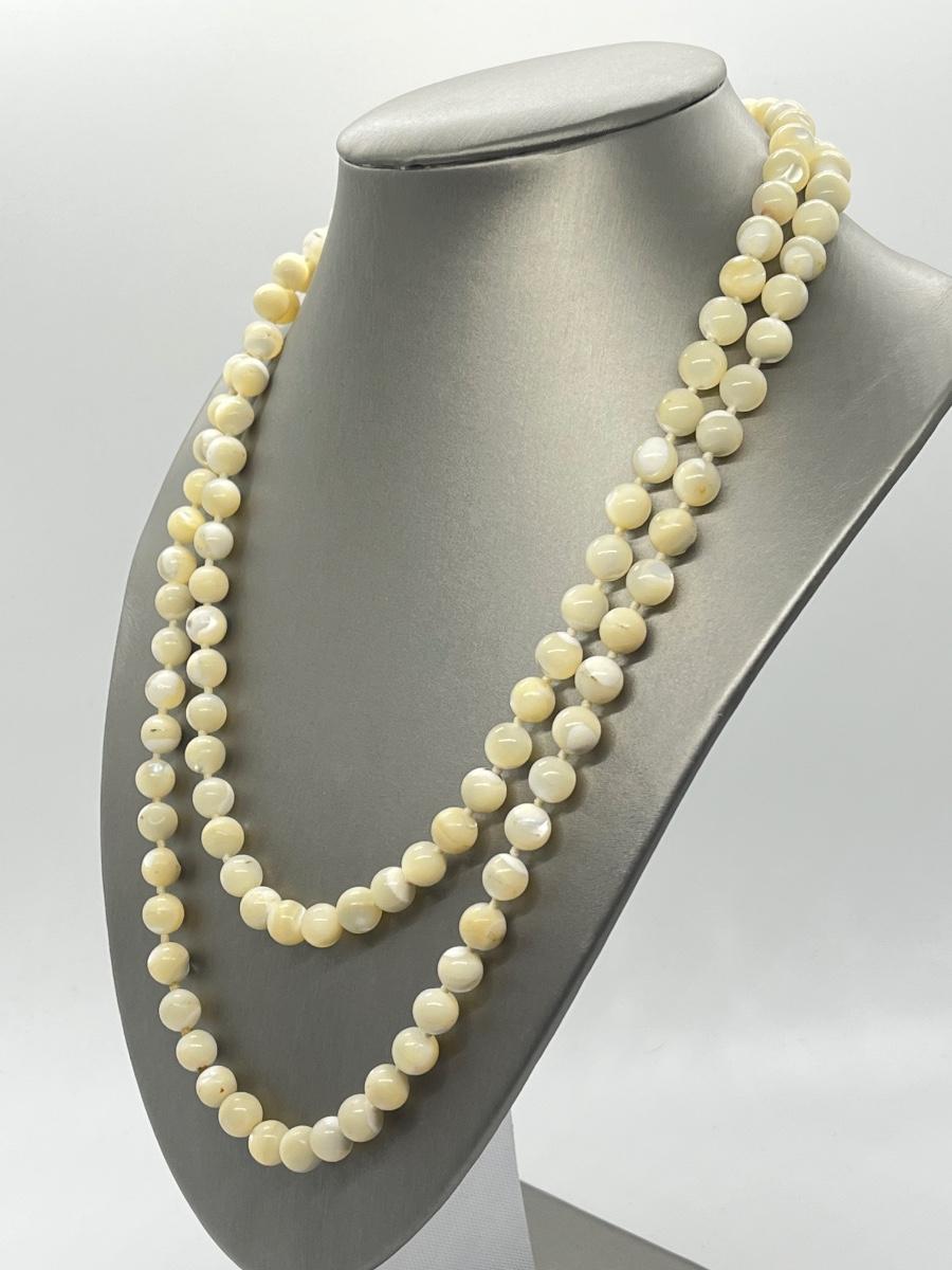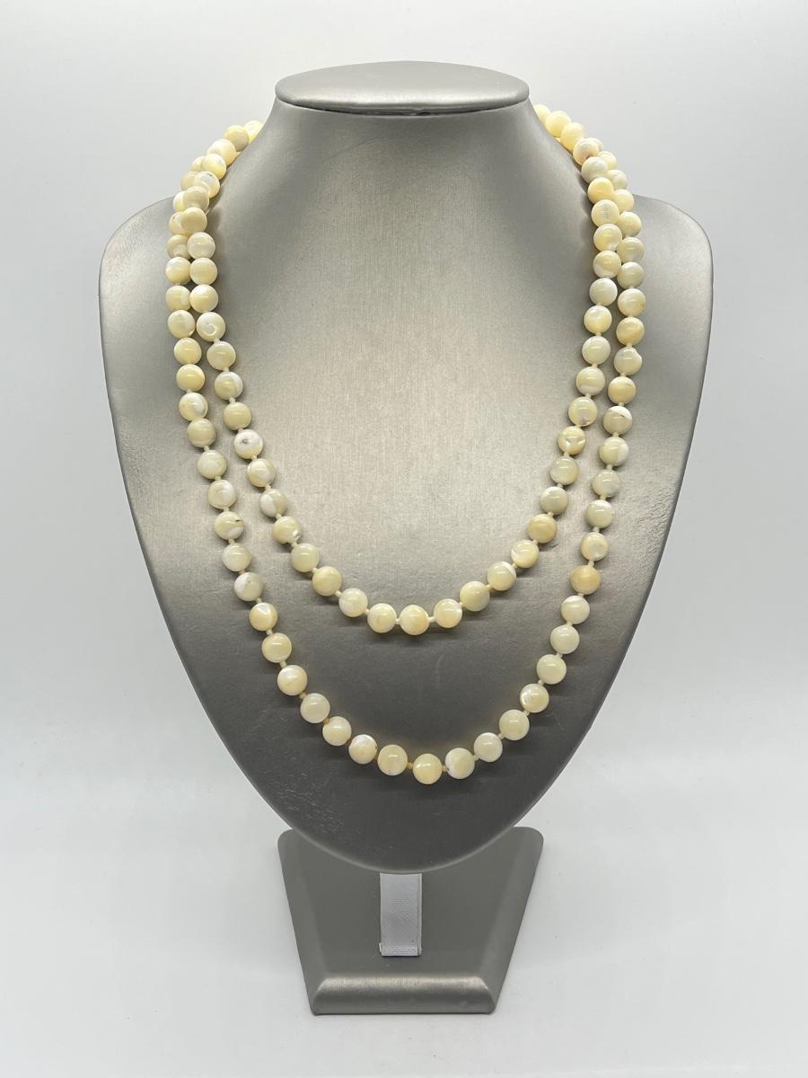 LOT 100: Vintage Mother of Pearl Bead Necklace 46"L!