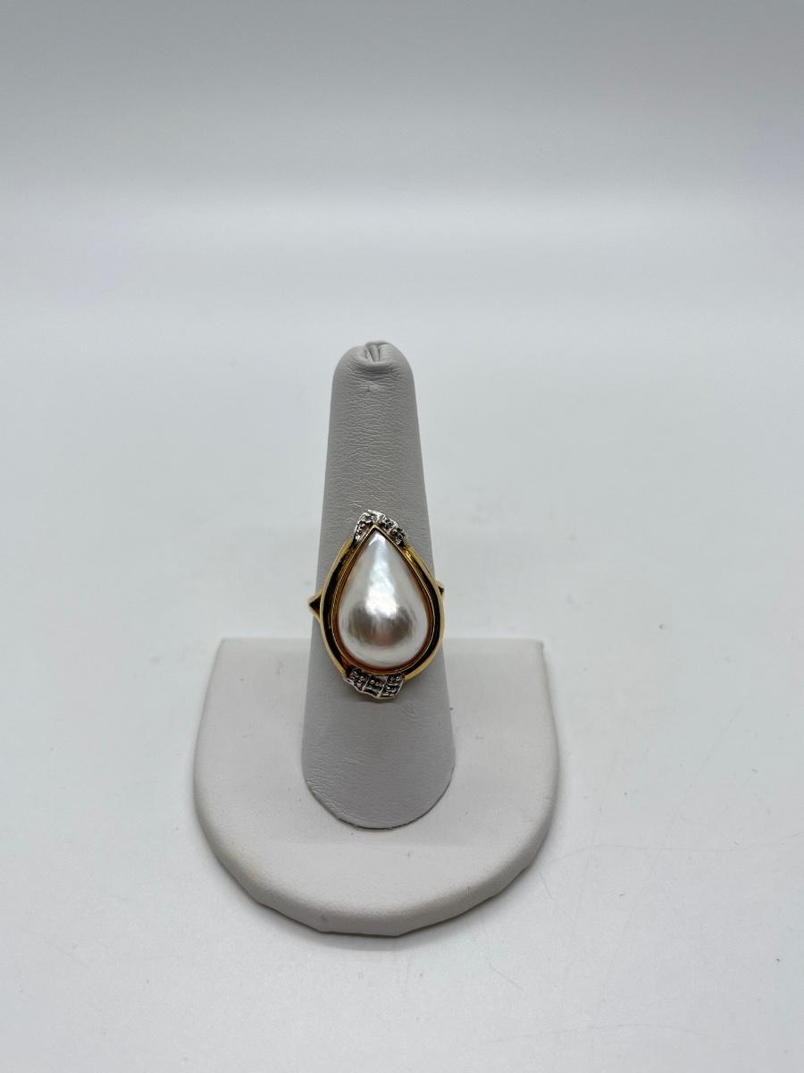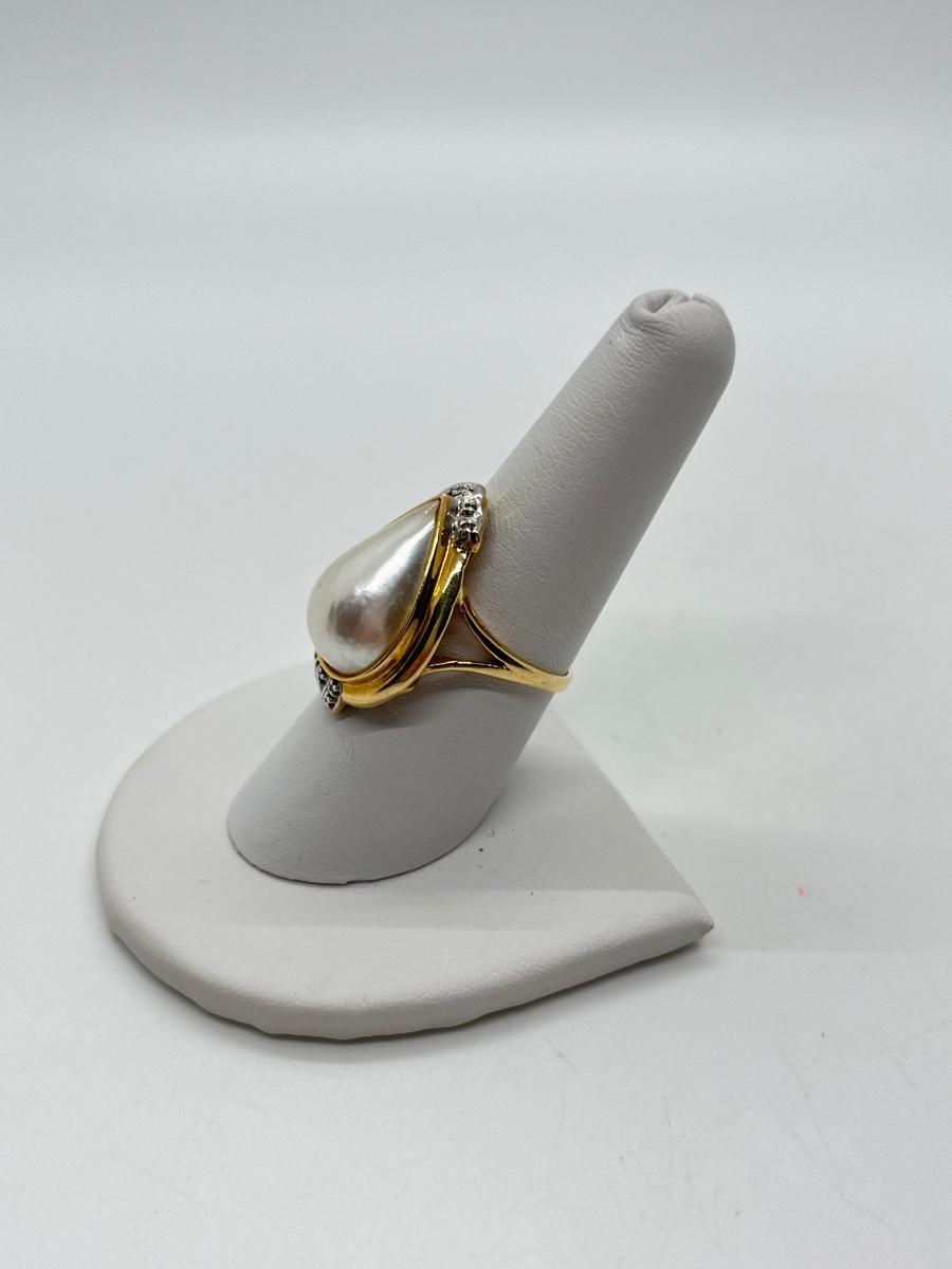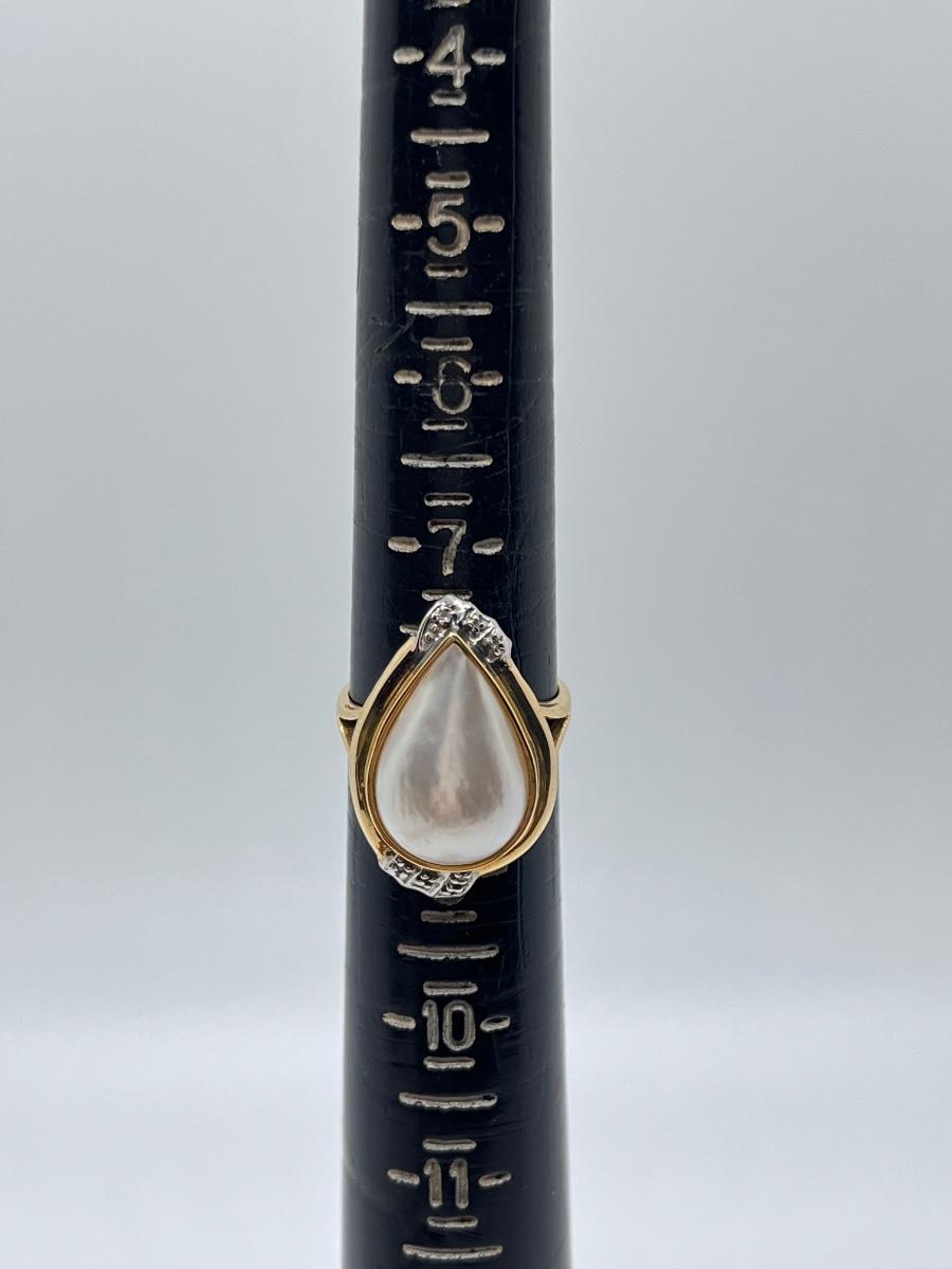 LOT 102: 10K Gold Teardrop Pearl Size 8 Ring - 5.22 gtw