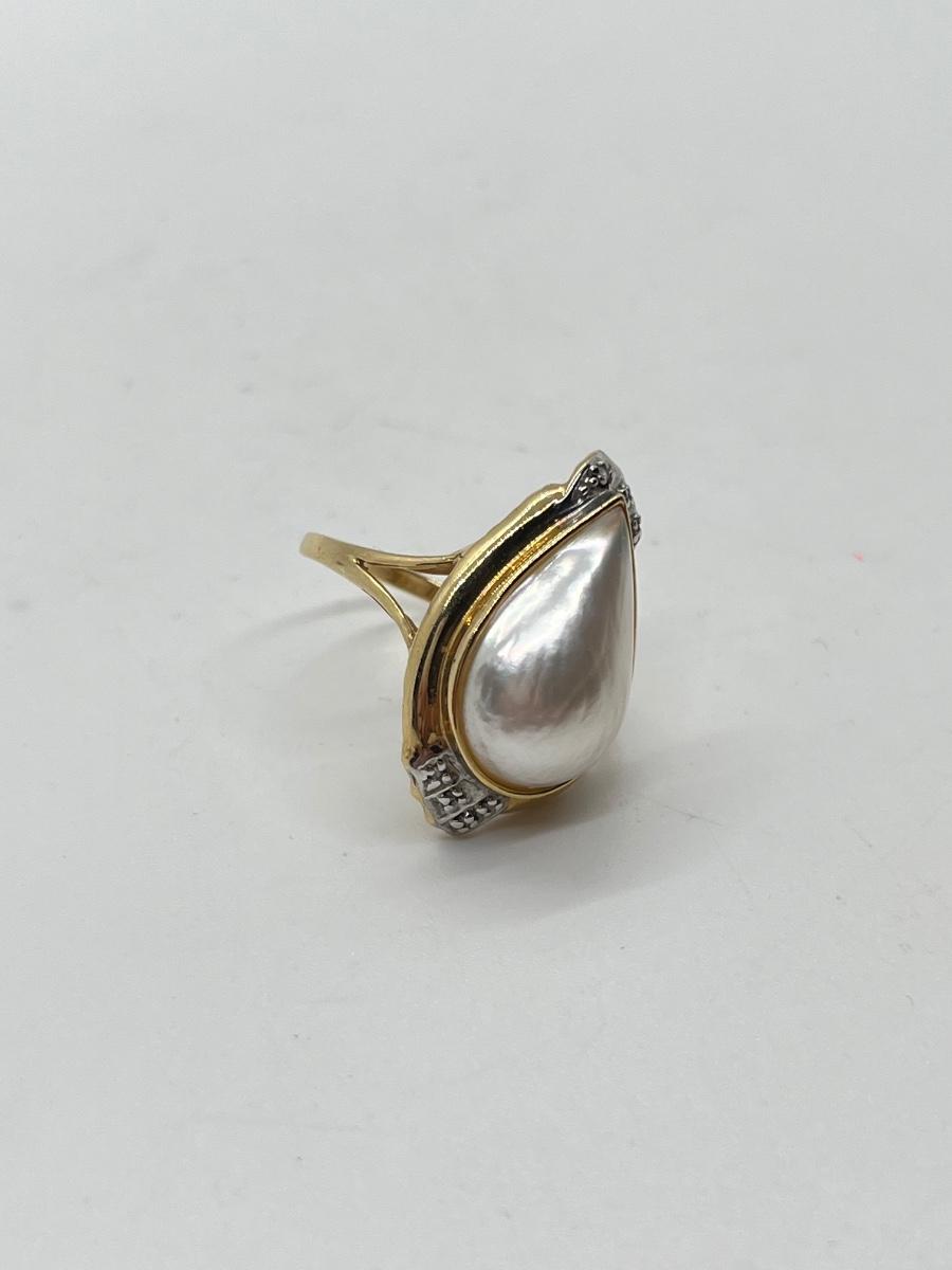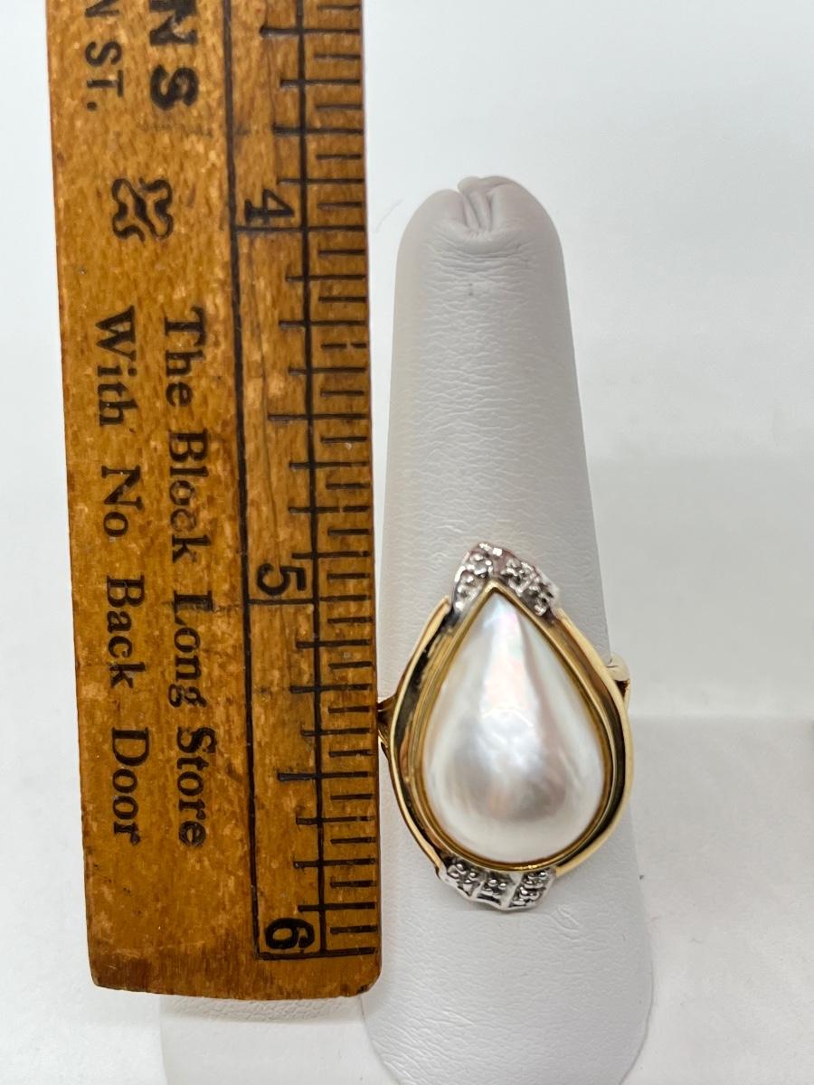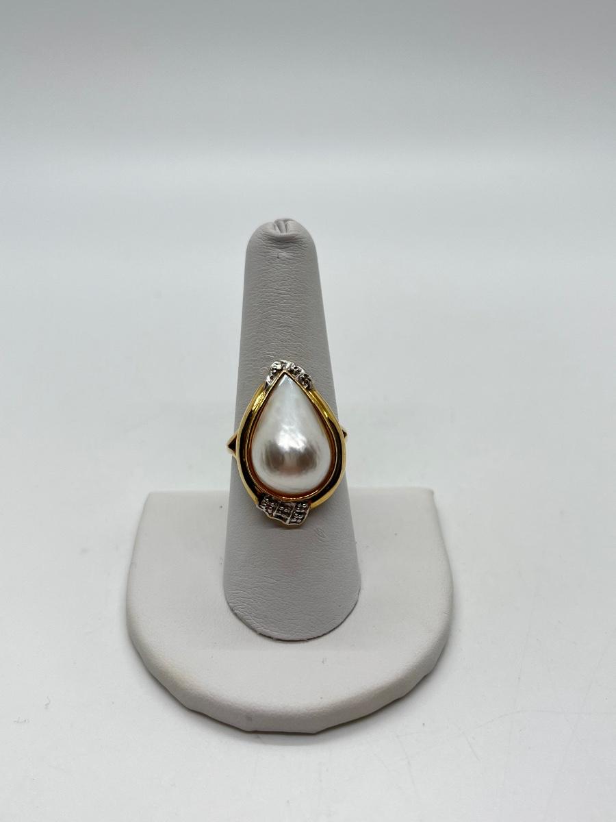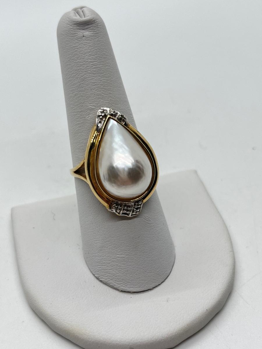 LOT 102: 10K Gold Teardrop Pearl Size 8 Ring - 5.22 gtw