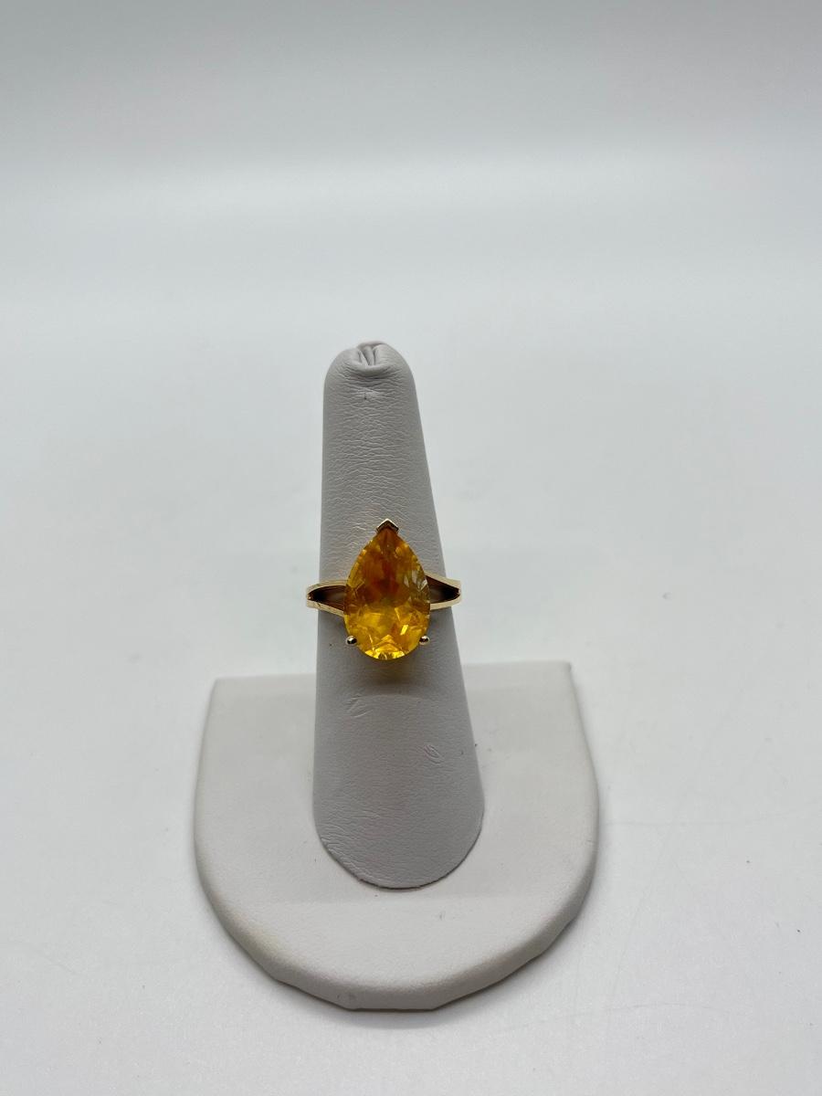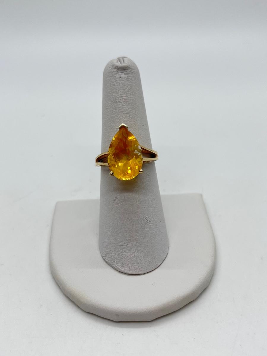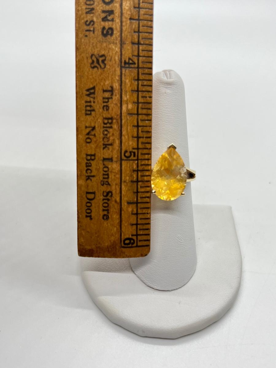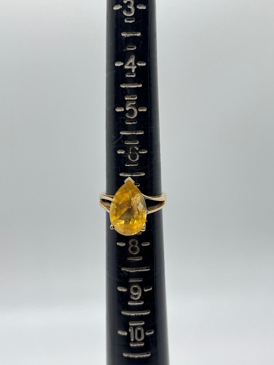 LOT 108: 10K Gold Pear Citrine Size 7 Ring - 3.67 gtw