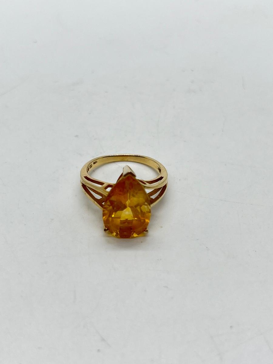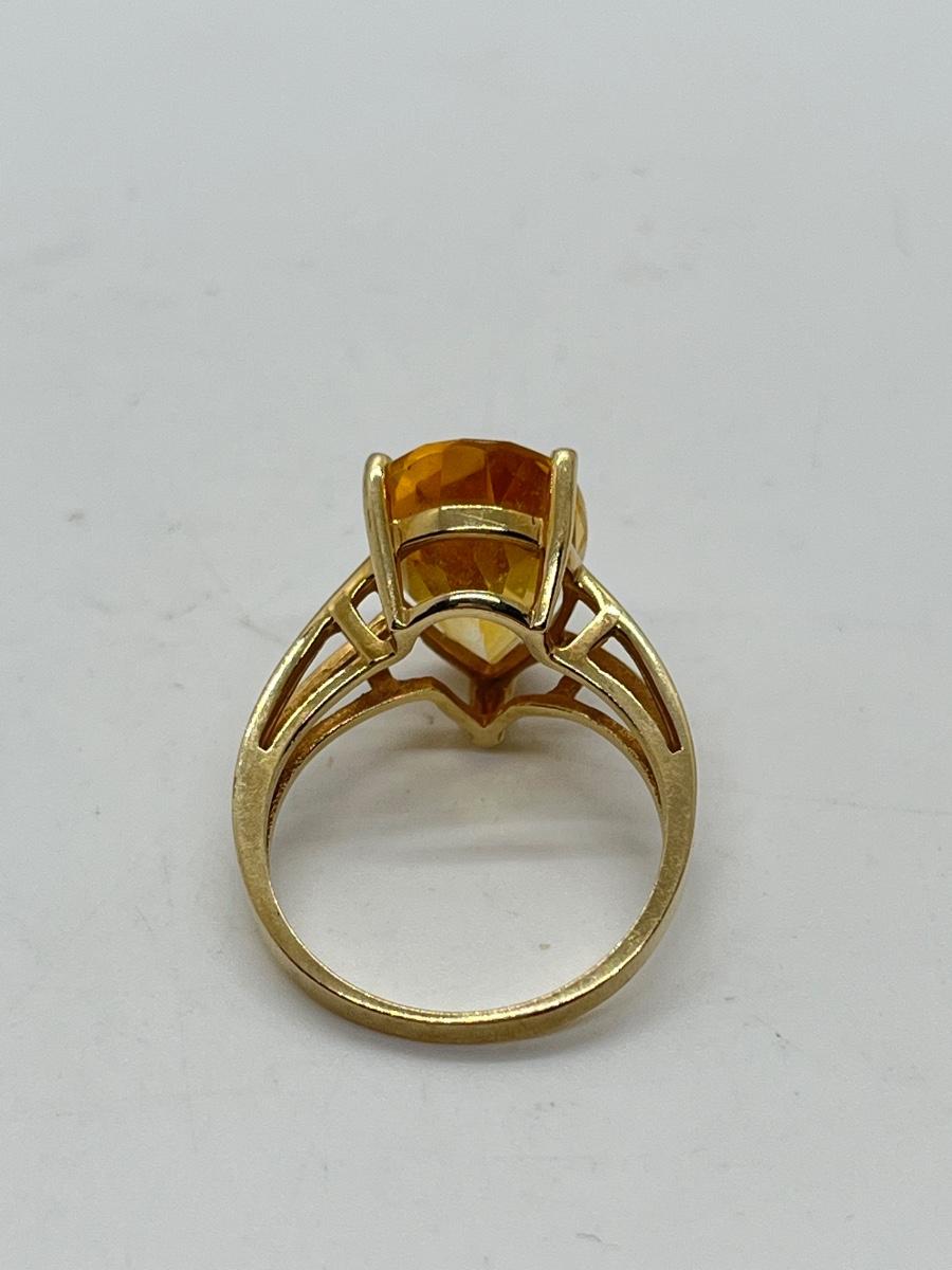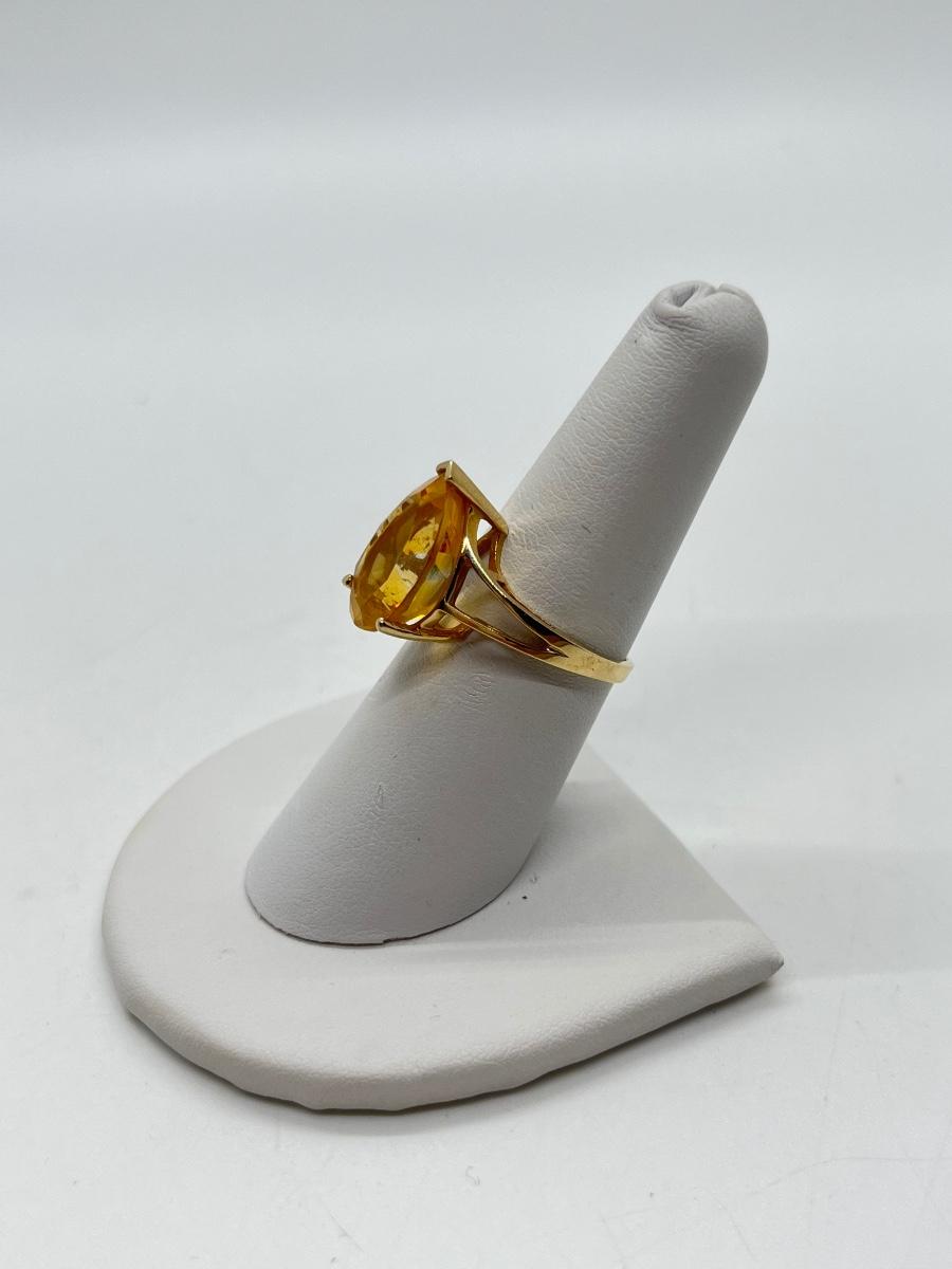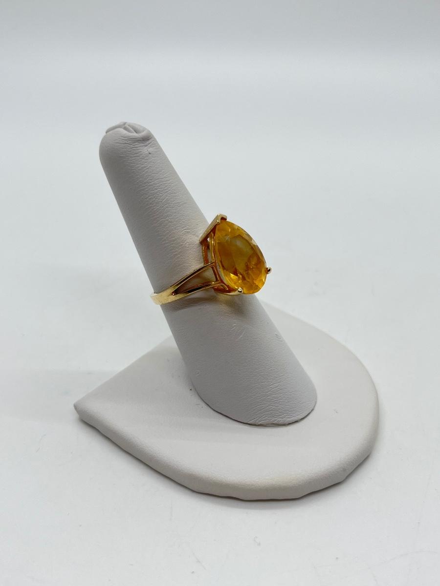 LOT 108: 10K Gold Pear Citrine Size 7 Ring - 3.67 gtw
