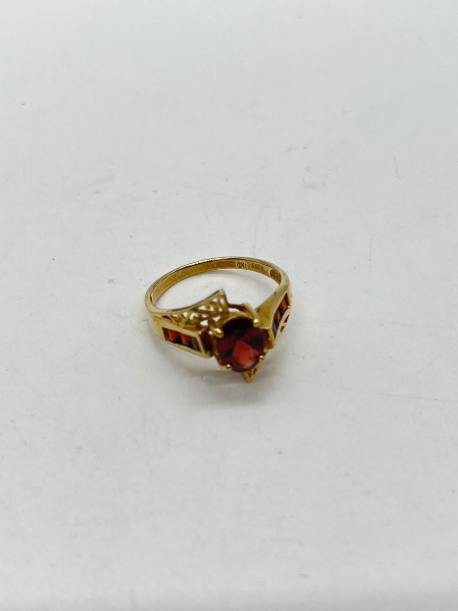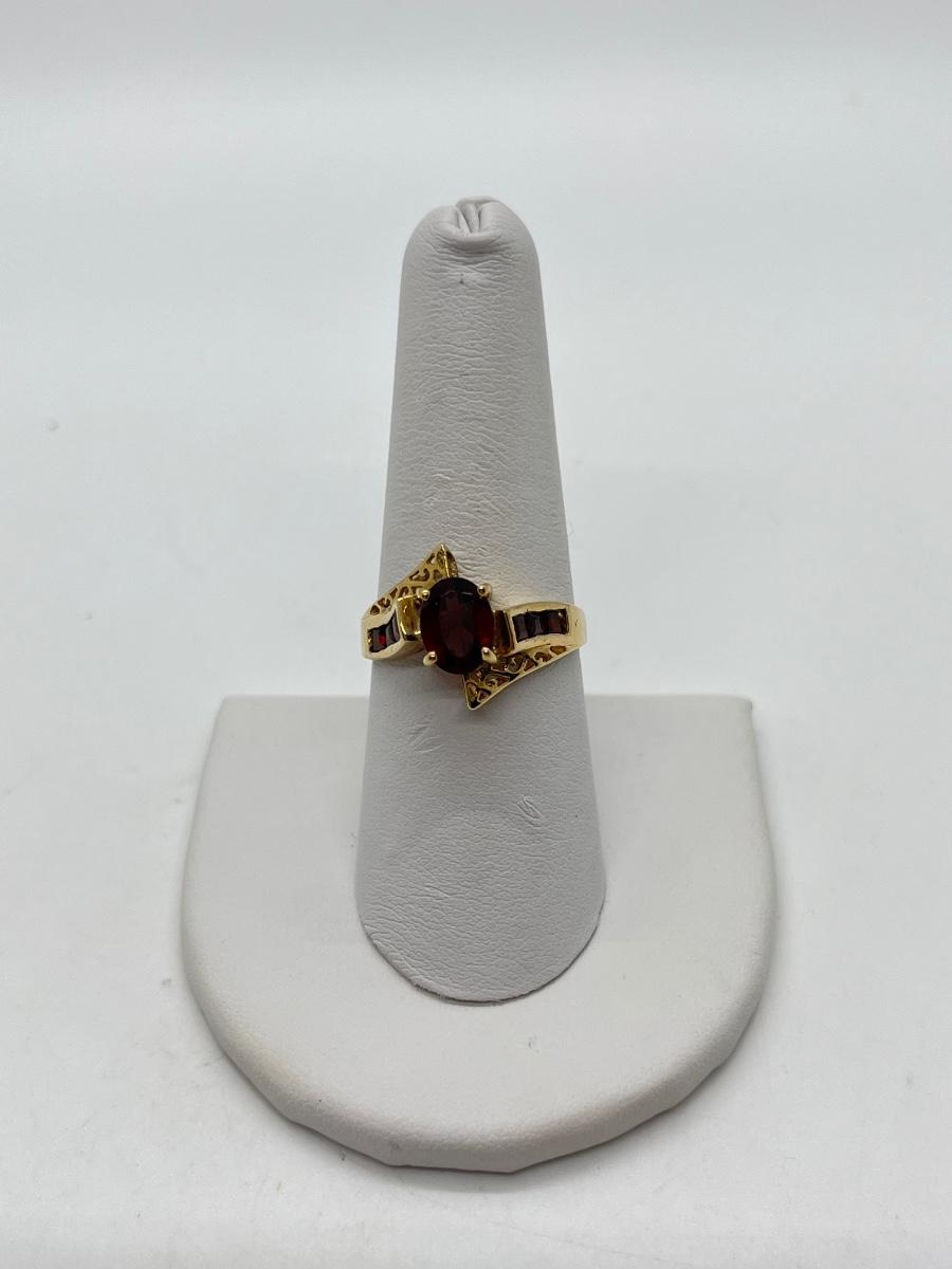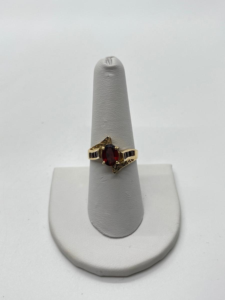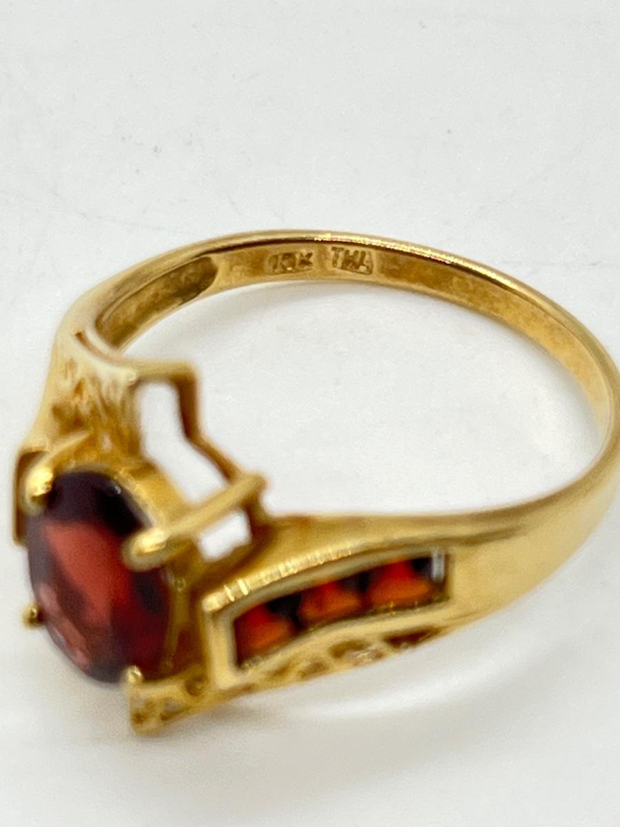 LOT 110: 10K Gold Marked "THL" Garnet Size 8 Ring - 2.8 gtw