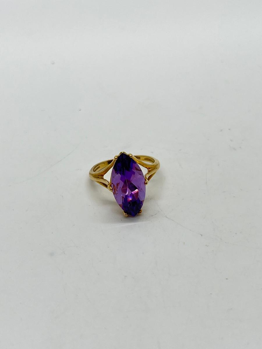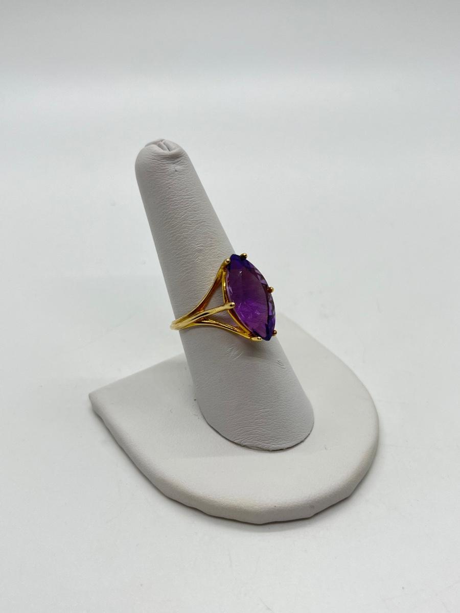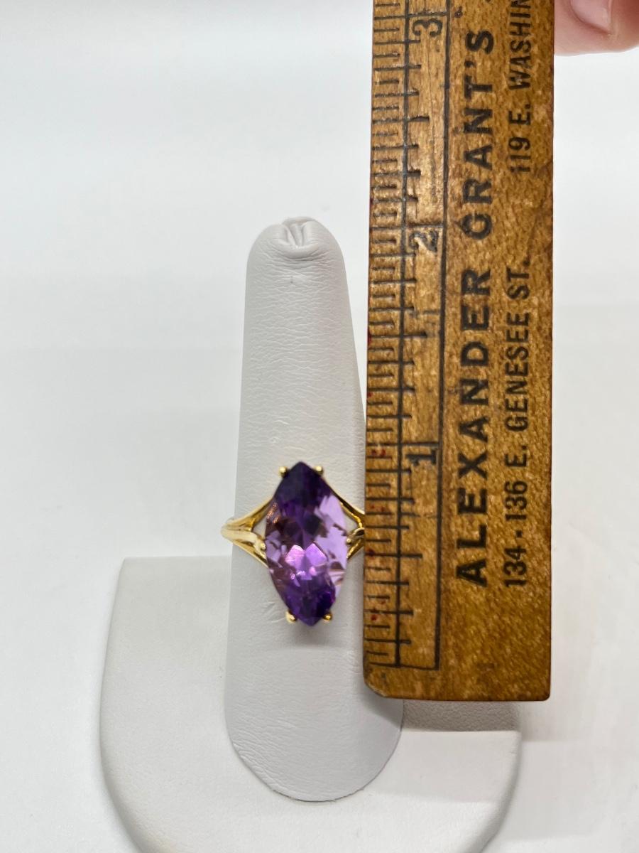 LOT 11 ; 33.82 g tw 10k Gold Marked "UTC" Amethyst Marquis Size 8 Ring