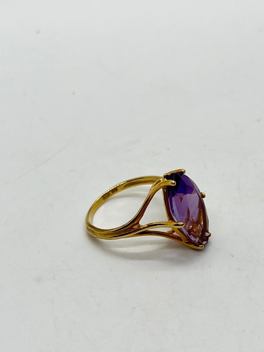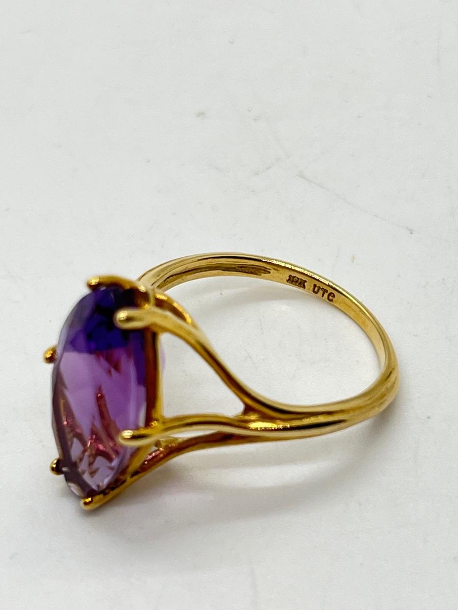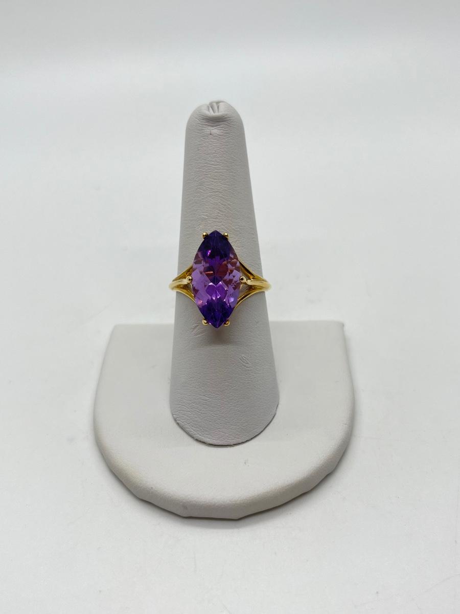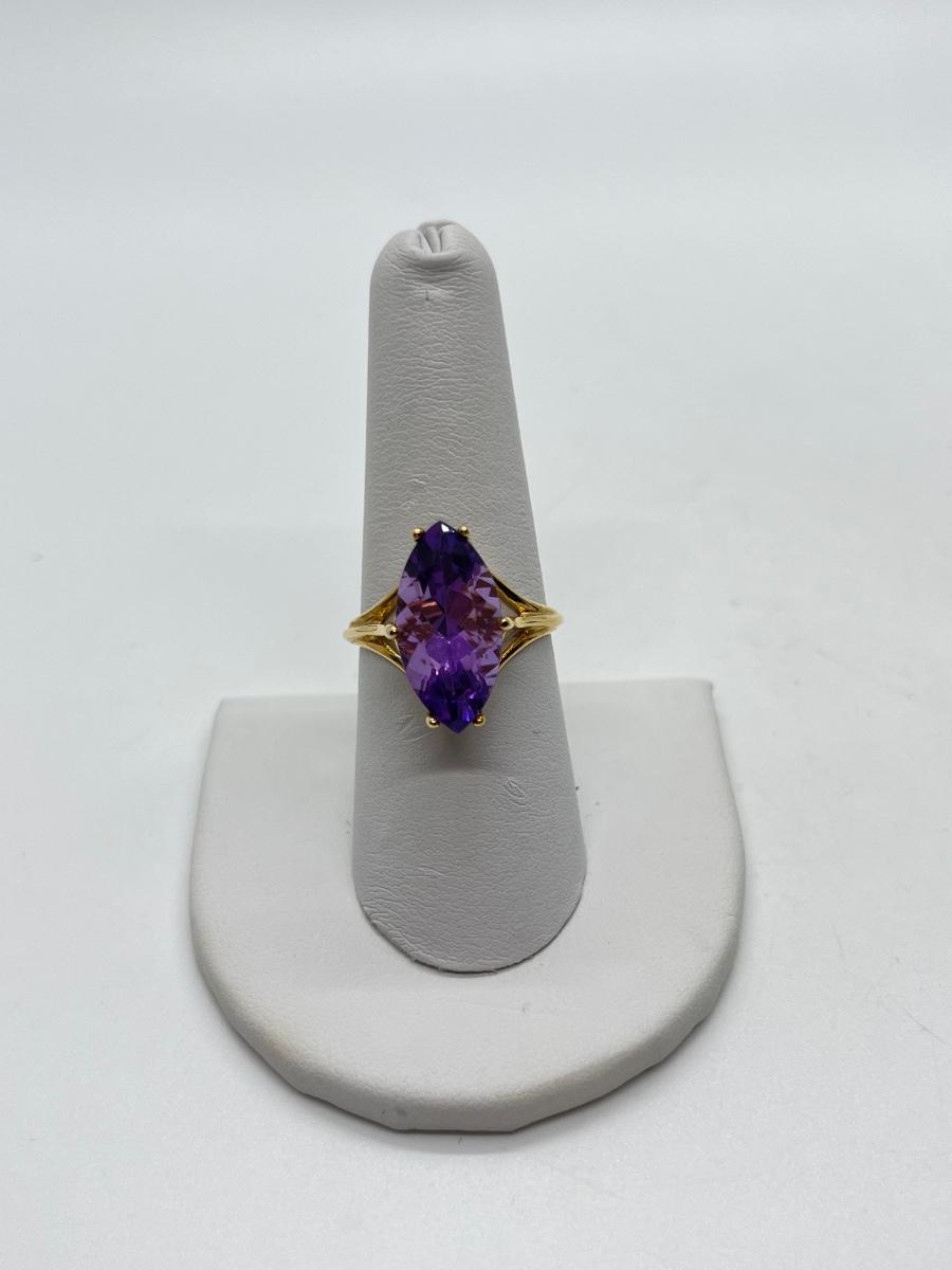LOT 11 ; 33.82 g tw 10k Gold Marked "UTC" Amethyst Marquis Size 8 Ring