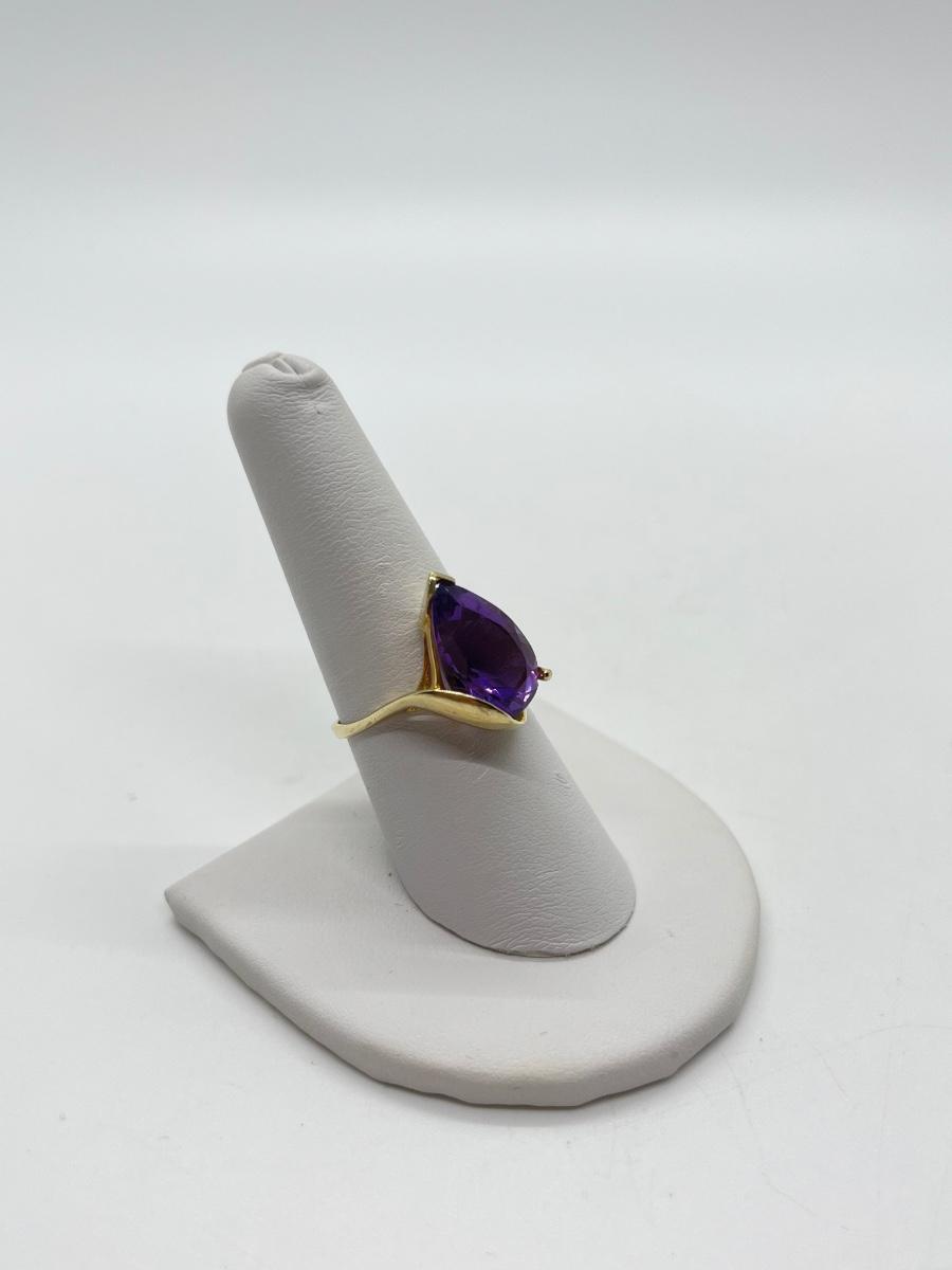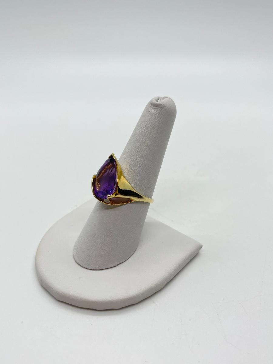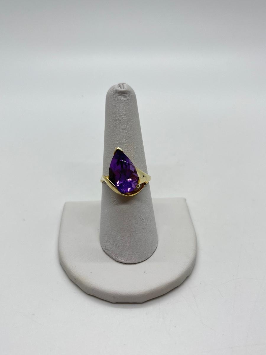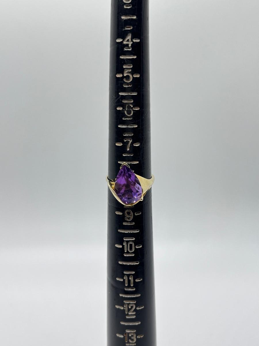 LOT 119: 10K Gold Amethyst Teardrop Size 8 Ring - 4.1 gtw